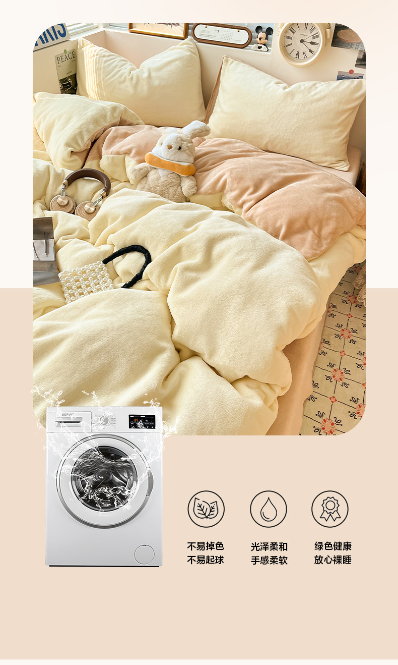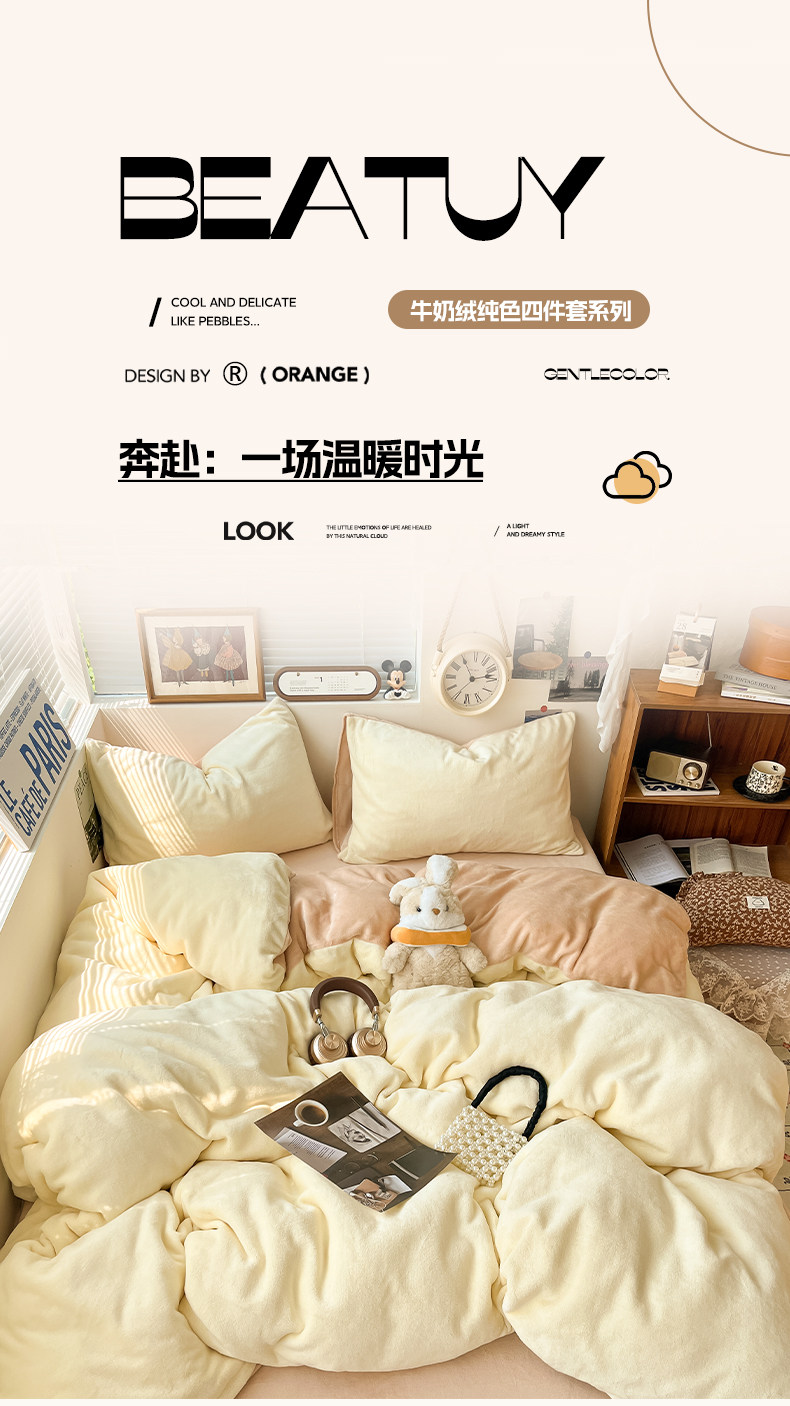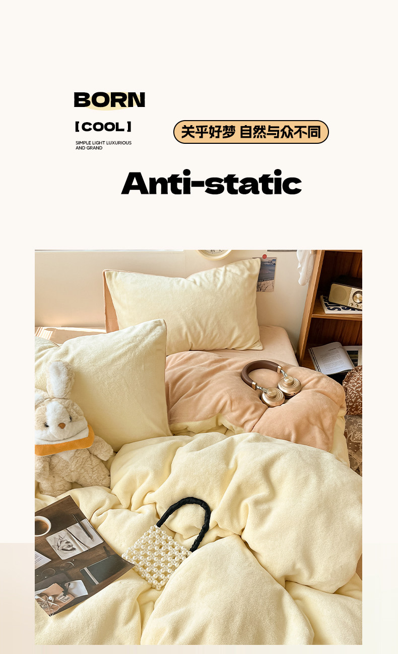 Winter Solid Color Milk Velvet Four-Piece Set, Thickened and Fleece-Lined Duvet Cover, Bed Sheet, Fitted Sheet, Quilt Cover, Student Dormitory Three-Piece Set