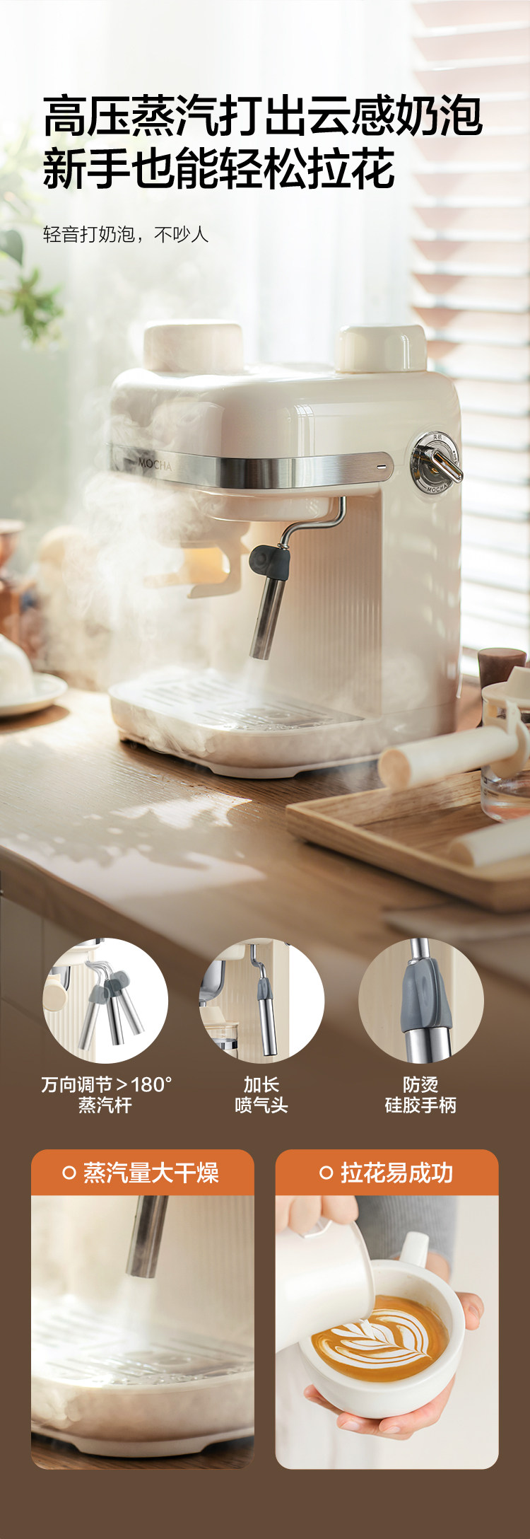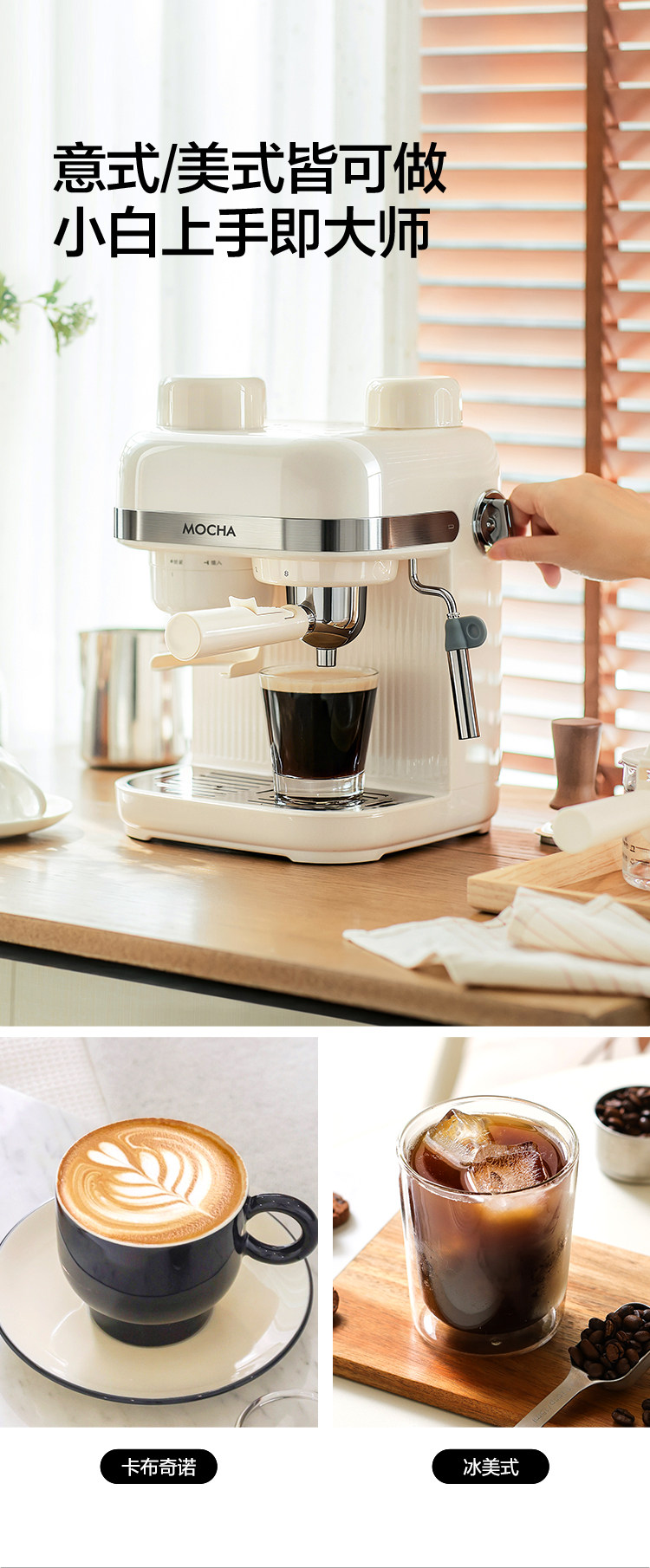 [Grinding Integrated Machine]Mocha Semi-Automatic Italian and American Coffee Maker for Home Use, Small Bean Grinder, 2025 New Model
