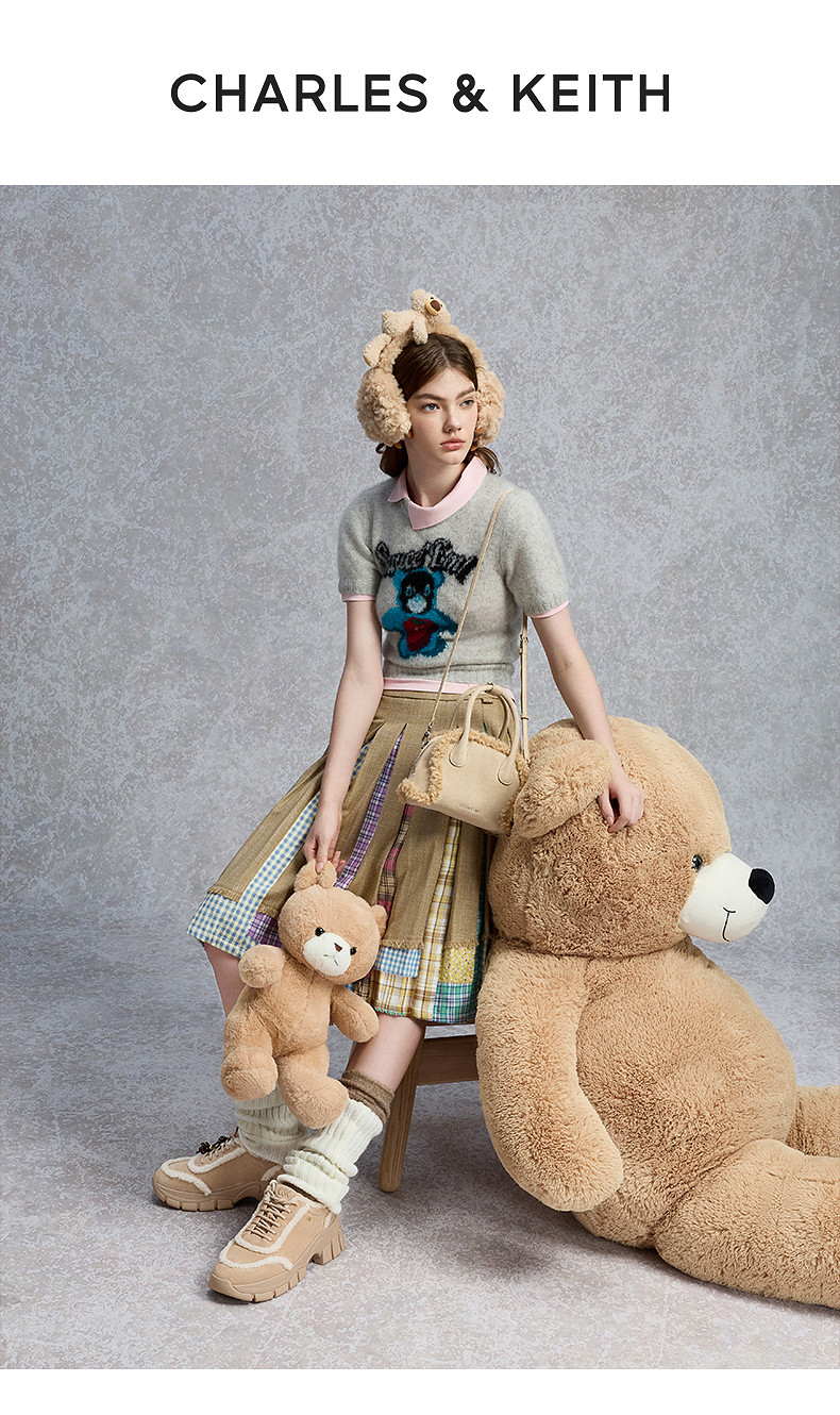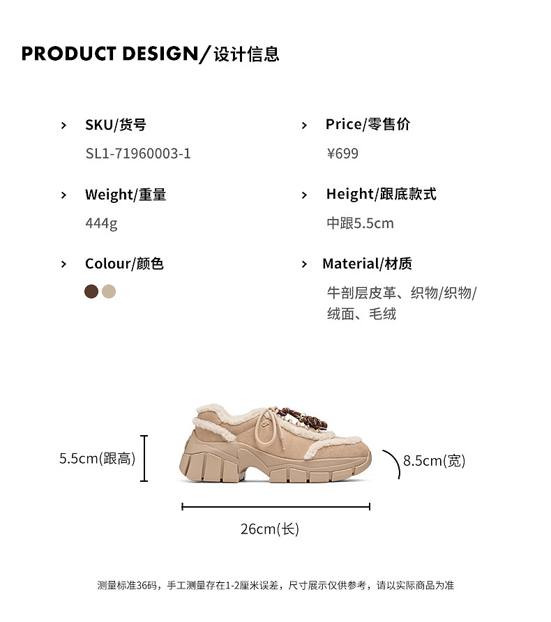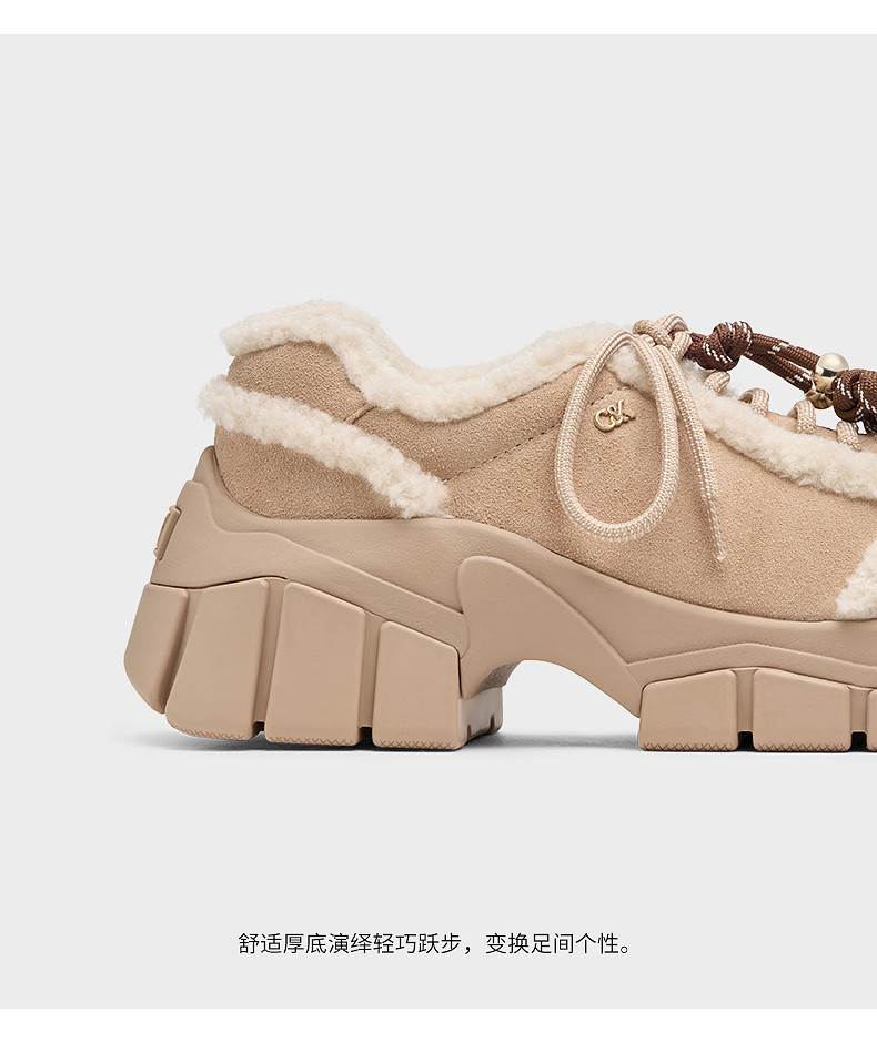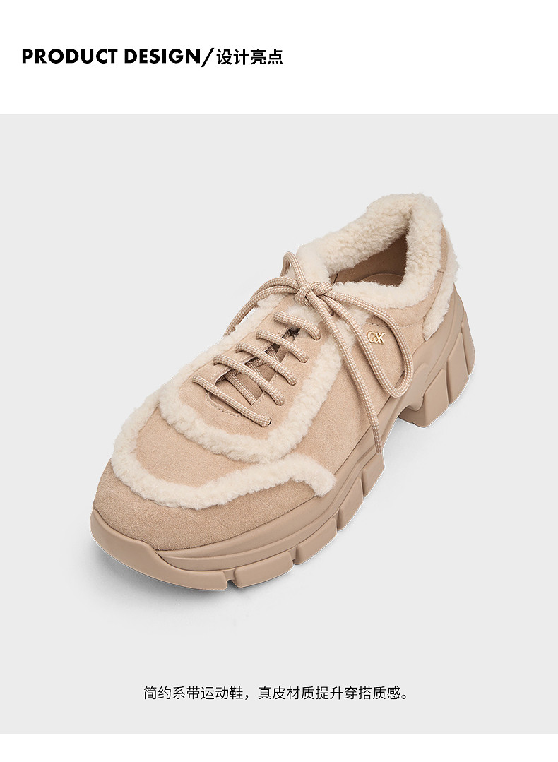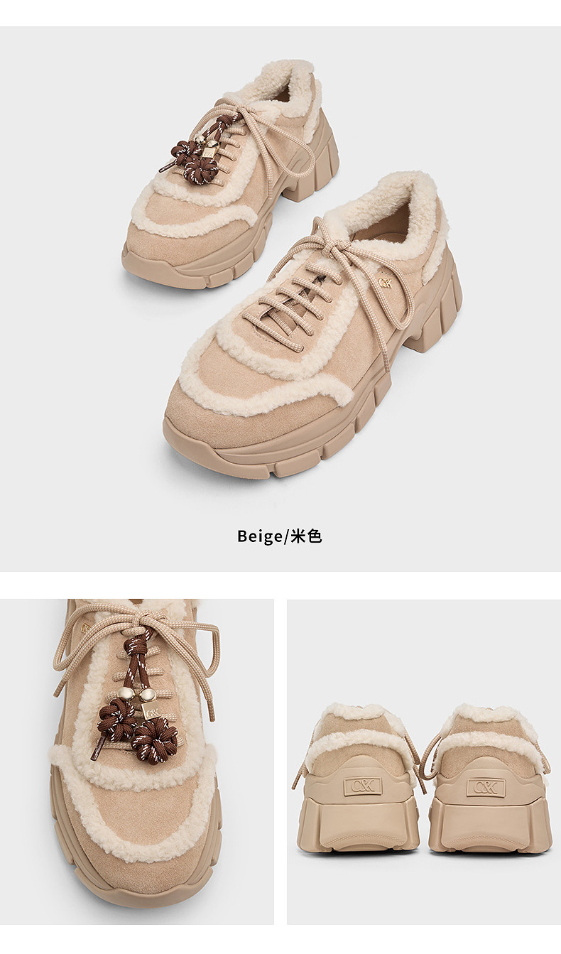 Charles&Keith25 Winter New Model Sl1-71960003-1 Thick-Soled Plush Lace-Up Sneakers Dad Shoes