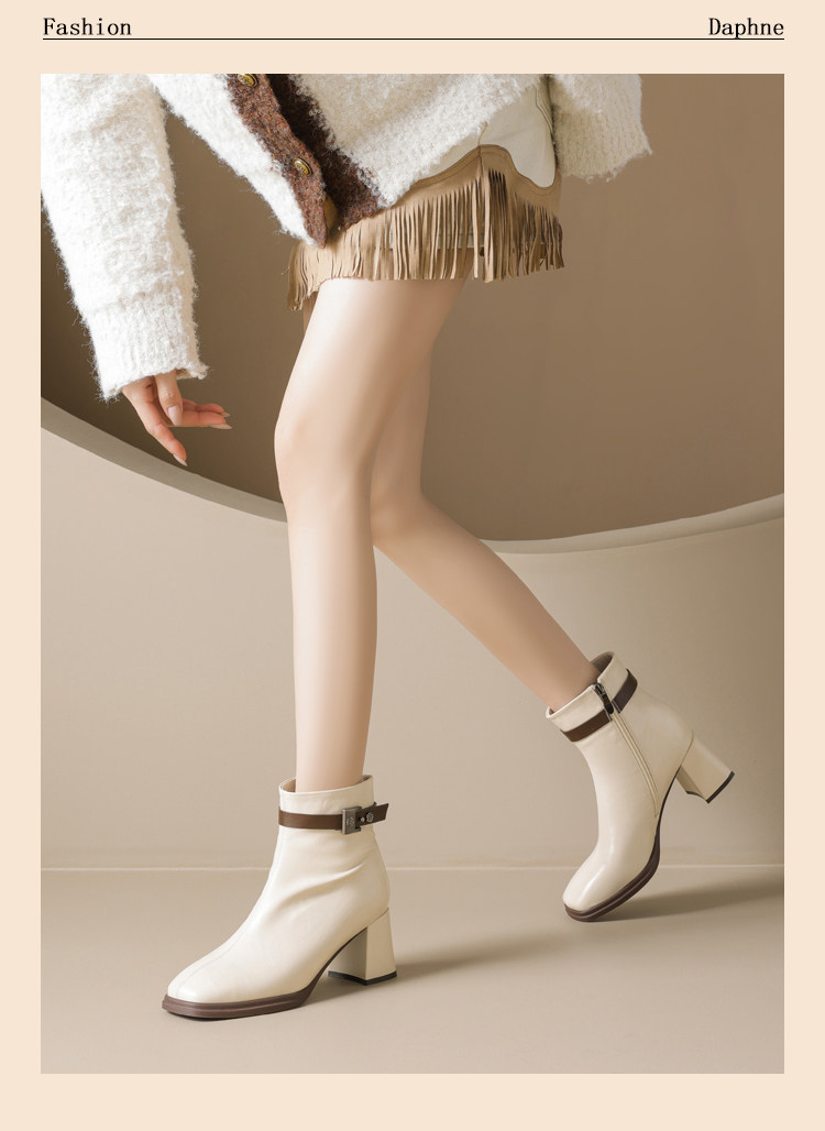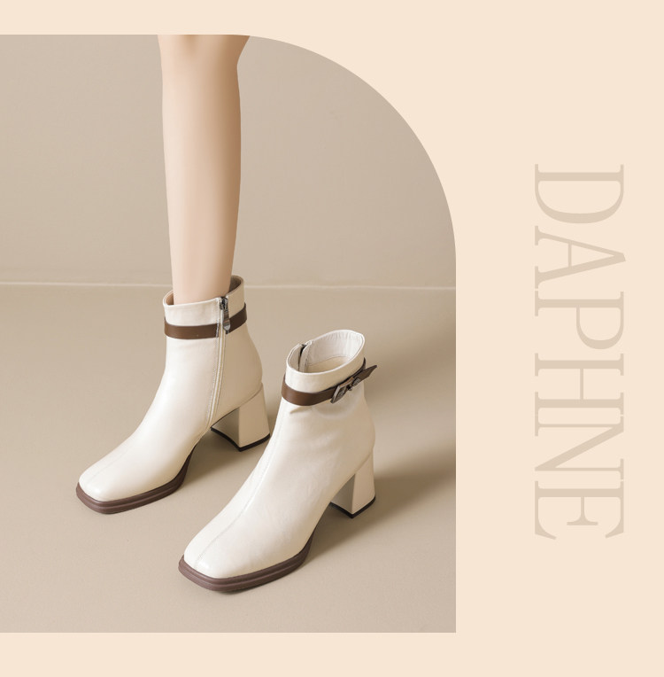 Daphne French-Style White Elegant Short Boots for Women 2026 New Autumn and Winter High-Heeled Slim Boots Popular Fashion Women's Boots