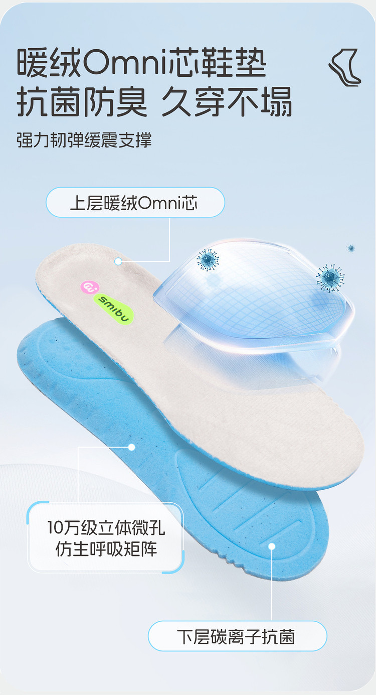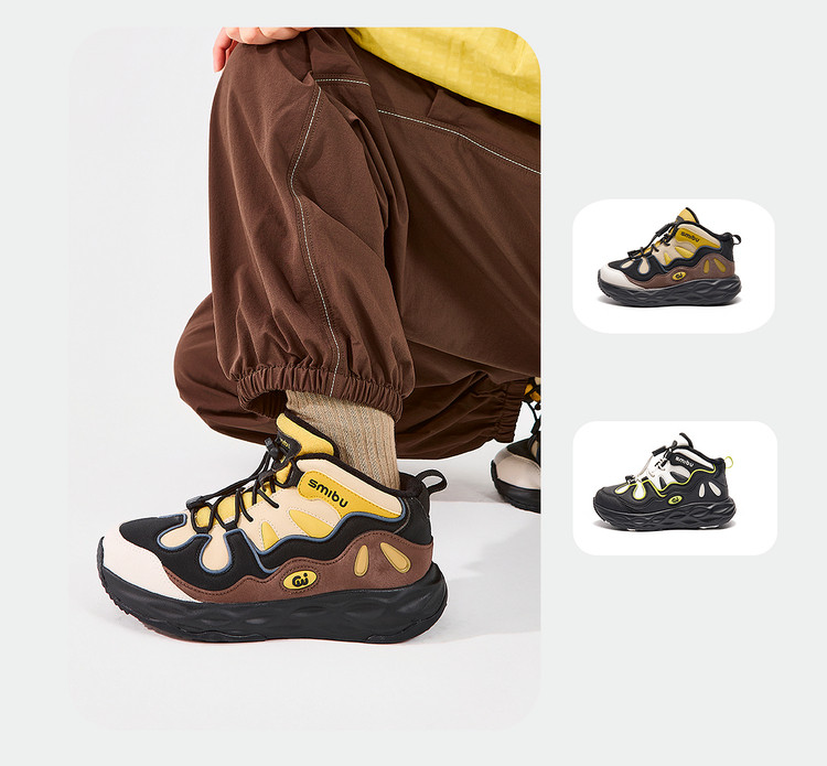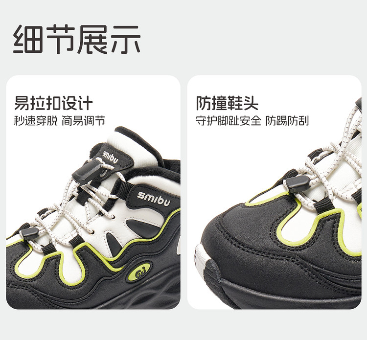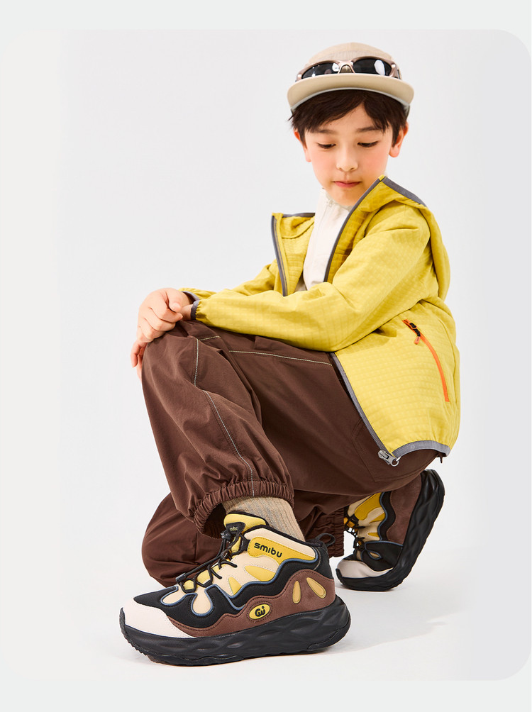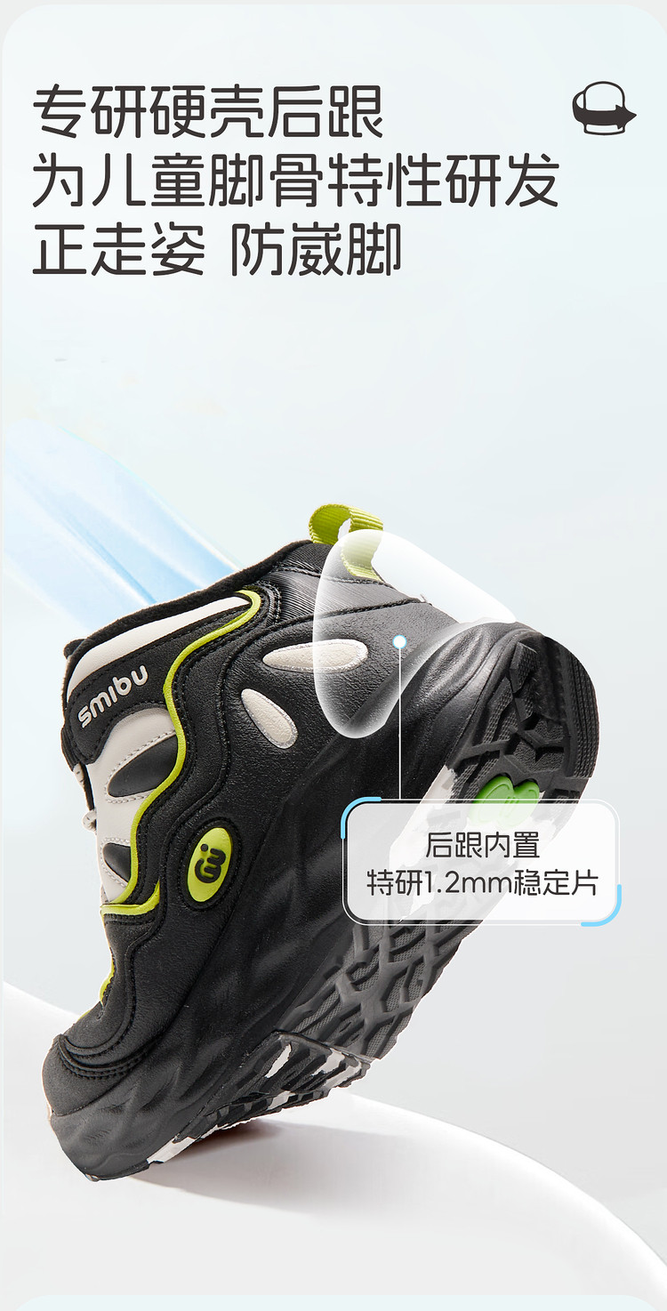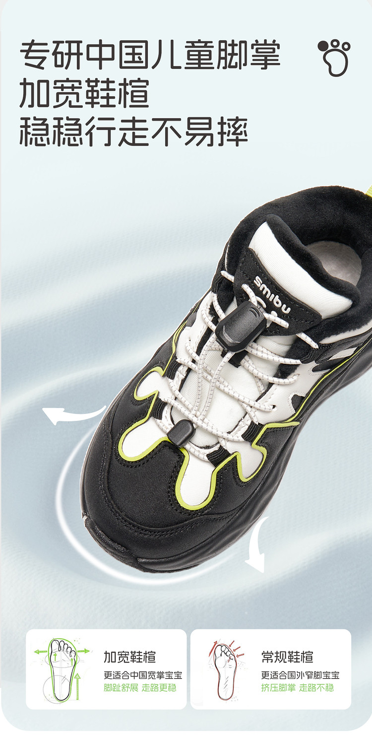 Smibu Children's Shoes 2025 Winter New Model Boys and Girls Sneakers Children's Sports Shoes Fleece-Lined Cotton Shoes Coal Age