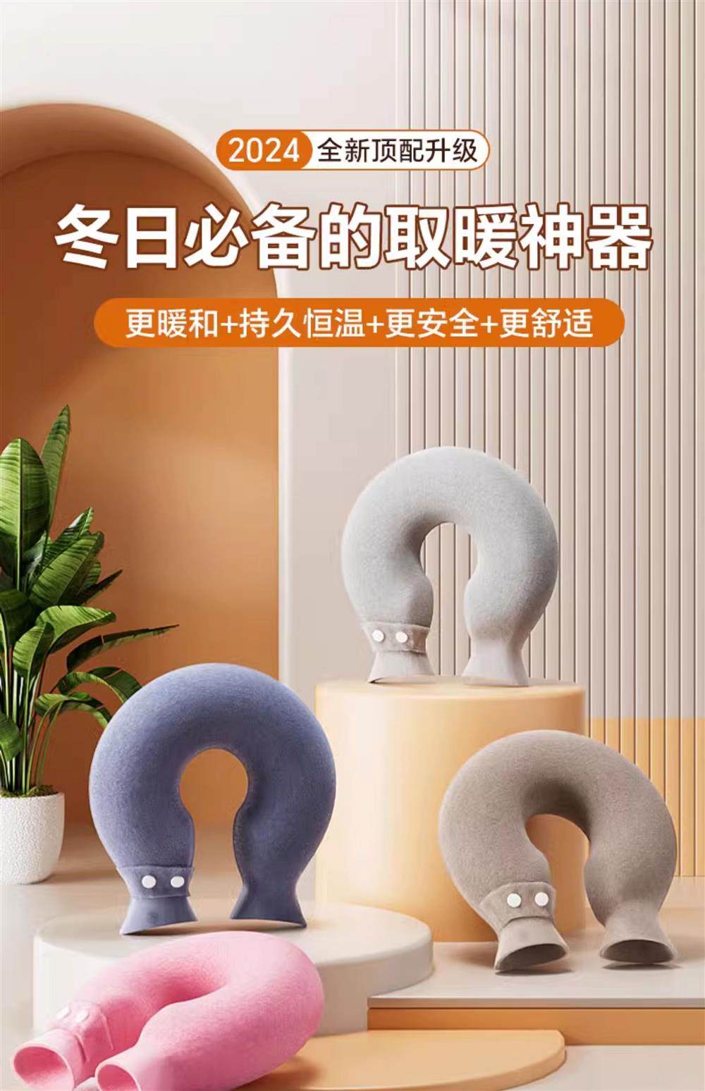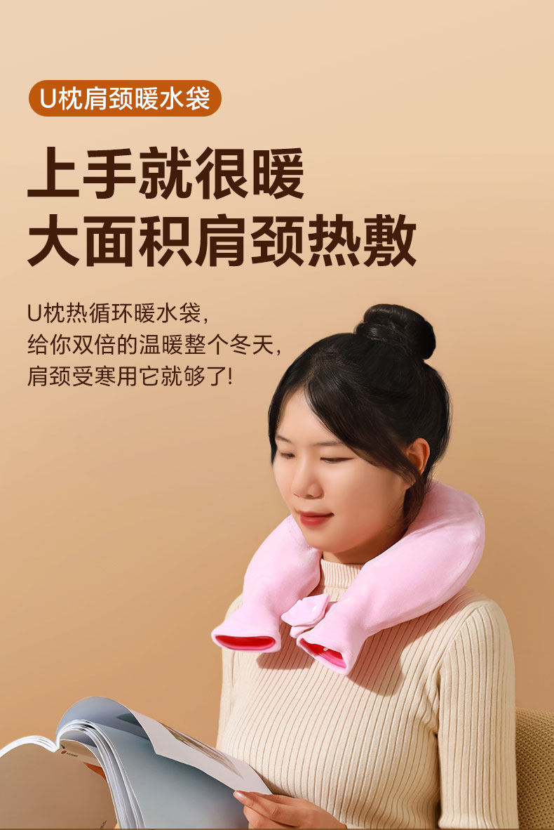 Hot Water Bottle U-Shaped Cervical Spine Hot Compress, Water-Filled, Shoulder and Neck Warmer, Explosion-Proof, Thickened, Hanging Neck Scarf Pillow