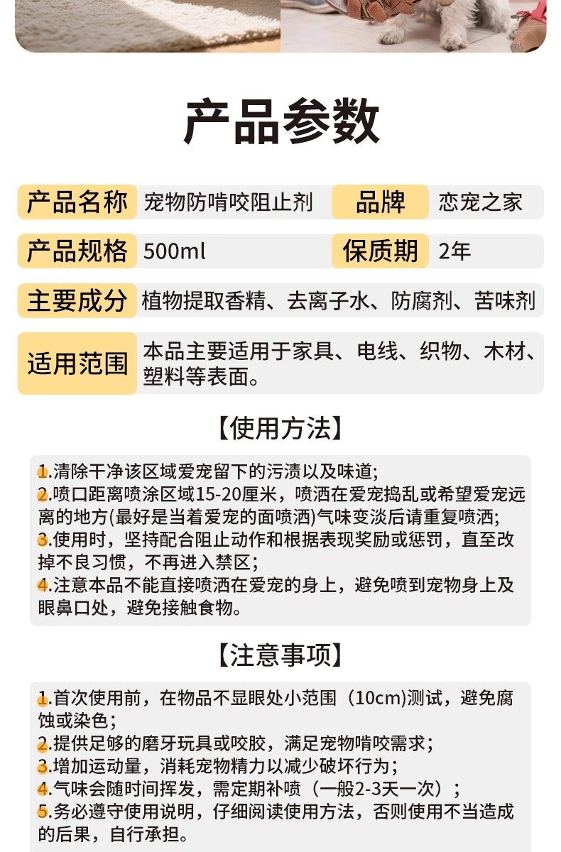 Pet Anti-Bite Deterrent for Dogs and Cats, Furniture Protection Against Scratching and Biting, Bitter Spray Specifically for Dogs, Restricted Area Spray