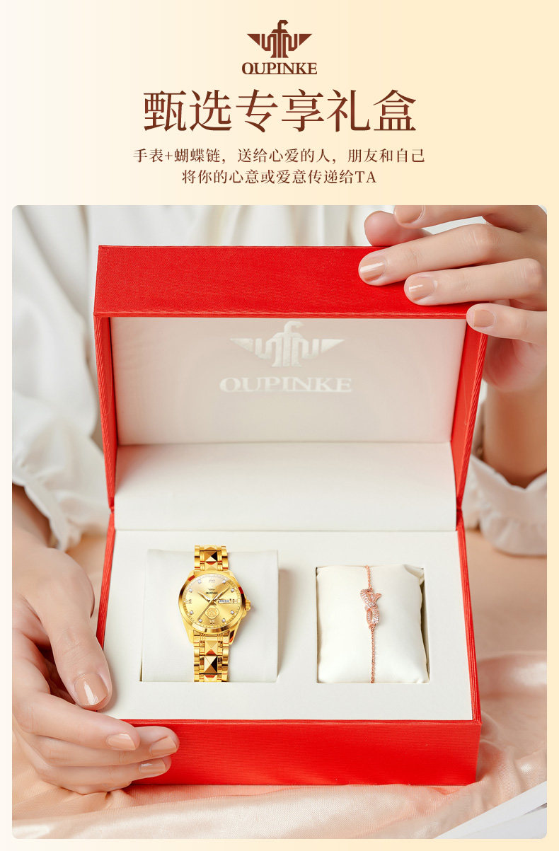| Color Classification | Oupinke Brand Ambassador: James Wong,Must-See/Benefits of Purchasing the Flagship Version: Upgraded Movement and Improved Stable Performance!,The Steel Belt Is All Gold [Real Gold Blessing Character Relief with Certificate],White between Steel Strips [Real Gold Blessing Character Relief with Certificate],95% of Customers Choose the [Flagship Upgraded Version] Steel Belt All Gold [Real Gold Fortune Character Embossed with Certificate],95% of Customers Choose [Flagship Upgraded Version] Steel Belt White [Real Gold Fortune Character Embossed with Certificate] |