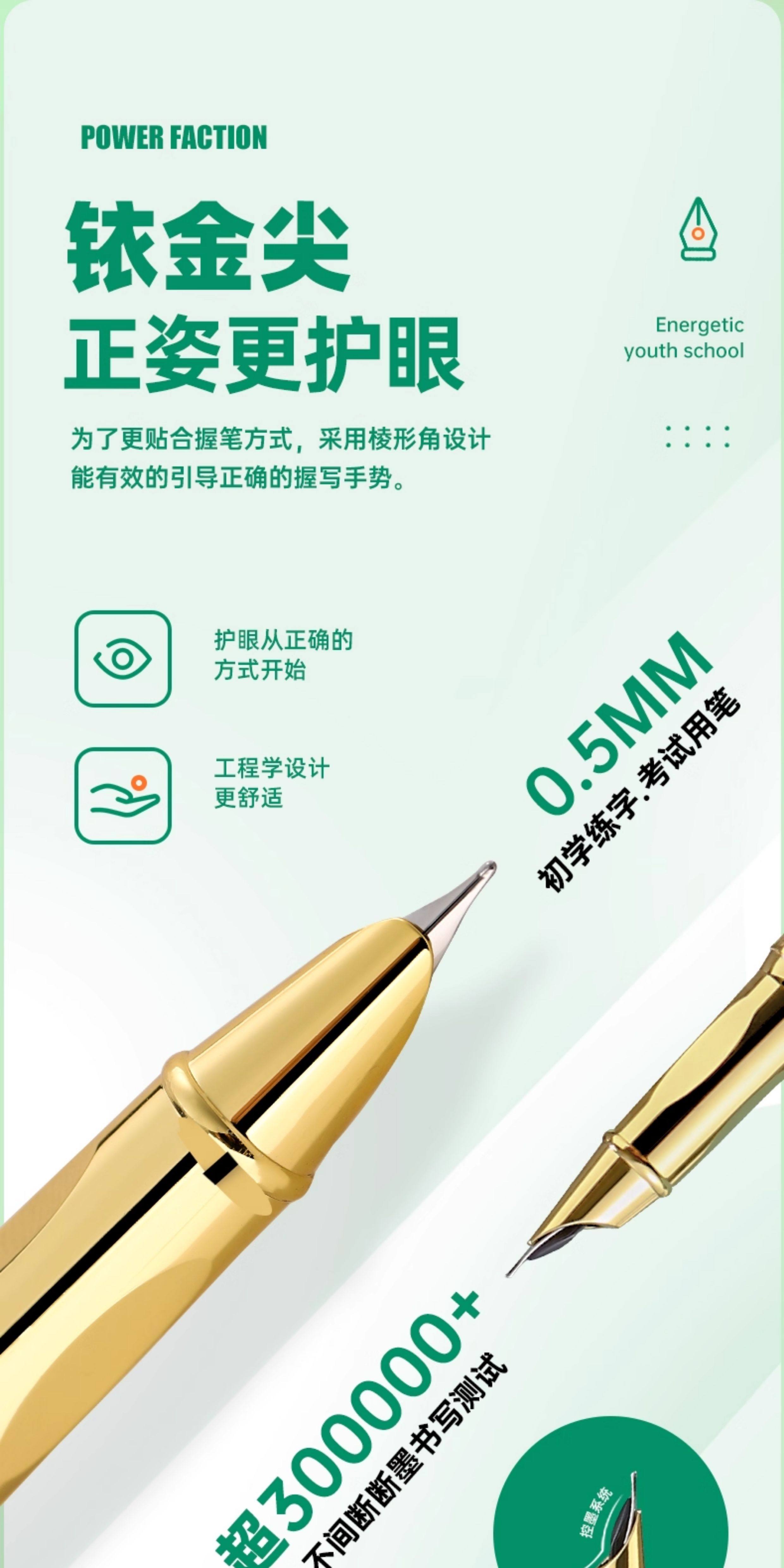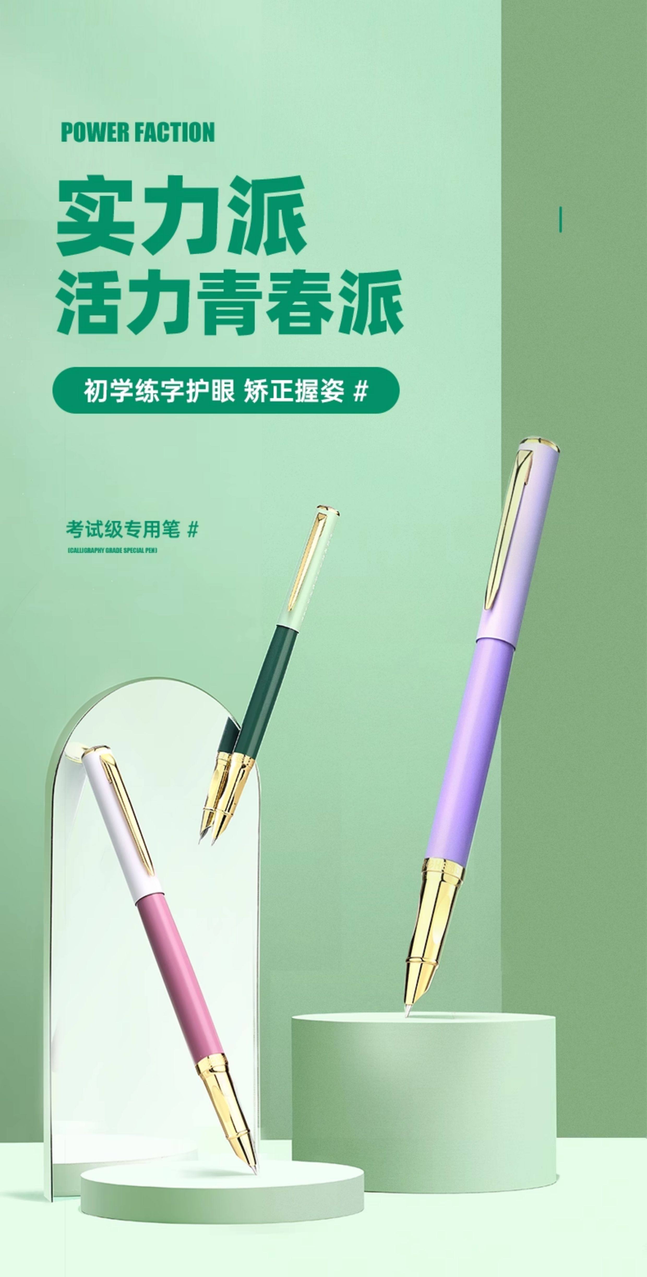 Hero Brand Fountain Pen for Elementary School Students, Suitable for Fifth Grade, Posture-Correcting Handwriting Practice, Third Grade Beginner, High Aesthetic Appeal, Dark Nib 0.38, Replaceable Ink Cartridges, for Boys, Junior High School Students, Hard Pen Calligraphy Ink Pen, Official Flagship
