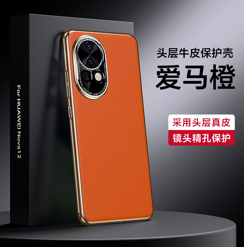 High-End Feel Suitable for Huawei Nova12 Phone Case Nova12 Ultra Genuine Leather Cowhide Nova12Pro Anti-Drop Hard Case Ultra-Thin Nova12 Vitality Version High-End Luxury Creative Simple New Model