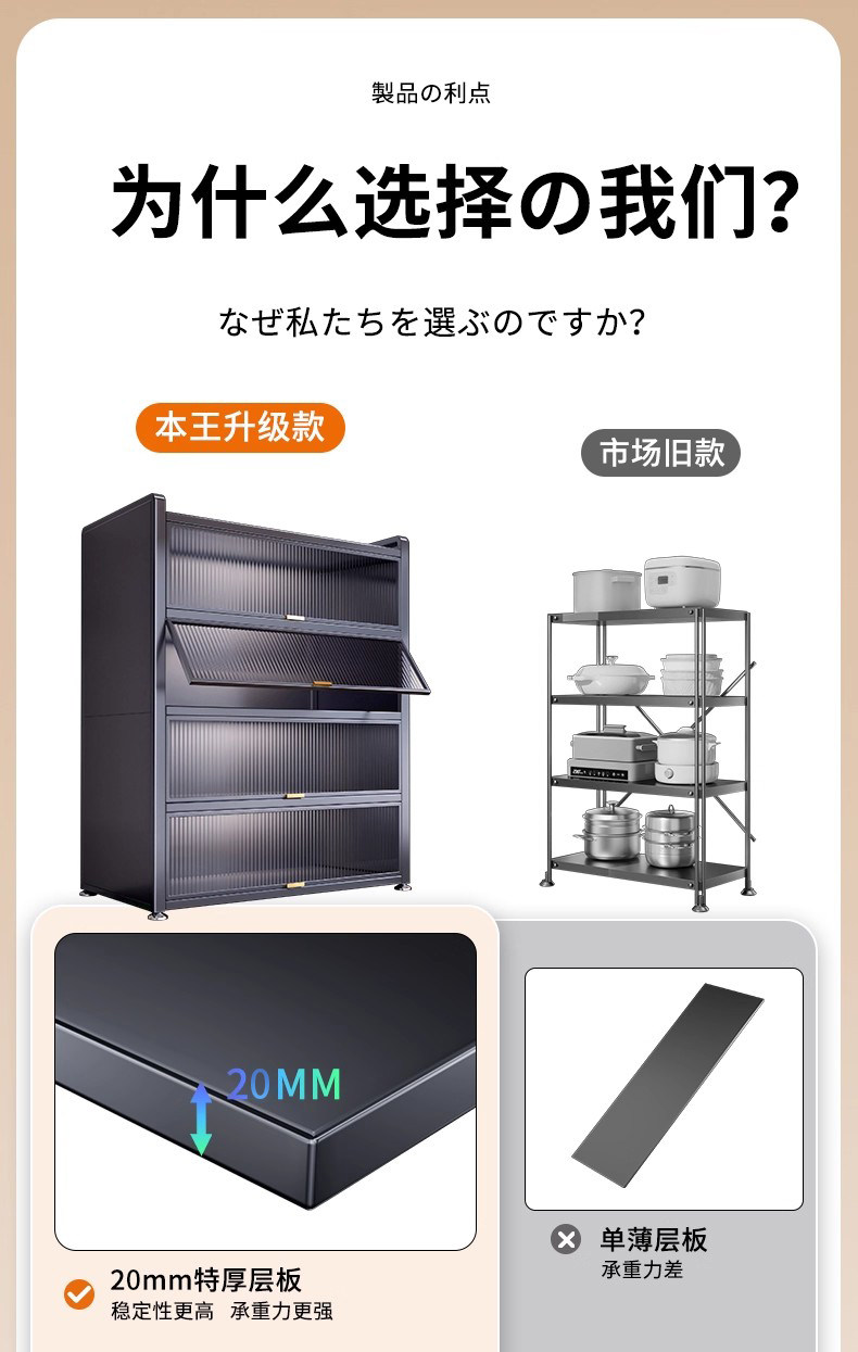 Japan's 2025 New Multifunctional Kitchen Storage Rack, Floor-Standing Multi-Layer Microwave Storage Cabinet, Integrated Cabinet