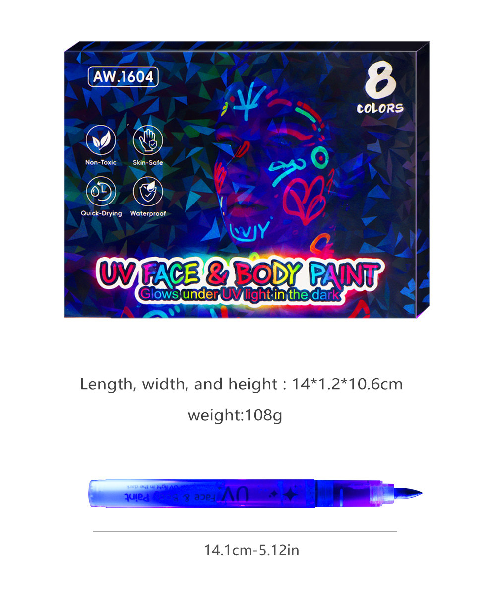 Halloween Glowing Fluorescent Pens for Students, Colorful Tip Pens with High Aesthetic Appeal, Instagram-Style Luminous Body Painting Pens, Washable Face Graffiti Makeup Pens, Erasable Festival Party Atmosphere Glow Pens
