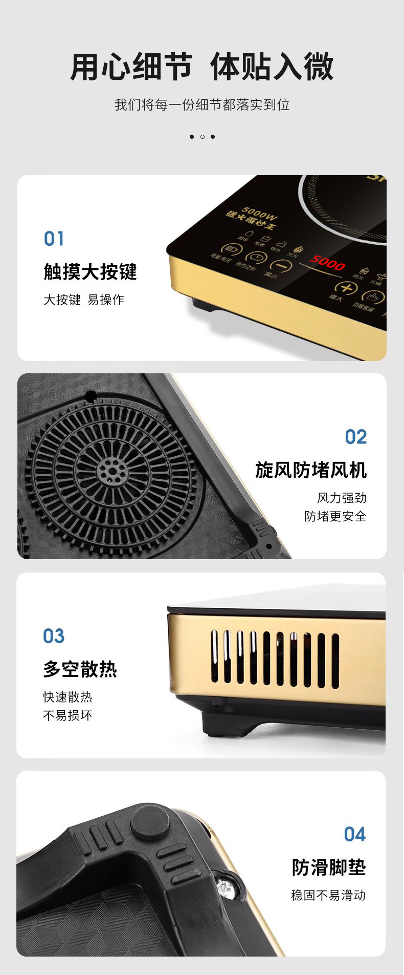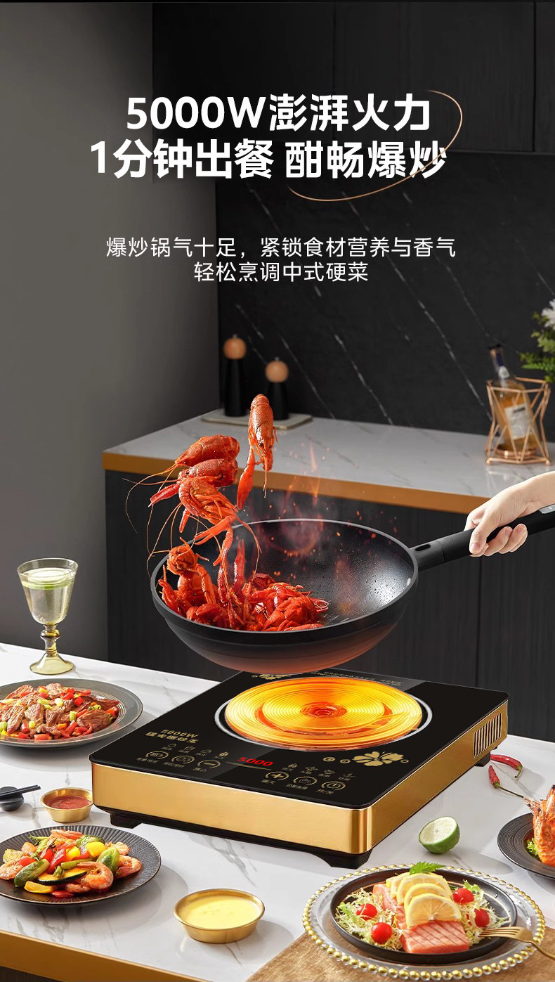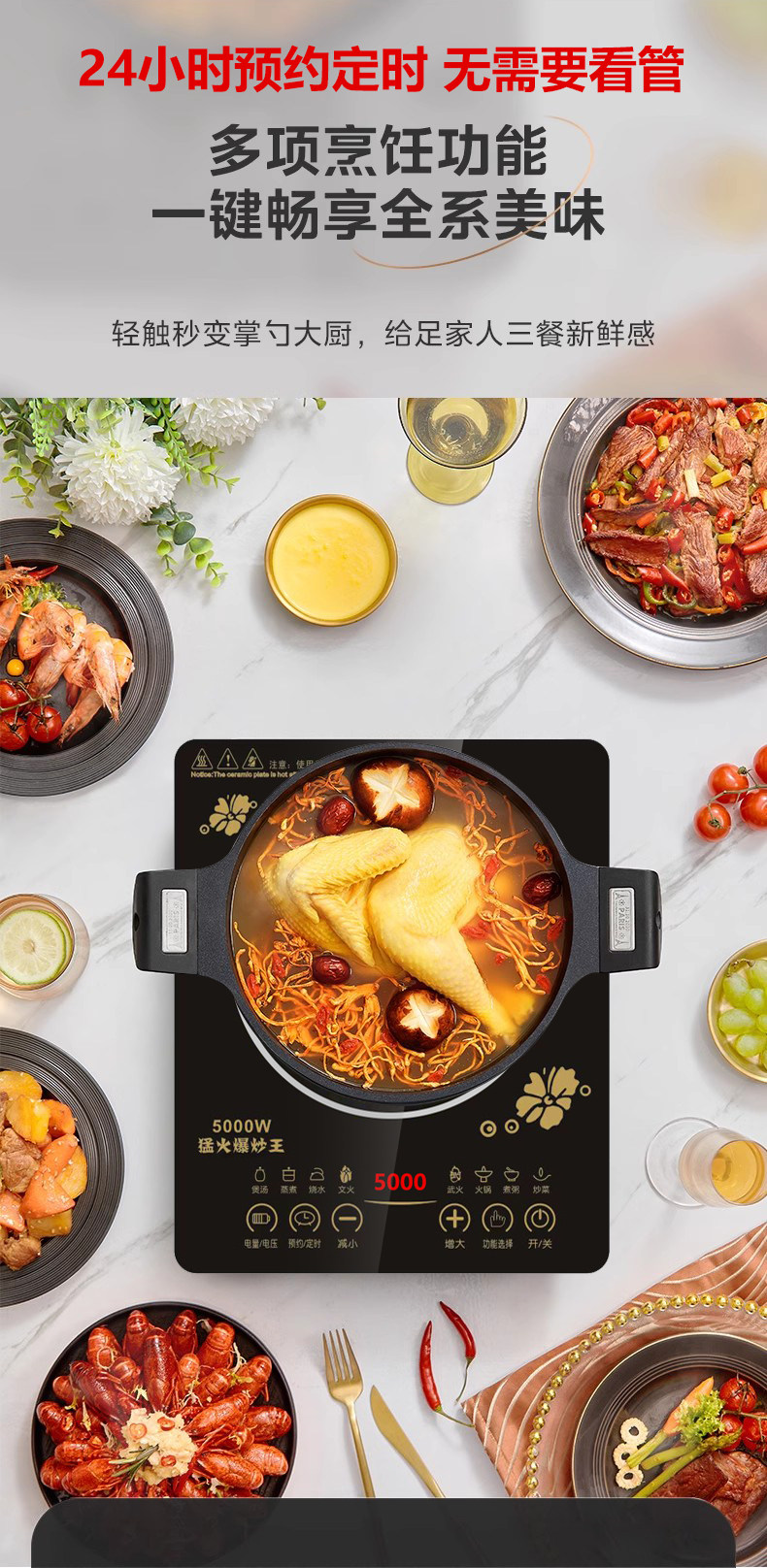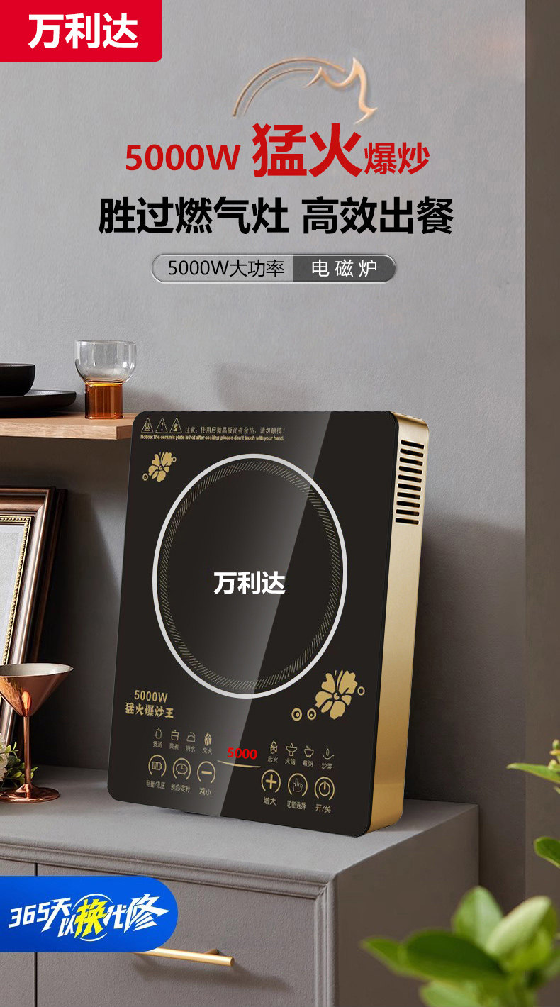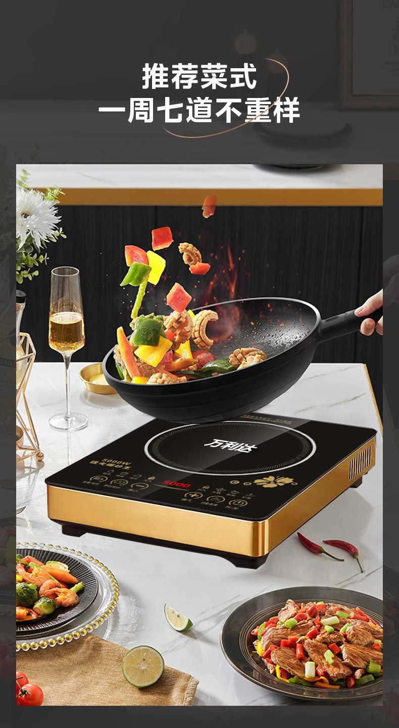 Wanlida Induction Cooker for Home Use, High-Power Commercial 5000W Smart Hot Pot Integrated Stir-Fry Stove, Genuine Strong Fire Stove