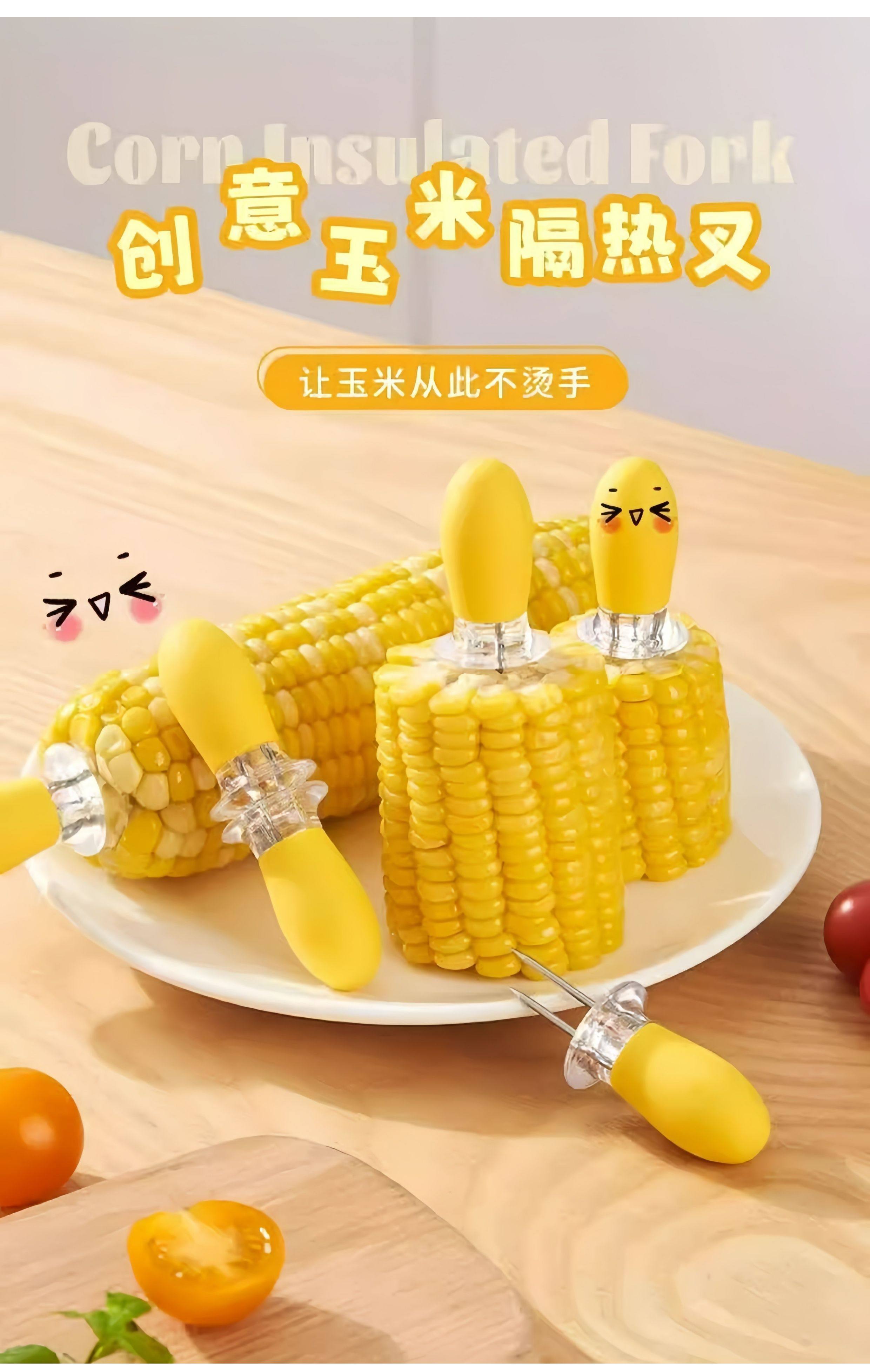 Creative Anti-Scald Corn Fork for Kids to Eat Corn Without Sticking to Their Hands, Cute Barbecue Tool for Eating Sweet Potatoes and Fruit