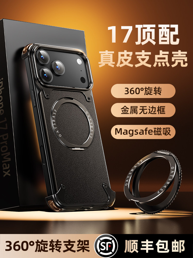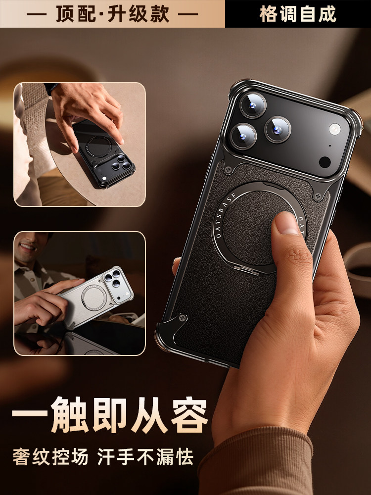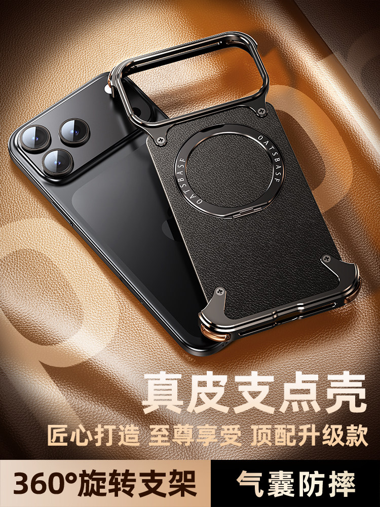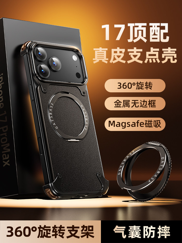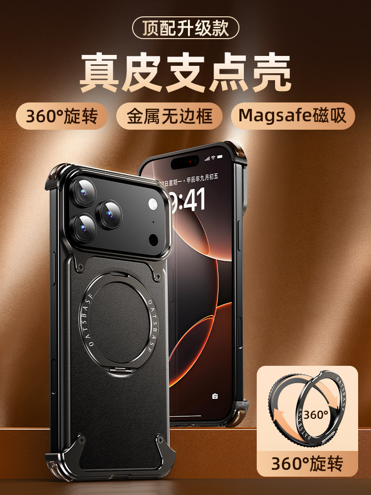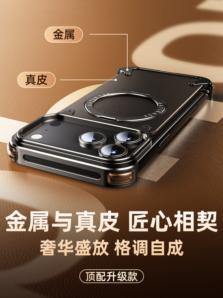 Apple 17 Pro Max Genuine Leather Magnetic iPhone 16 Pro Phone Case with Rotating Stand, Heat Dissipation, 17 Pro Aluminum Alloy Magsafe Wireless Charging, 15 Anti-Drop, Full Lens Protection, Ultra-Thin, Suitable for