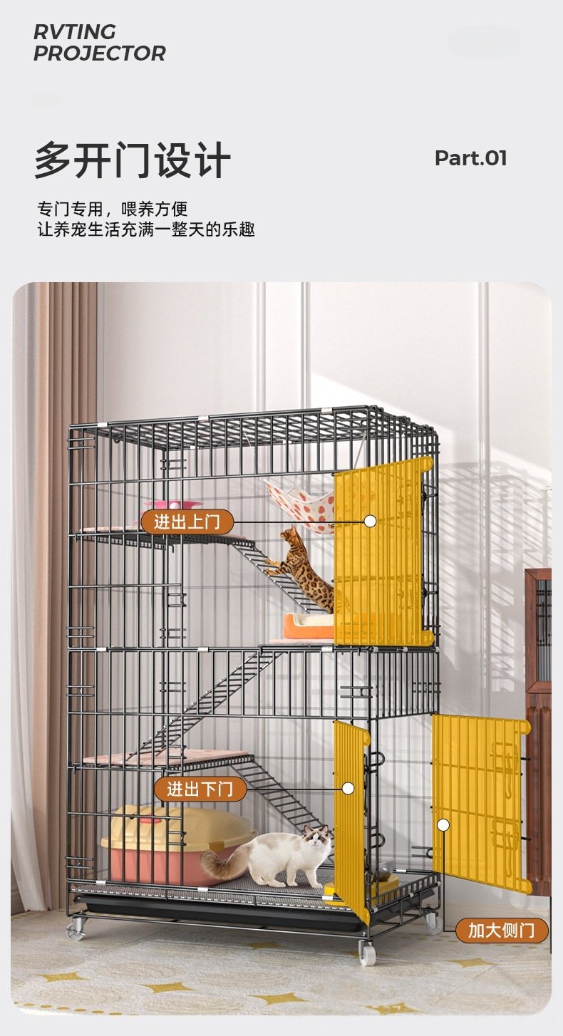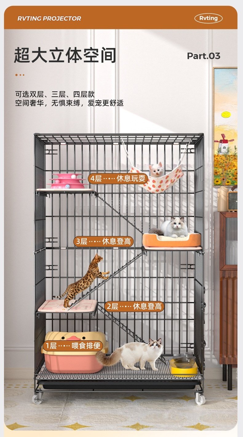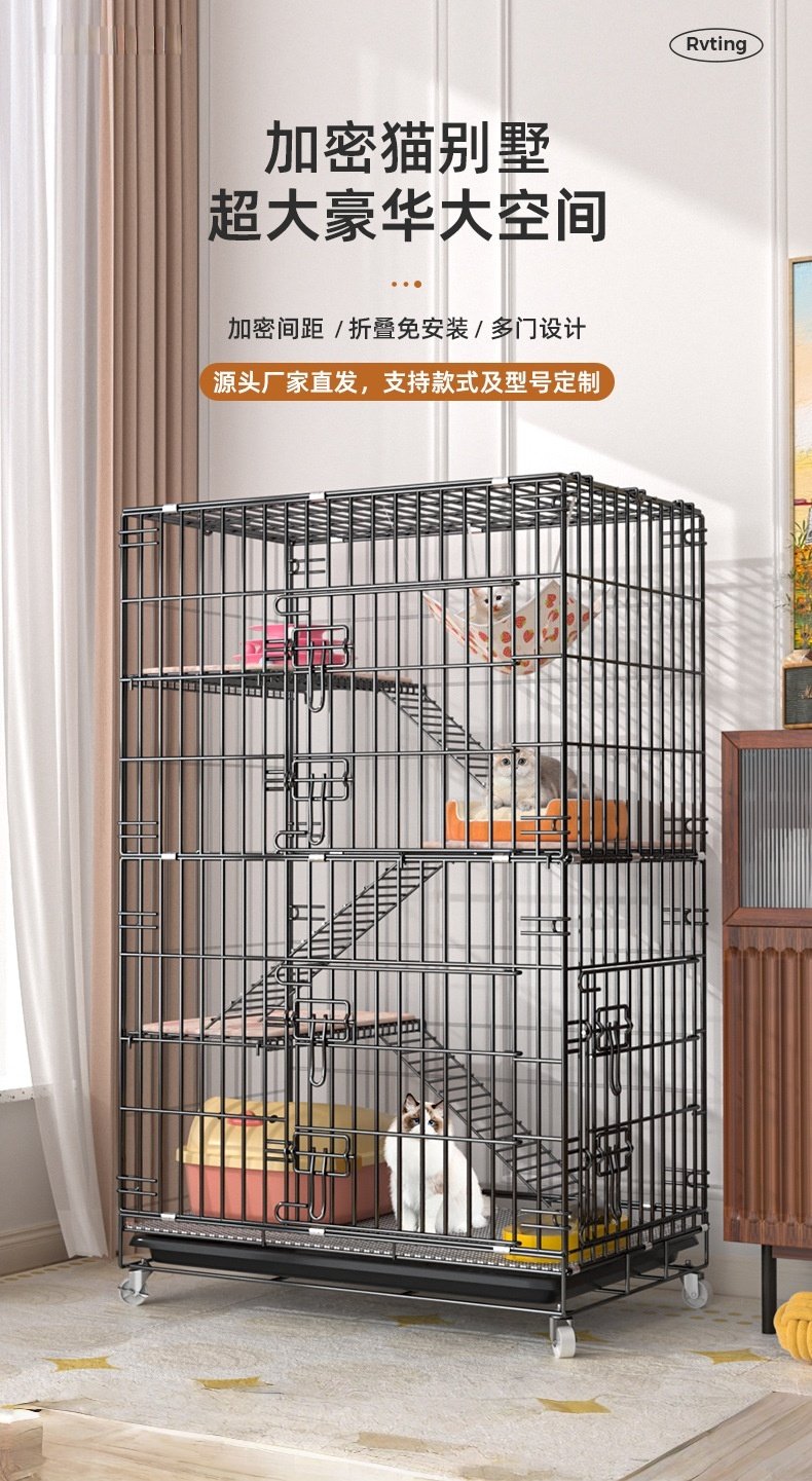 Cat Cage for Home Use, Indoor Cat Villa, Encrypted Folding Model, Large Double-Layer, Three-Layer, Four-Layer Cat House, Pet Cage