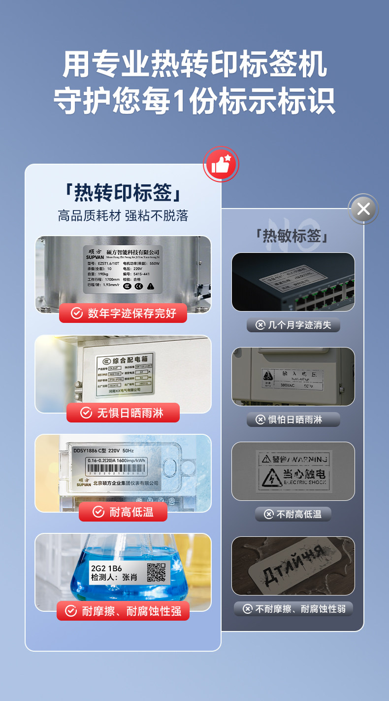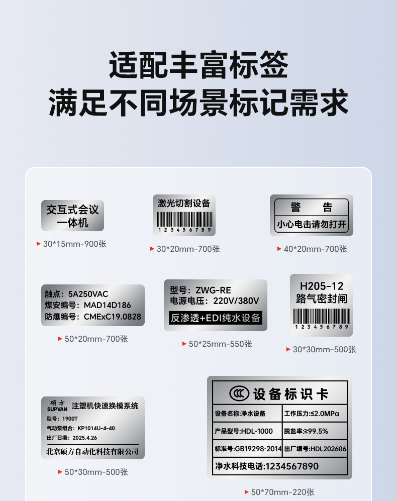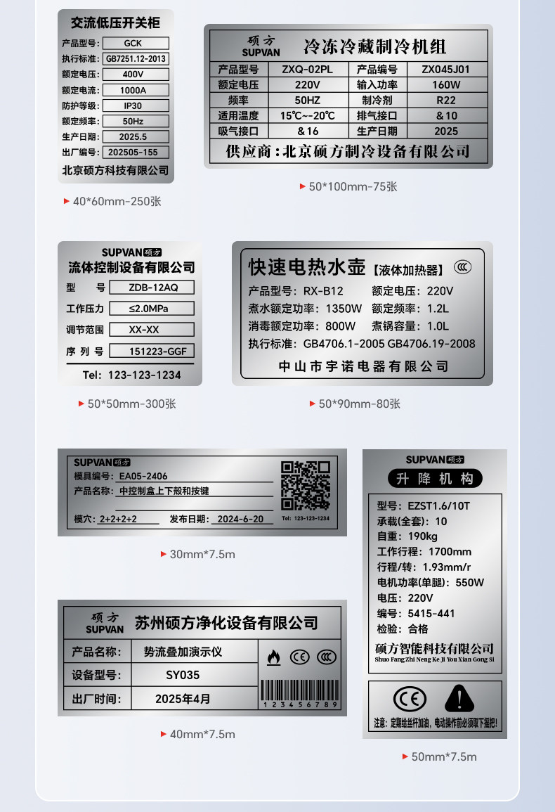 Shuofang Mp50 Equipment Nameplate Industrial-Grade Label Printer Thermal Transfer Imitation Metal Nameplate Sticker Label Matte Silver Light Silver Brushed Electrical Distribution Box Machinery Equipment Certificate Label Machine