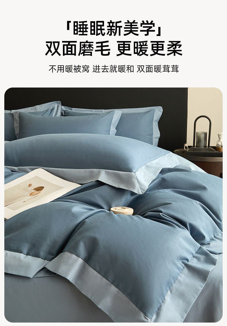 High-End Thickened 100S Bed Four-Piece Set, Pure Cotton, 2025 New Autumn and Winter Brushed Duvet Cover Bedding Set, Fitted Sheet a