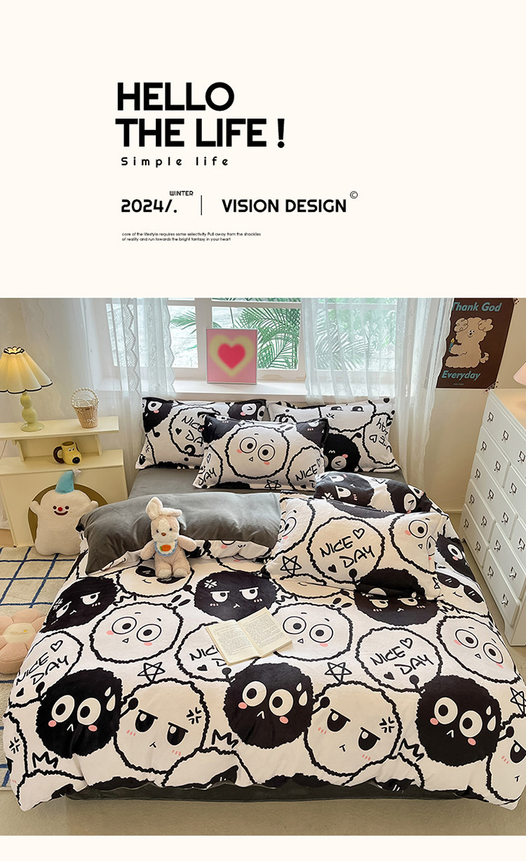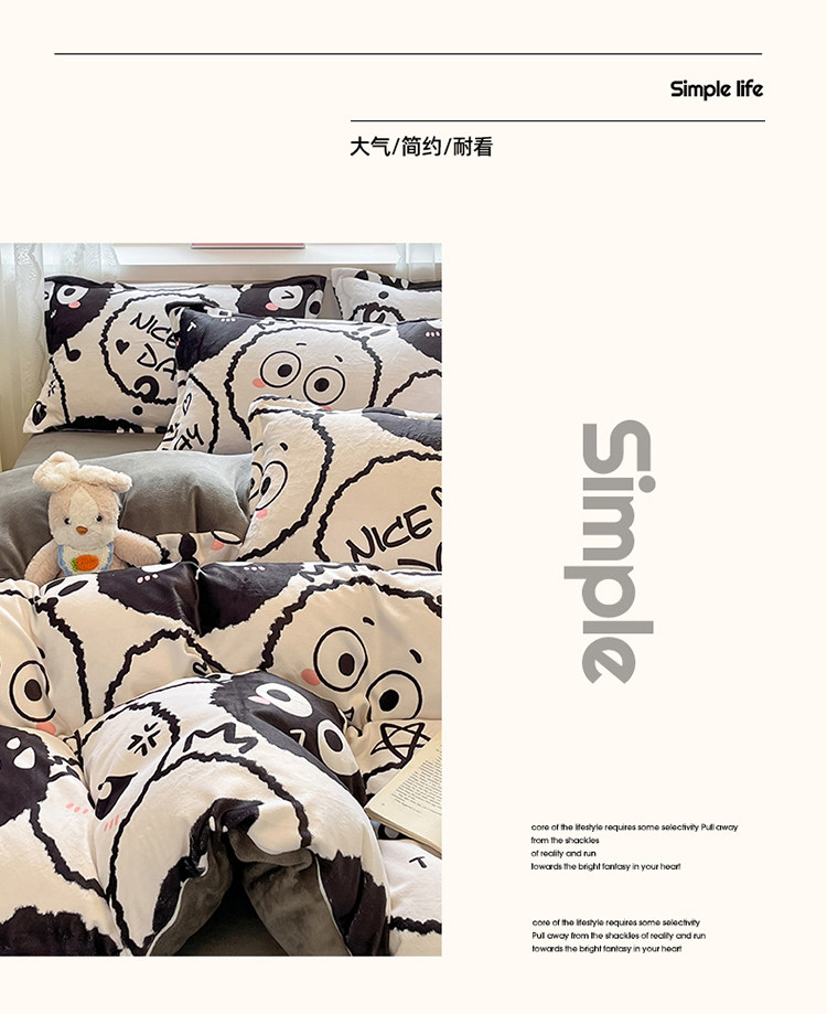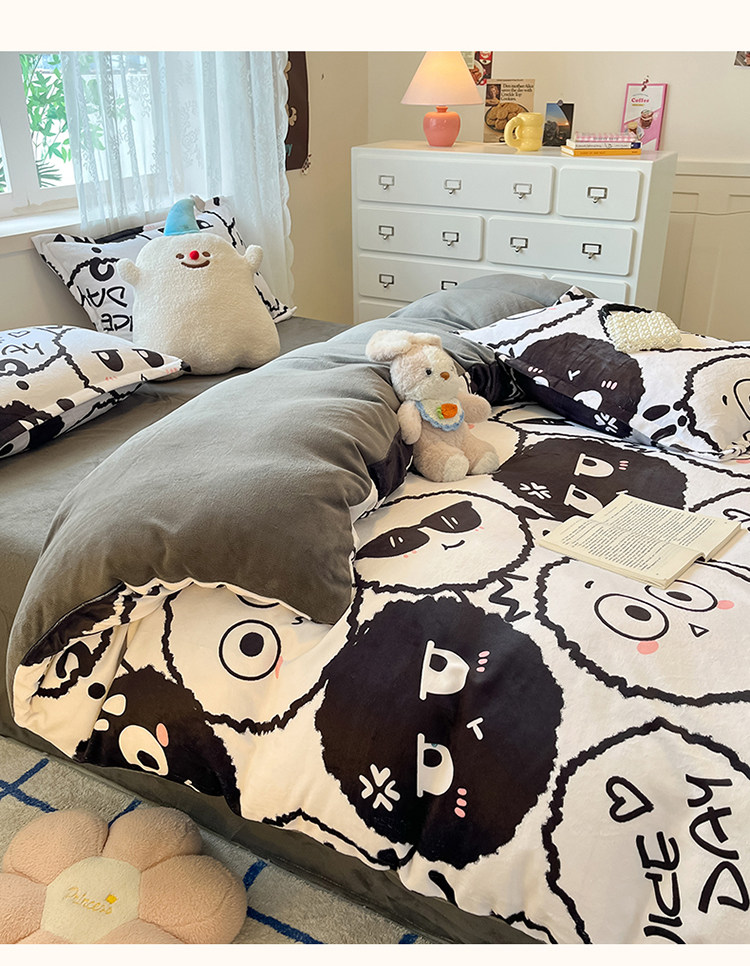 Removable and Washable Milk Velvet Quilt Cover, Detachable, Thickened for Winter, Warm Coral Fleece Quilt Core for Students in Winter