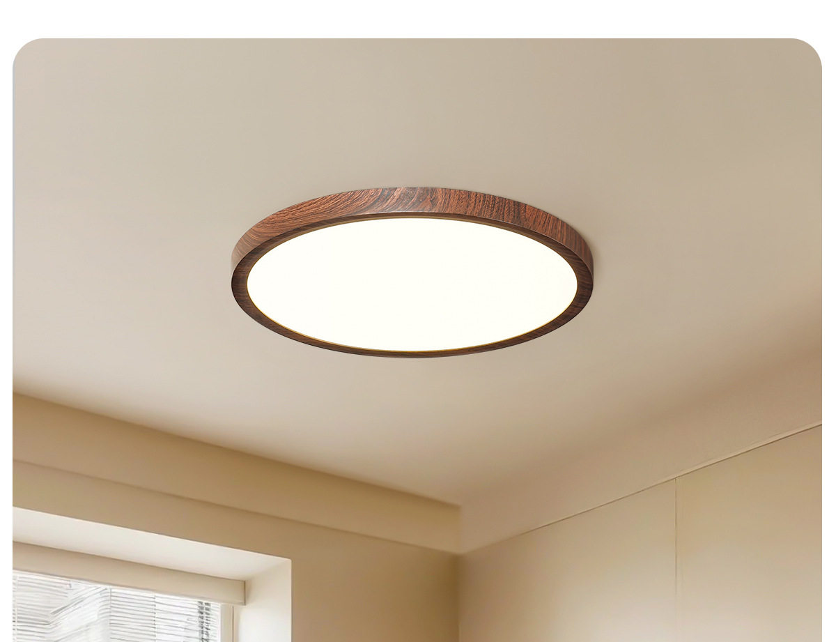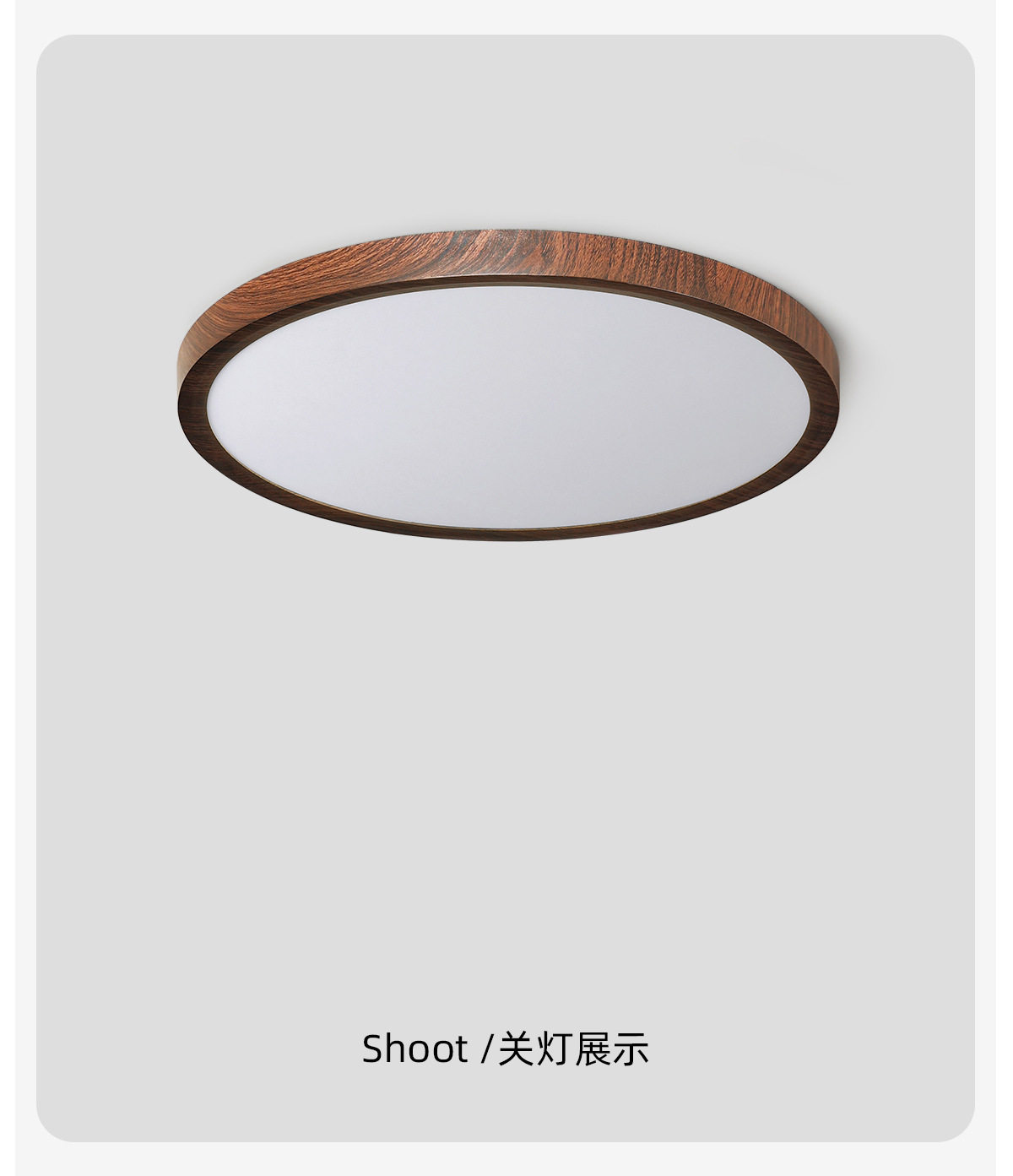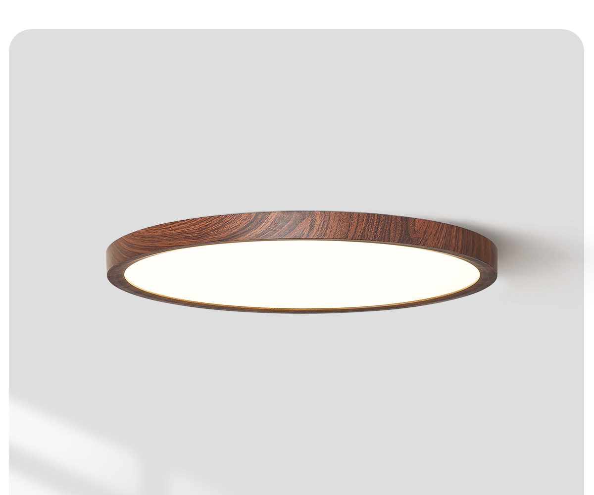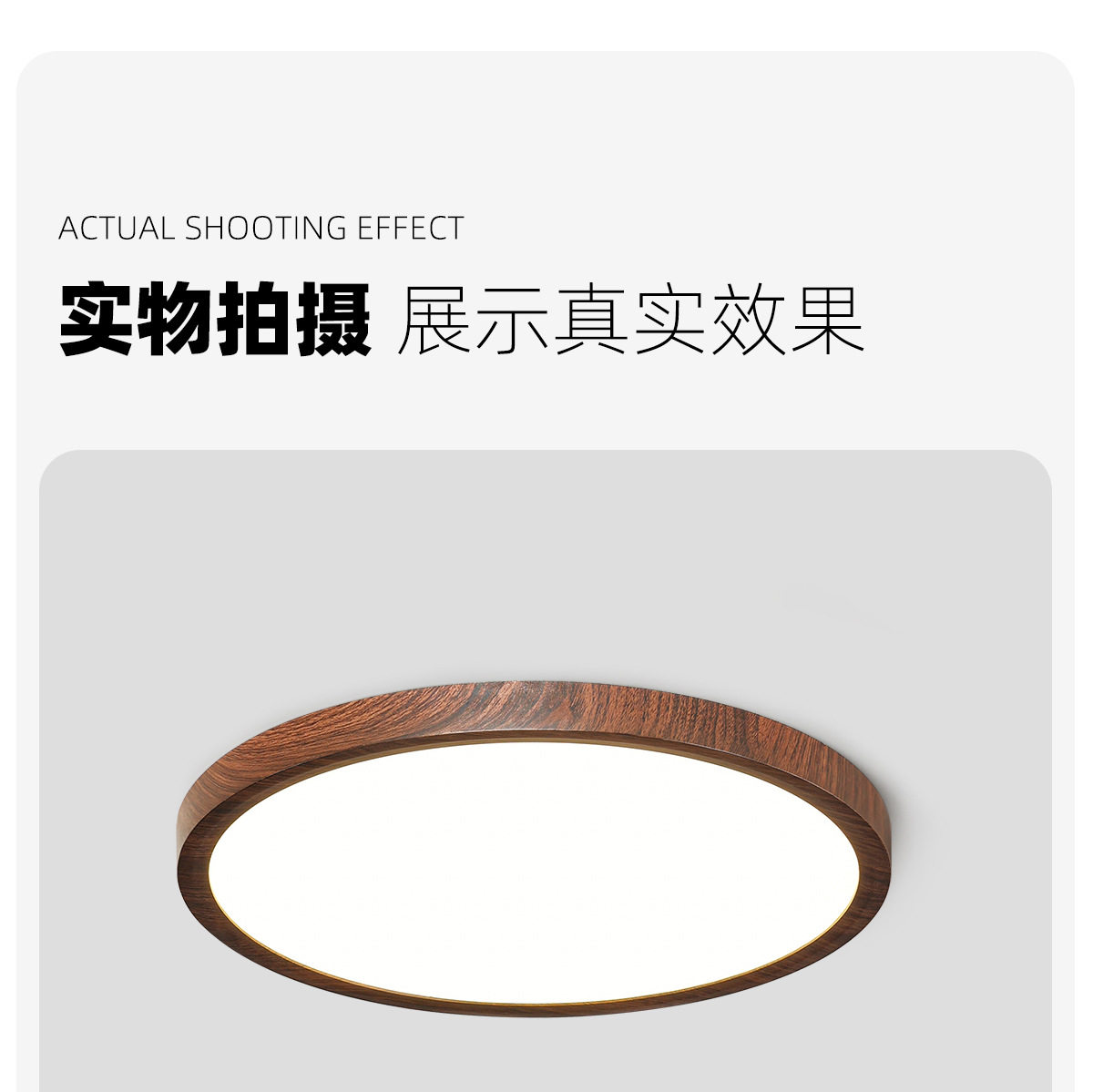 Japanese-Style Walnut Wood Grain Bedroom Ceiling Lamp, French Mid-Century Ultra-Thin Dining Room Simple Wabi-Sabi Study Eye-Protection Room Lamp