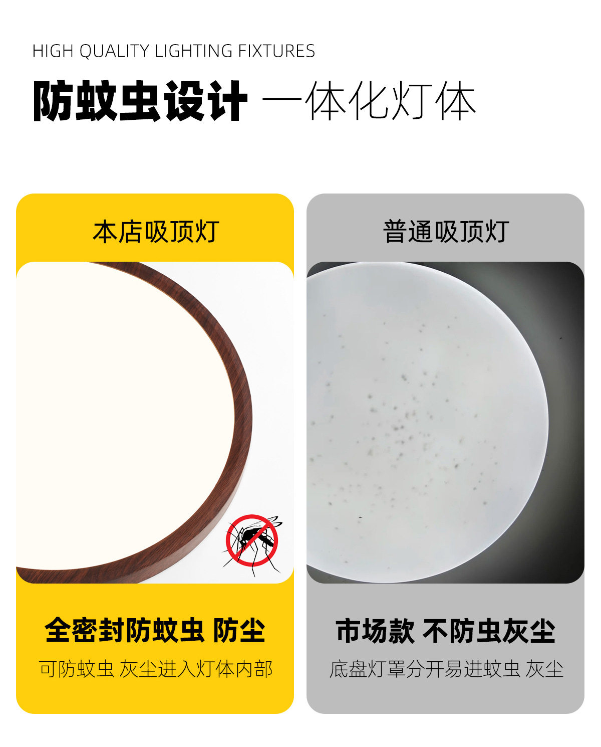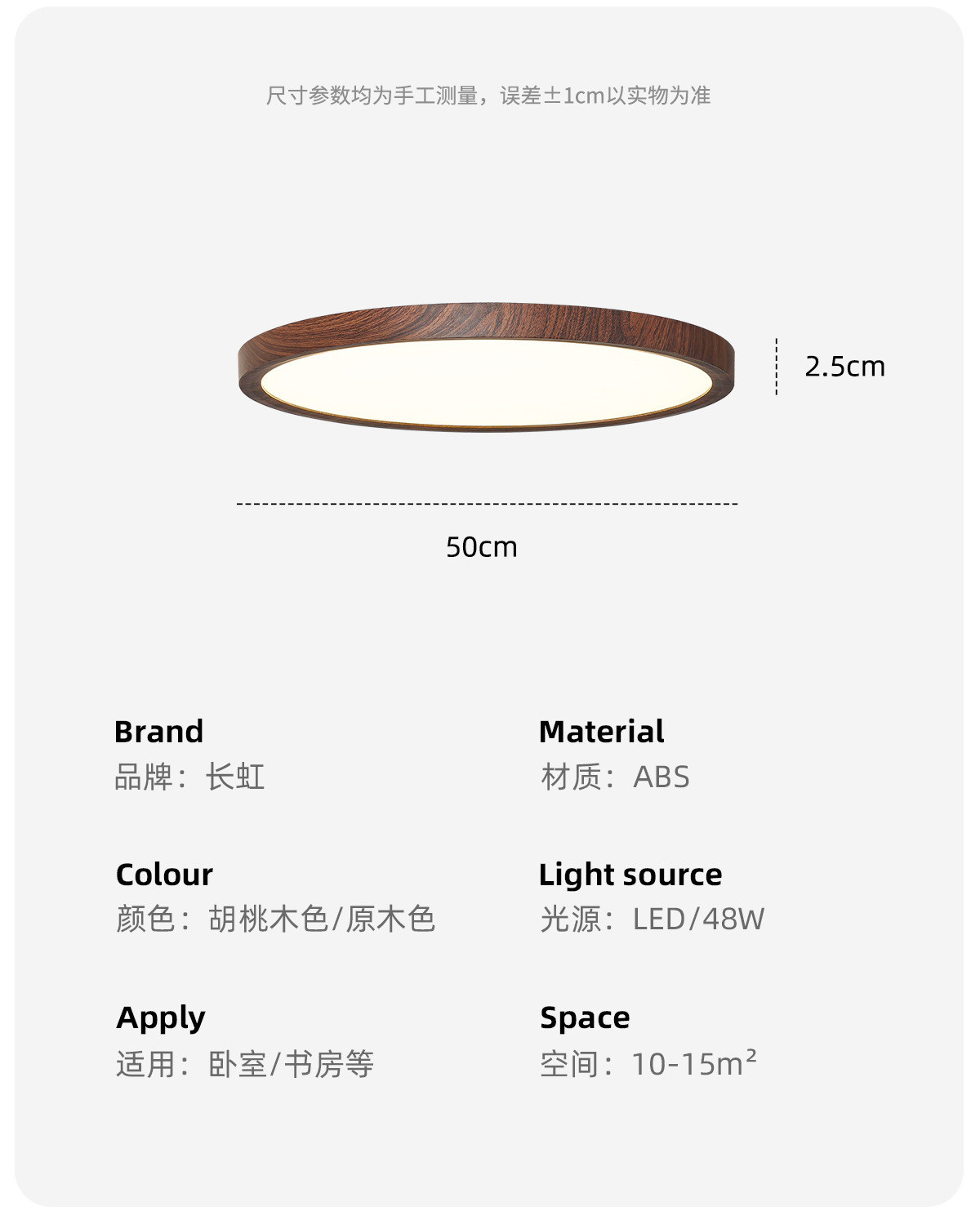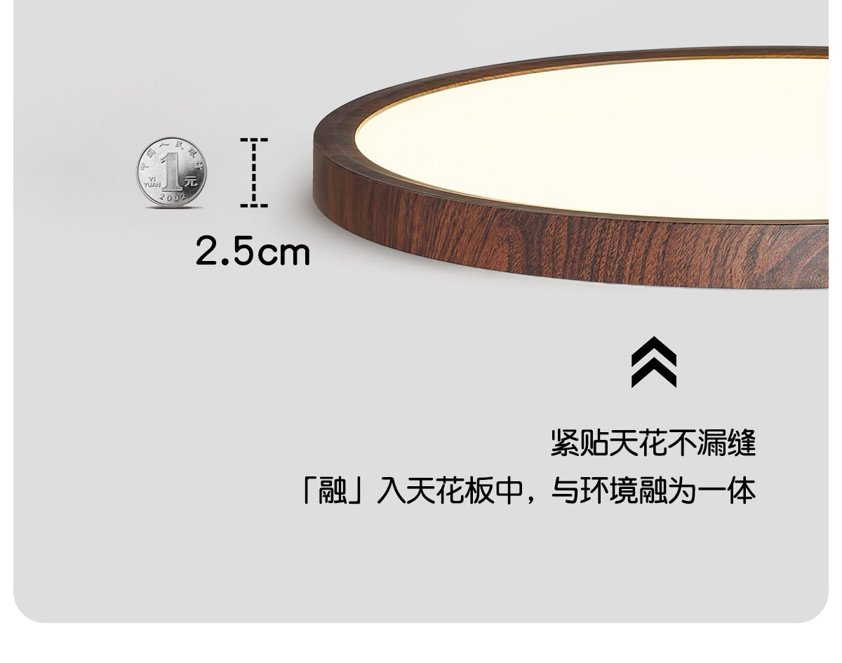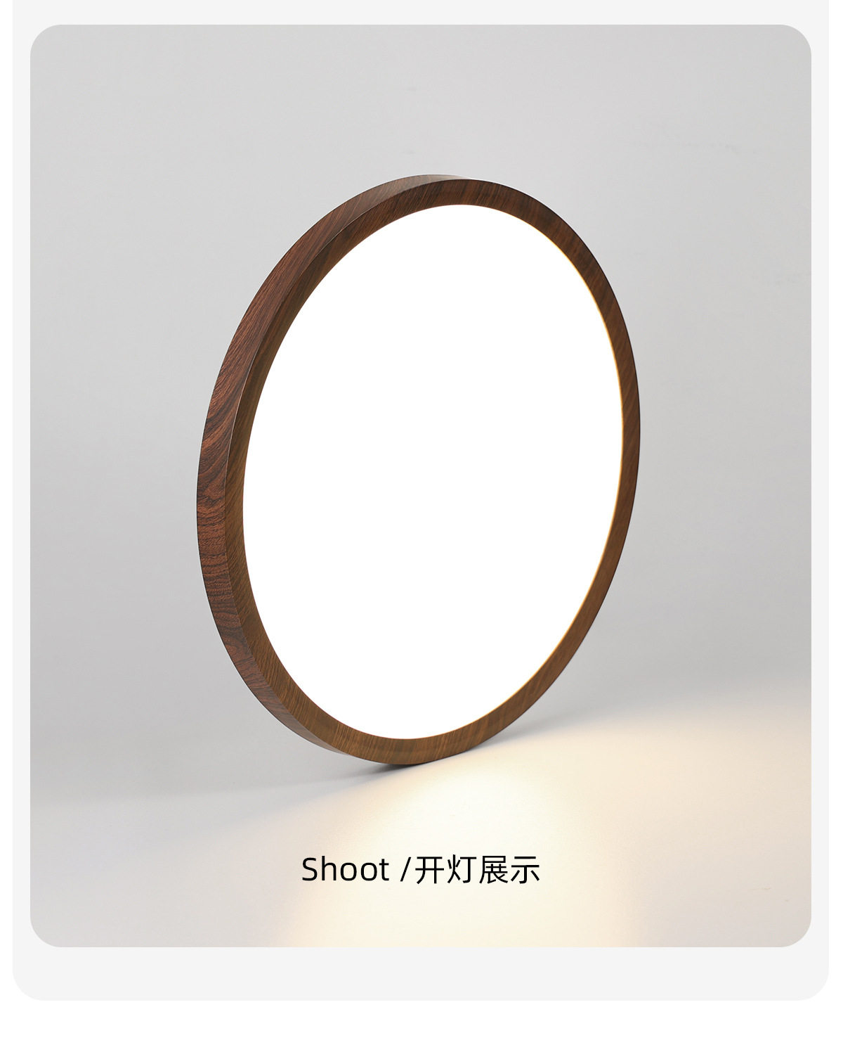 Japanese-Style Walnut Wood Grain Bedroom Ceiling Lamp, French Mid-Century Ultra-Thin Dining Room Simple Wabi-Sabi Study Eye-Protection Room Lamp