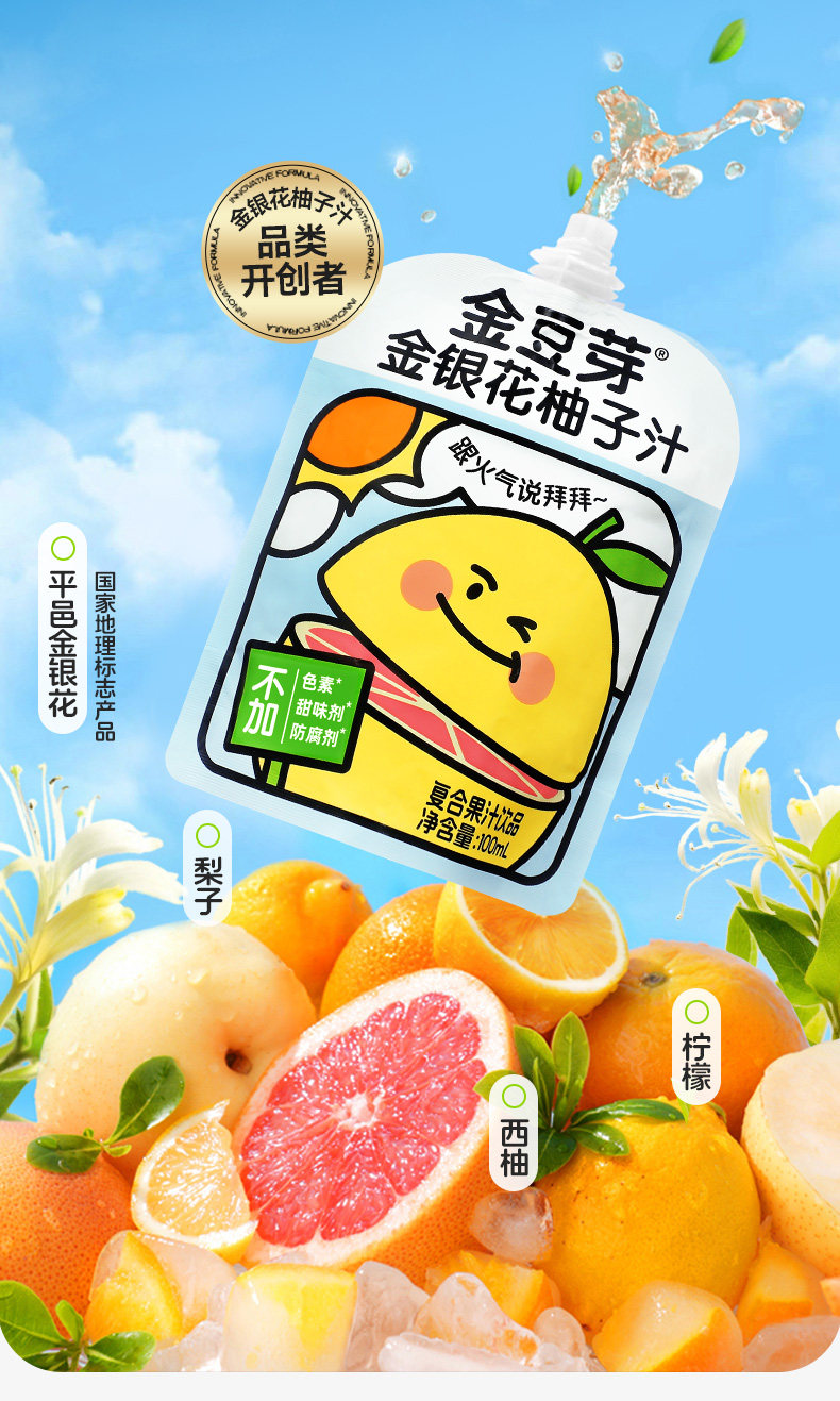 [Flash Sale] Golden Bean Sprouts Honeysuckle Pomelo Juice 100ml*4 Bags