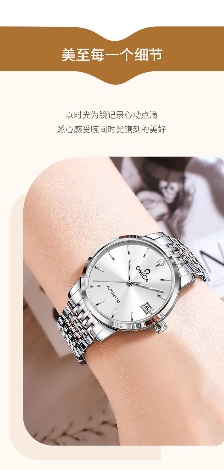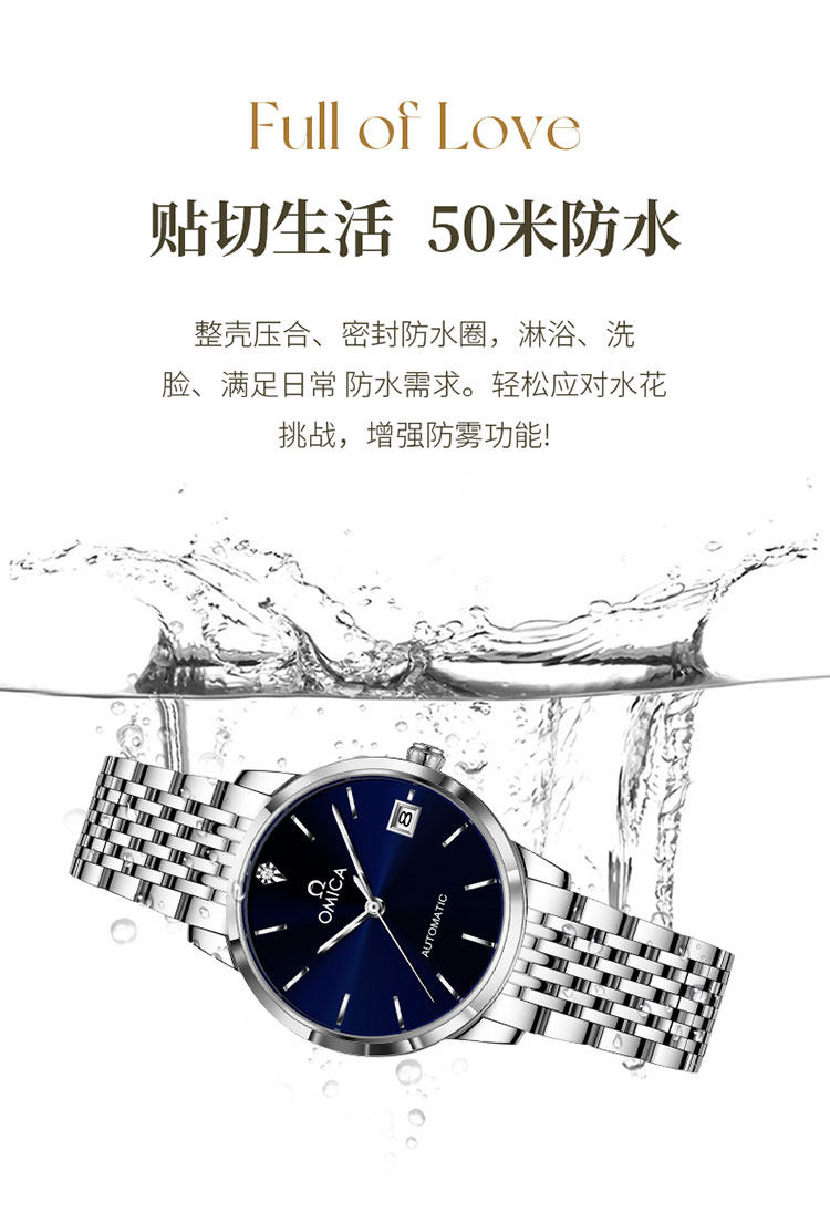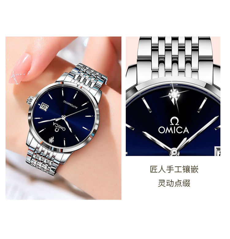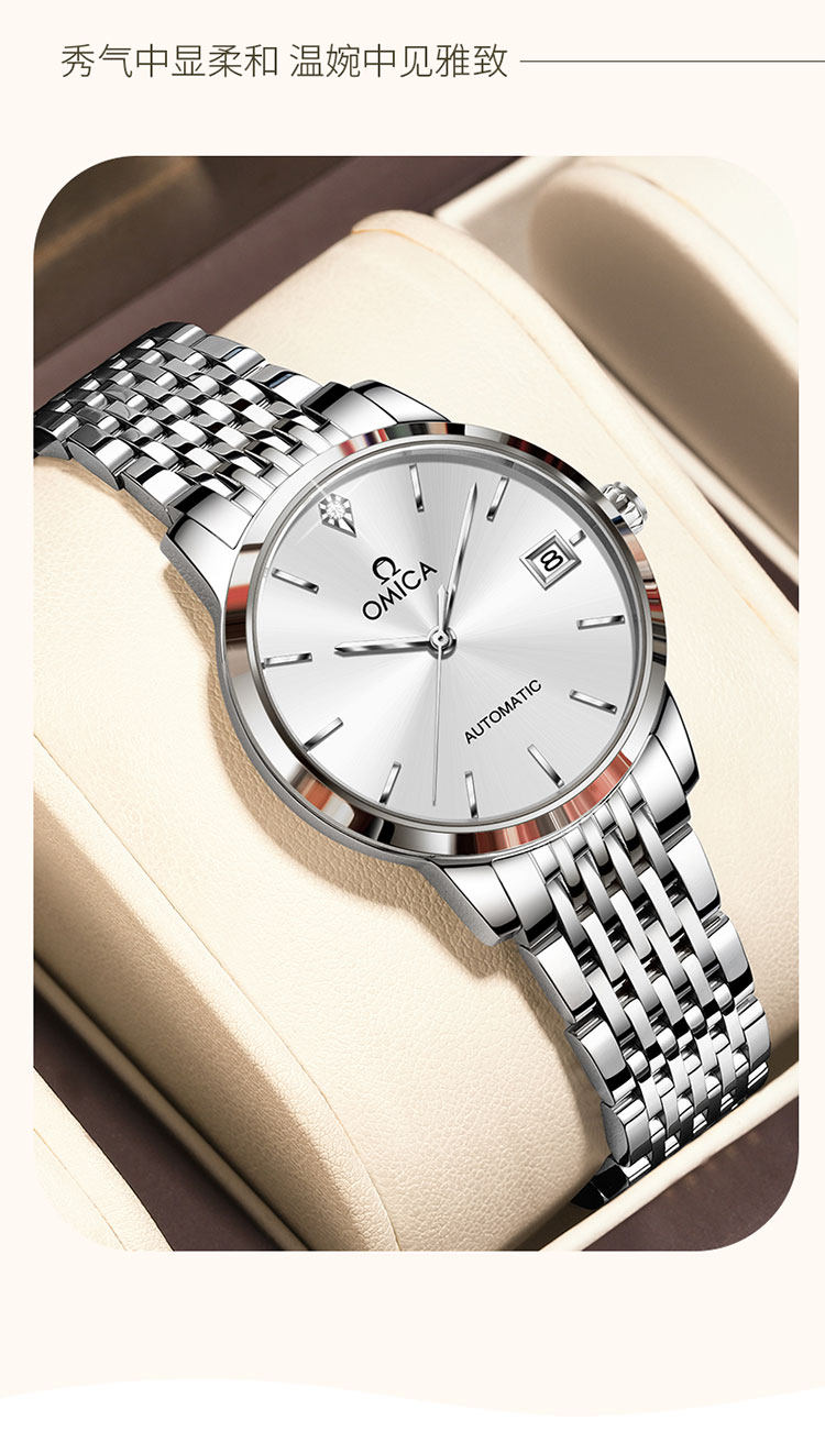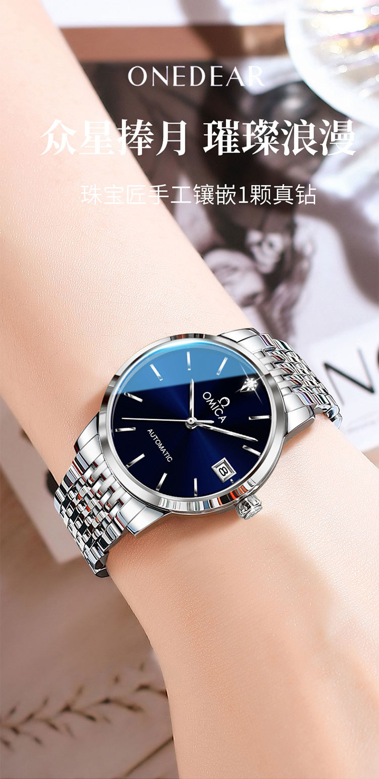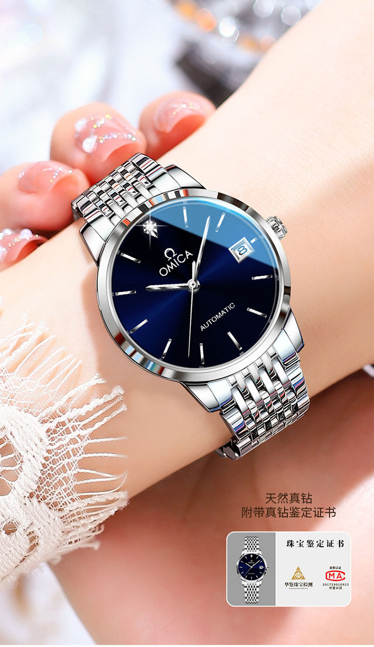 New Swiss Omica Women's Watch, Fully Automatic Mechanical Watch, Fashionable, Classic, Simple, Genuine Diamond, Waterproof