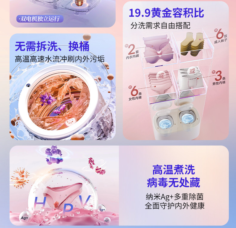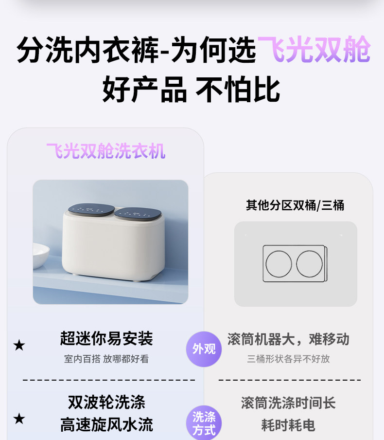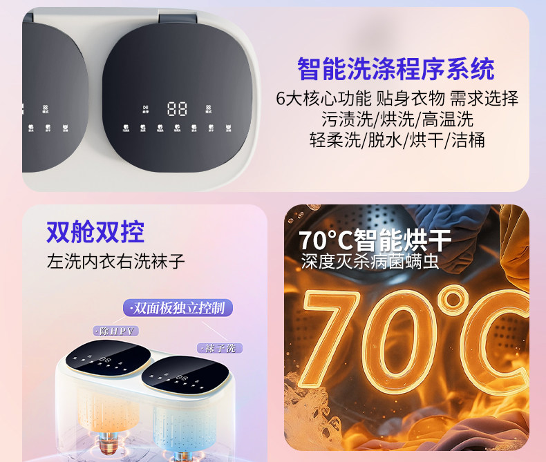 Double-Tub Mini Washing Machine for Underwear, Fully Automatic Mini Sock Washer and Dryer, Two-Tub Compact