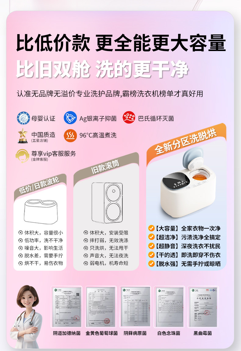 | Function | Stain Wash/Wash and Dry/High Temperature Wash/Gentle Wash/Dehydrate/Dry/Bucket Cleaning |
