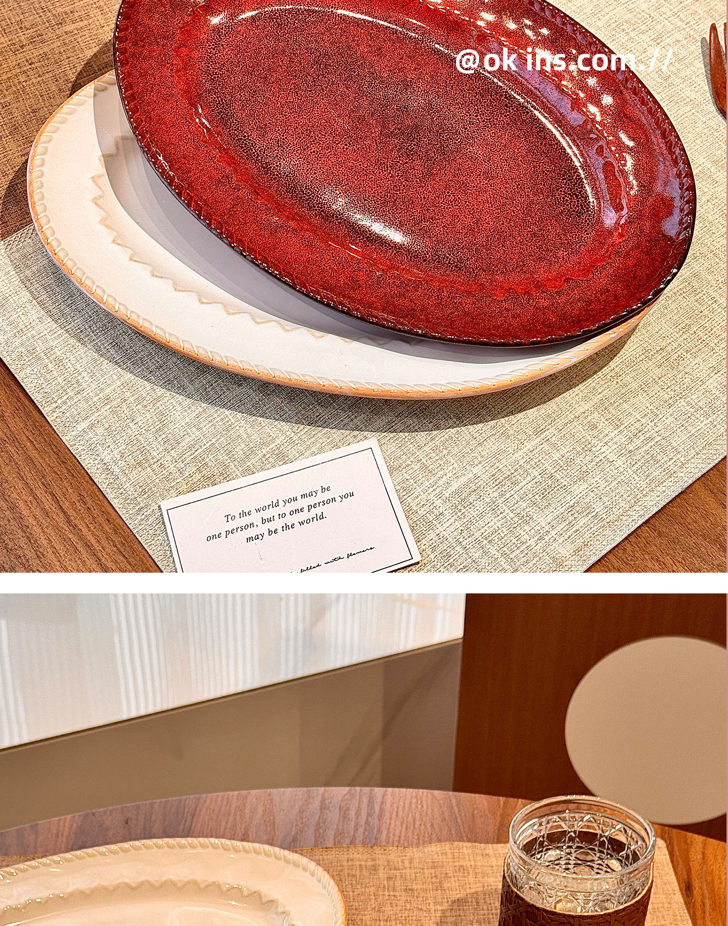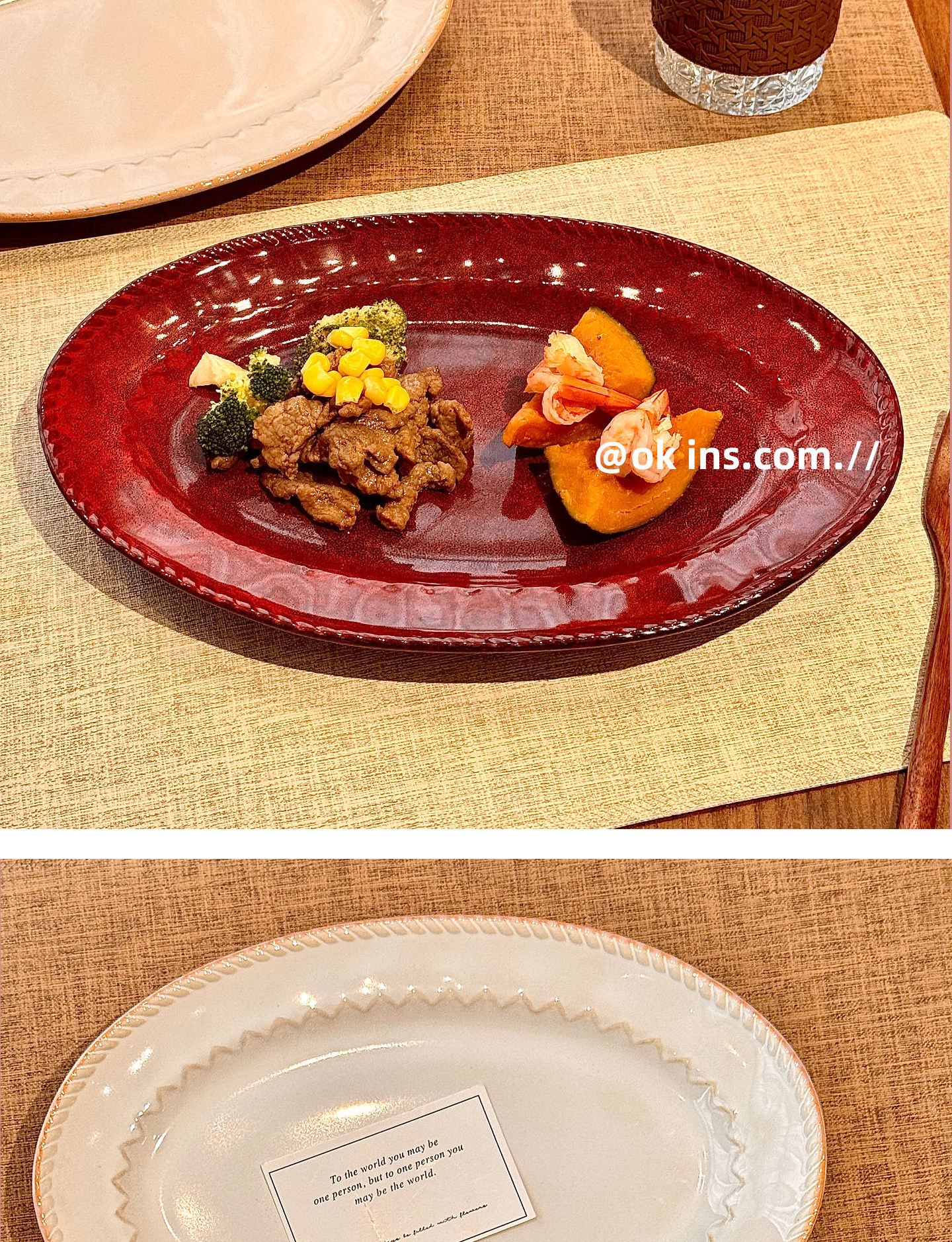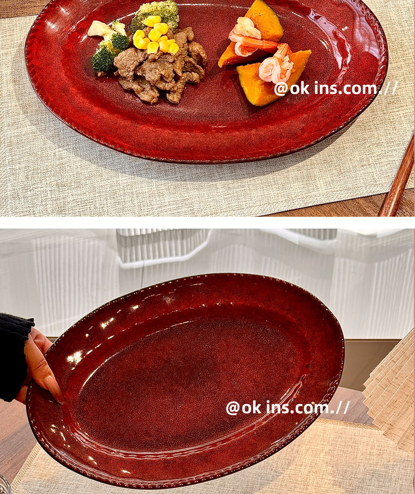 Japanese-Style Red Oval Fish Plate, Household Dish Plate, Ceramic Tableware, 2025 New Model, Steak Plate, Large Fish Serving Plate