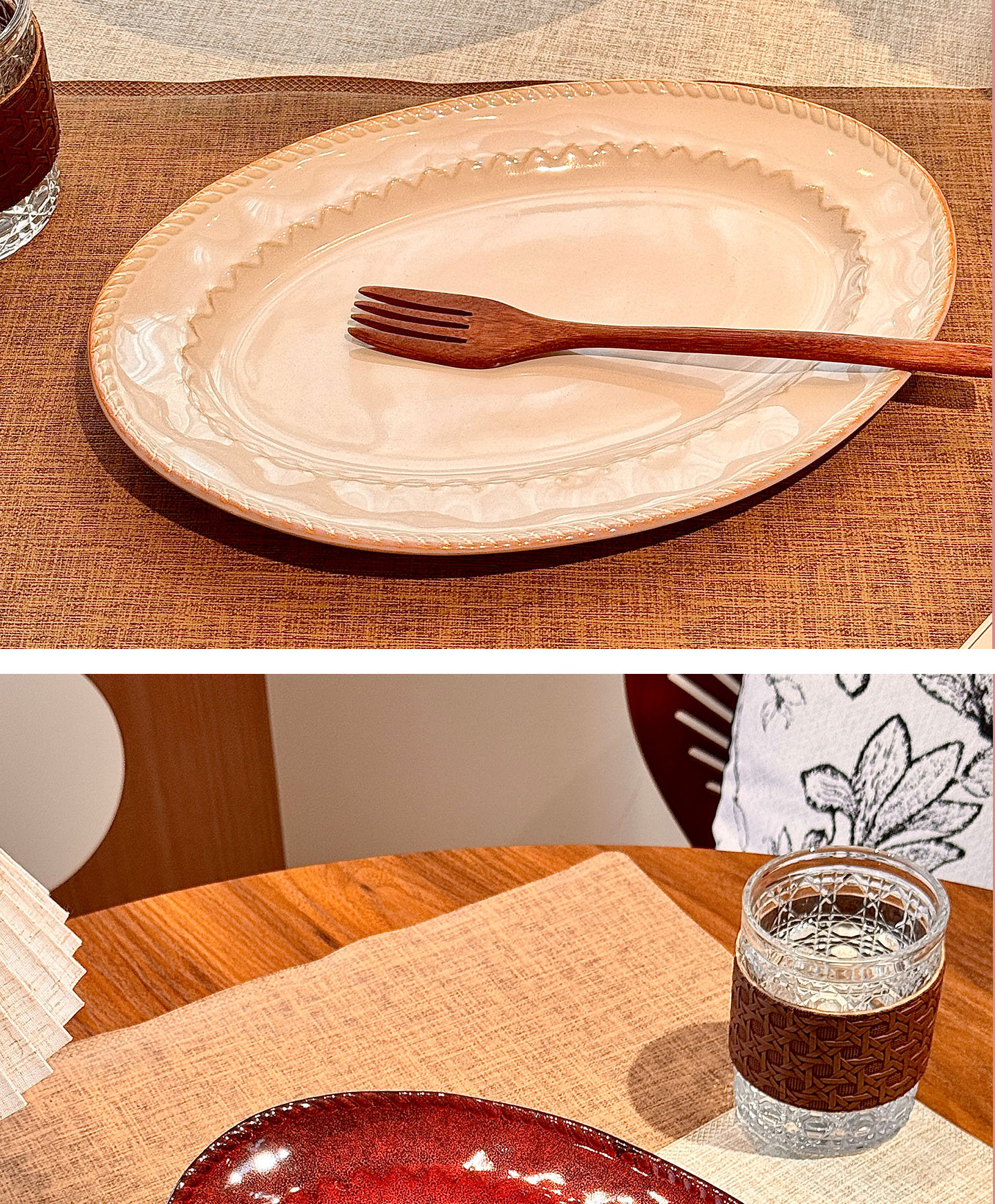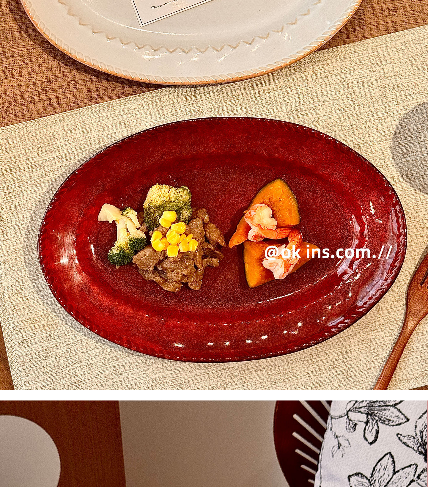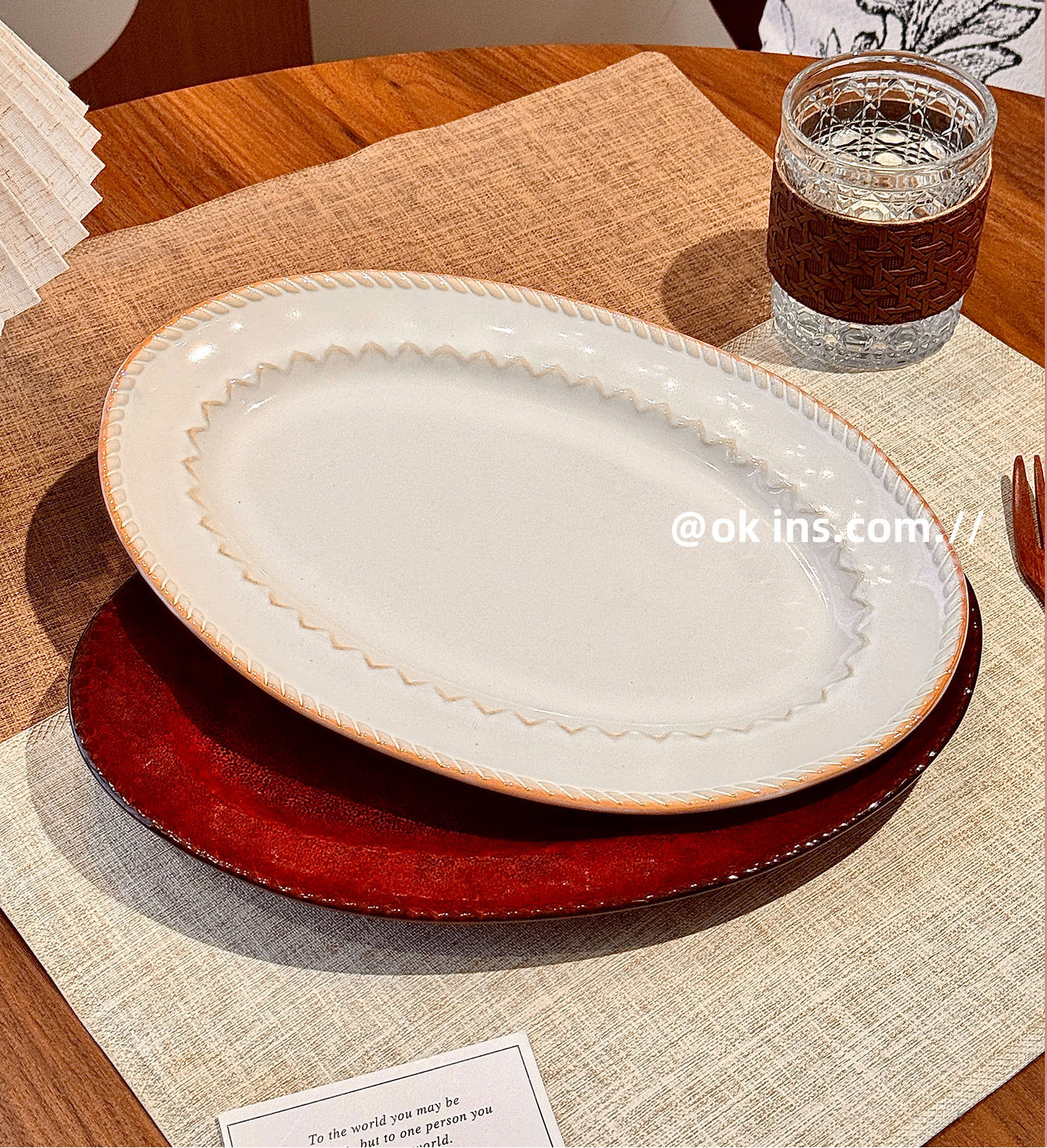 Japanese-Style Red Oval Fish Plate, Household Dish Plate, Ceramic Tableware, 2025 New Model, Steak Plate, Large Fish Serving Plate