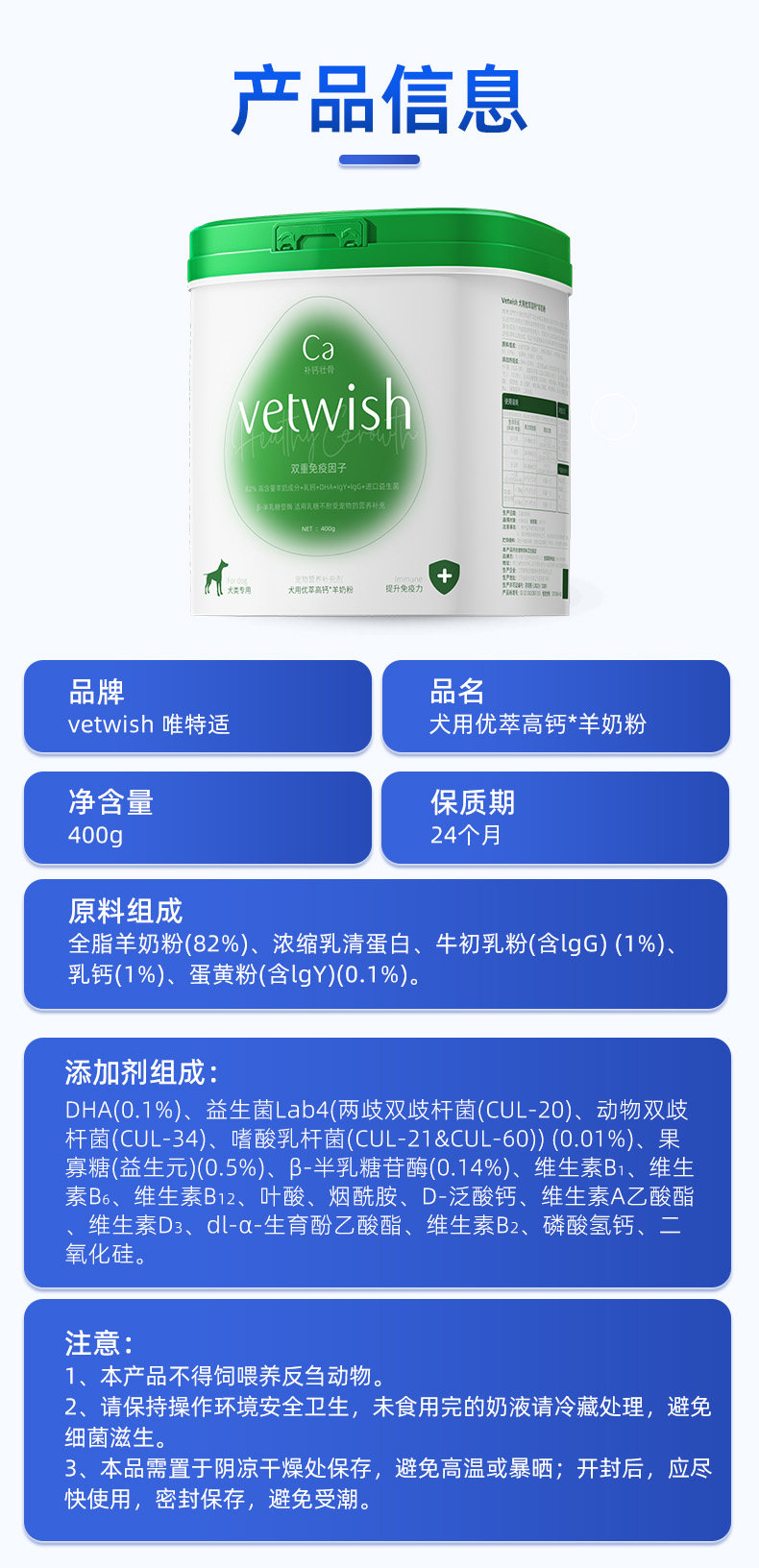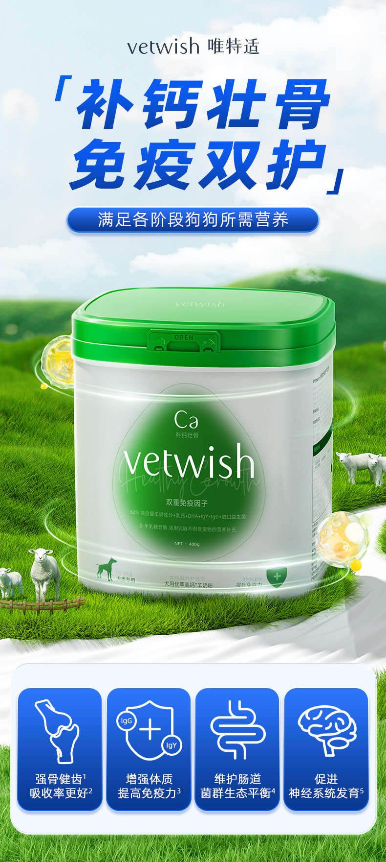 Vetwish Dog-Specific High-Calcium Goat Milk Powder, Dog Goat Milk Powder, Dog Milk Powder, Calcium Supplement, Strengthens Bones, Improves Immunity