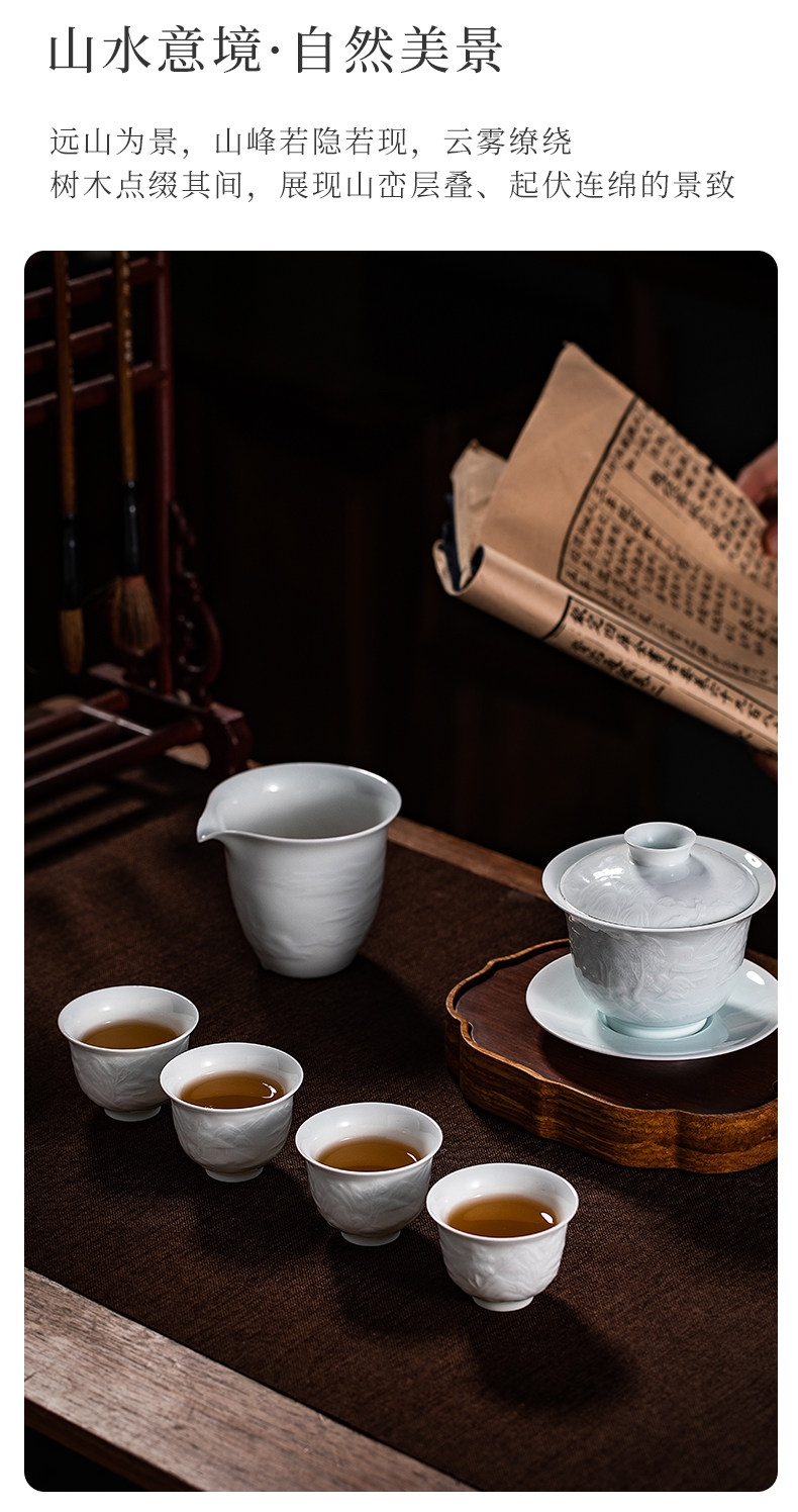 Jingdezhen 2026 New Model Kung Fu Tea Set for Home Use, Light Luxury High-End Gaiwan Master Cup, Gift Box for Elders