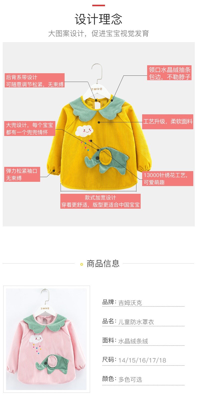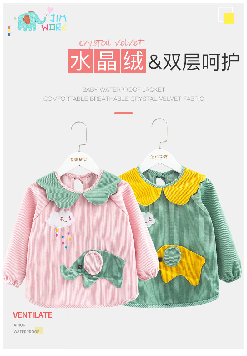 Baby Smock Waterproof and Anti-Dirty Children's Autumn and Winter Girls' Reverse-Wear Bib Eating Clothes Crystal Velvet Baby Apron