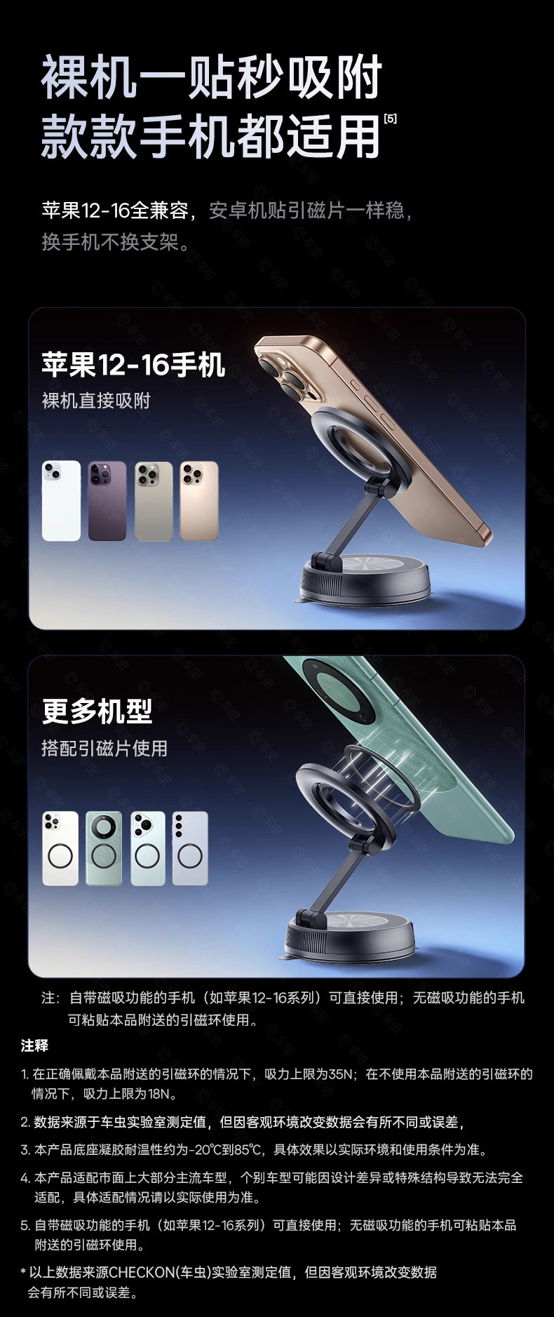 | Color Classification | Dual Use for Home/Carâ Apple and Android Universalâ 720°Three-Axis Adjustmentâ No Installation Location Restrictionsâ Universal for All Models,[Add to Favorites and Cart]Send Magnetic Ringâ 30 Days Free TrialïŒTwo-Year Warranty,[Super Magnetic Suction Modelâ Cool Black]720 ° Fold and Rotate â Can'T Shake It Off â Leaves No Residue and Does Not Damage the Car. â Can Be Reused,[Pro Upgraded VersionâCool Black]Magnetic Force Newly UpgradedâShake It Hard, It Won'T Come Off | the Adsorption Is More Stableâ0 Charging 0 Glue Residue,[Pro Upgraded VersionâPeach Blossom Pink]Magnetic Force Newly UpgradedâShake It Hard, It Won'T Come Off | the Adsorption Is More Stableâ0 Charging 0 Glue Residue,[Ultra Top Versionâ Cool Black]Faster Adsorptionâ 5X Magnetic Suction | Unstable? Get a Refundâ 0 Charging 0 Glue Residue,[Ultra Top Versionâ Lilac Purple]Faster Adsorptionâ 5X Magnetic Suction | Unstable? Get a Refundâ 0 Charging 0 Glue Residue |