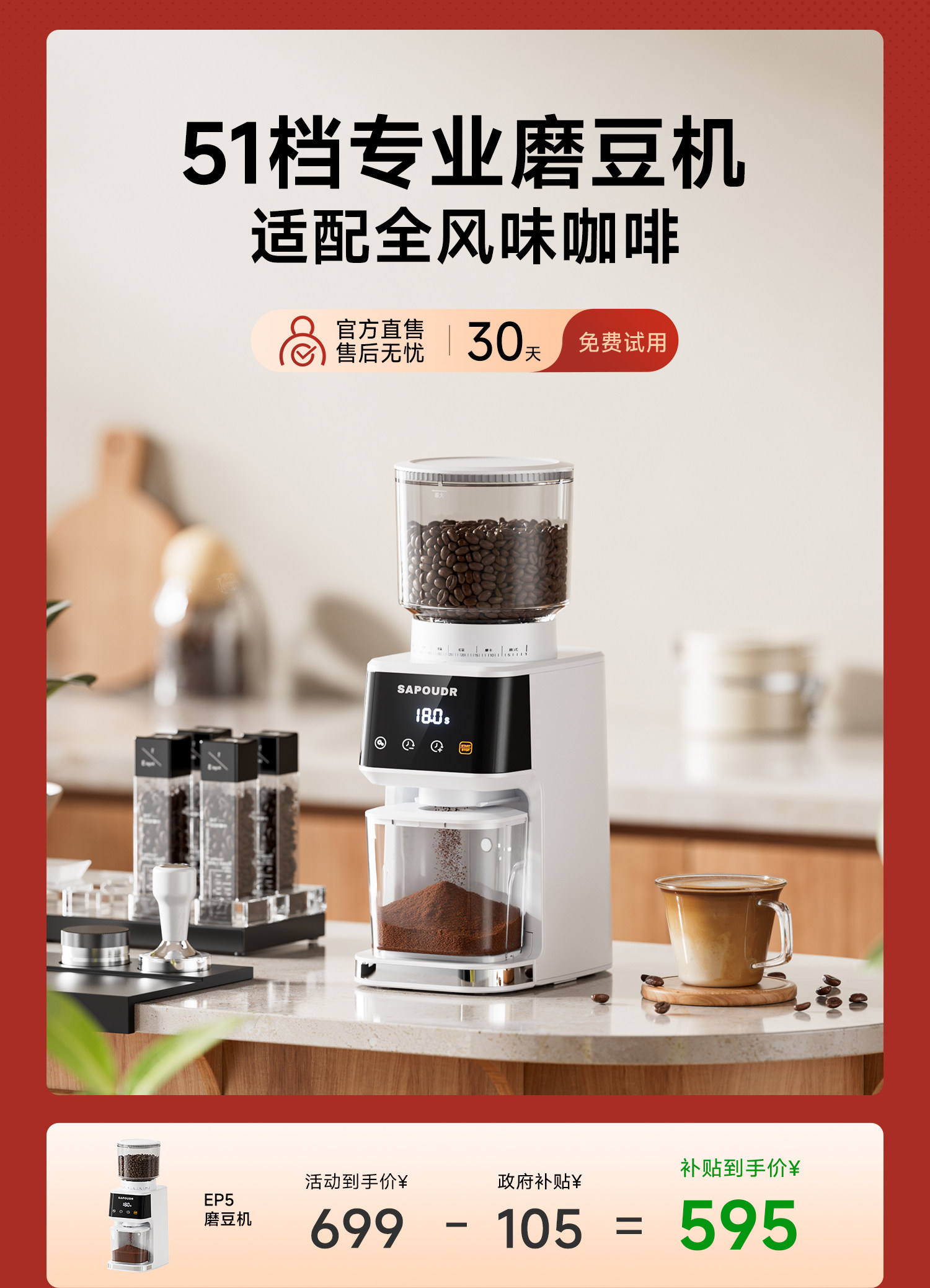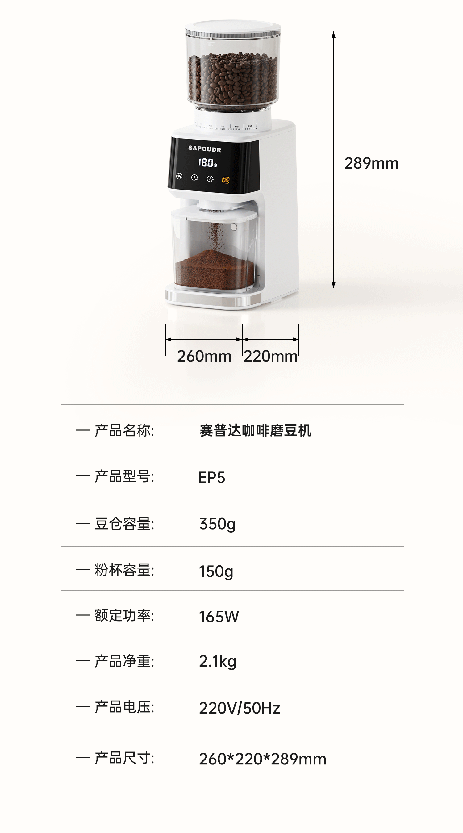 Sapoudr Ep5 Coffee Grinder Small Household Electric Grinder for Espresso and Drip Coffee