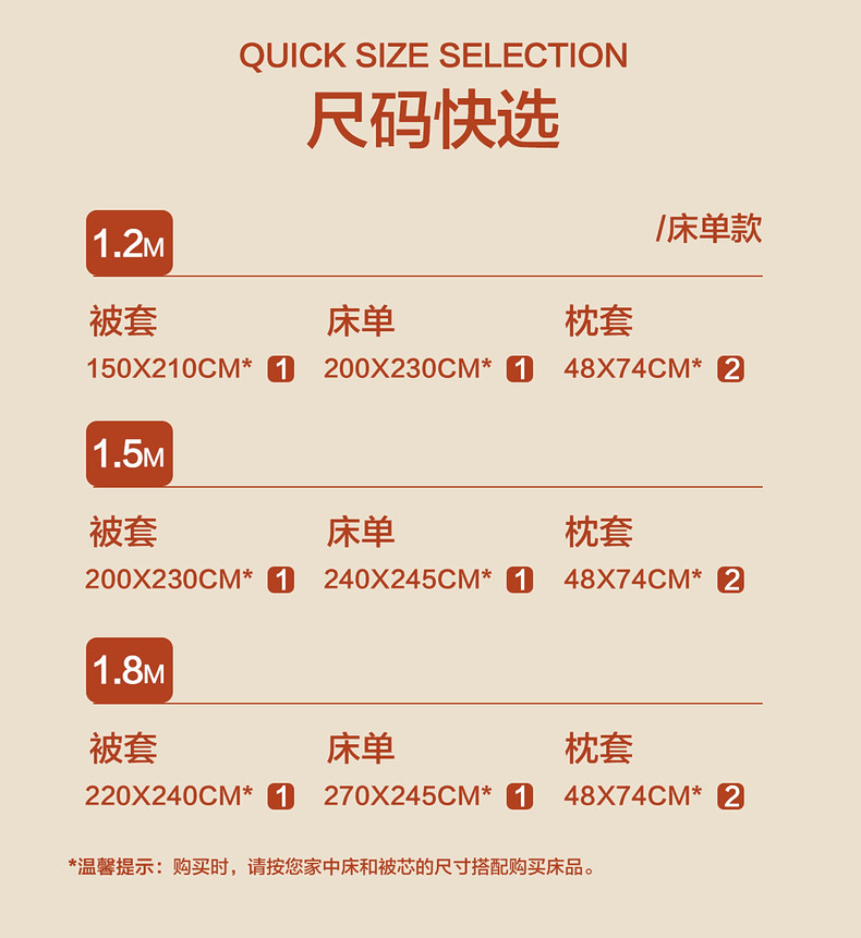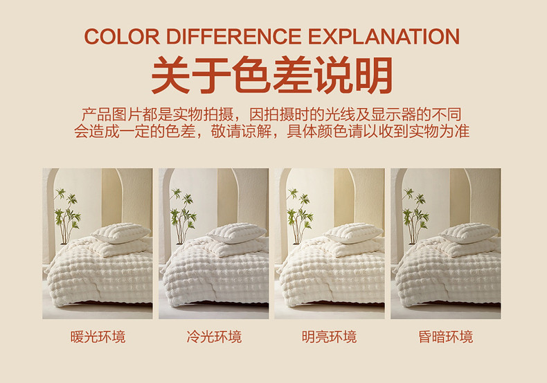 | Applicable Bed Size | 1.2m Bed Suitable for 150*210cm Quilt Core,1.5m Bed Suitable for 200*230cm Quilt Core,1.8m Bed Suitable for 220*240cm Quilt Core |