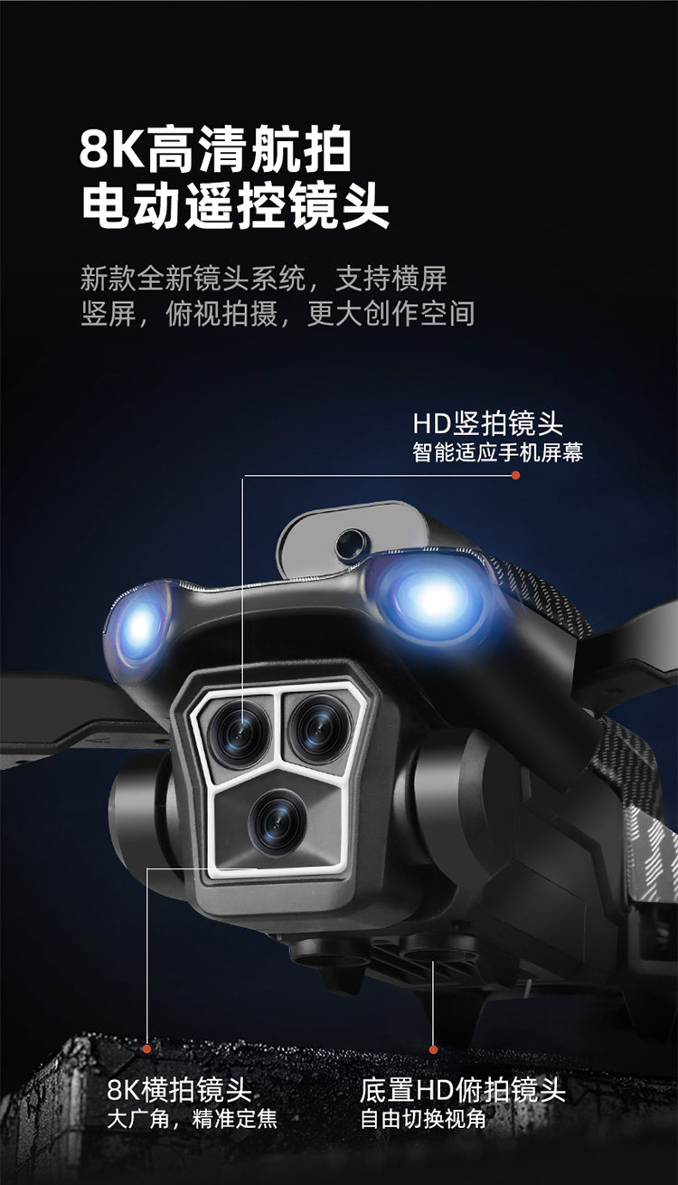 | Color Classification | [Exquisite Gift Box]No Aerial Photography + Intelligent Air Pressure Height Setting/One-Click Takeoff and Landing/Stunt Roll-Black,[Exquisite Gift Box]8K Single-Lens Mobile Phone Interconnect Aerial Photography Drone + Intelligent Air Pressure Altitude Hold/One-Key Takeoff/Landing/Stunt Rolls - Black,[Free Vr Glasses + Exquisite Gift Box]8K Single-Lens Mobile Phone Interconnect Aerial Photography Drone + Intelligent Air Pressure Altitude Hold/One-Key Takeoff/Landing/Stunt Rolls,[Exquisite Gift Box]8K Dual-Lens Mobile Phone Interconnect Aerial Photography Drone + Smart Air Pressure Altitude Hold/One-Key Takeoff/Landing/Stunt Rolls - Black,[Free Vr Glasses + Exquisite Gift Box]8K Dual-Lens Smartphone Interconnect Aerial Photography Drone + Smart Air Pressure Altitude Hold/One-Key Takeoff/Landing/Stunt Rolls,Newbie Protection[540°Comprehensive Obstacle Avoidance + Gift Box]No Aerial Photography/Intelligent Height Setting/One-Click Takeoff and Landing/Stunt Roll-Black,Newbie Protection[540°Comprehensive Obstacle Avoidance + Gift Box]8K Single-Lens Mobile Phone Interconnect Aerial Photography / Smart Altitude Hold / One-Key Takeoff & Landing / Stunt Rolls,Newbie Protection[540°Comprehensive Obstacle Avoidance + Gift Box]8K Dual-Lens Smartphone Interconnect Aerial Photography / Smart Altitude Hold / One-Key Takeoff & Landing / Stunt Rolls,Remote Control Lens[540°Comprehensive Obstacle Avoidance Protection + Gift Box]Ultra Clear[Electrically Controlled Single Camera + Optical Flow Stabilization]Take Off/Roll/App Dual Control,Remote Control Lens[540°Comprehensive Obstacle Avoidance Protection + Gift Box]Ultra Clear[Electrically Controlled Dual Camera + Optical Flow Stabilization]Take Off/Roll/App Dual Control,Remote Control Three Cameras[540°Comprehensive Obstacle Avoidance Protection + Gift Box]Ultra Clear[Electrically Controlled Three Lenses + Optical Flow Stabilization]Takeoff/Roll/Dual Control,Remote Control Four Cameras[540°Comprehensive Obstacle Avoidance Protection + Gift Box]Ultra Clear[Electrically Controlled Four Lenses + Optical Flow Stabilization]Takeoff/Roll/Dual Control,Large/Strong Wind Resistance/Brushless Professional Grade[540°Obstacle Avoidance/Optical Flow Hover]Ultra Clear[Electrically Adjustable Five Cameras]Dual Control,[Digital Display]Strong Wind Resistance/Brushless Professional Grade[540°Obstacle Avoidance/Optical Flow Hover]Ultra Clear[Electrically Adjustable Five Cameras]Carbon Fiber,[Water Bomb Battle]Strong Wind Resistance/Brushless Professional Grade[540°Obstacle Avoidance/Optical Flow Hover]Ultra Clear[Electrically Adjustable Five Cameras]Carbon Fiber,[Comes with Screen Aerial Photography]Comes with Card Reader + Memory Card[Electronic Control Five Cameras +540°Obstacle Avoidance + Brushless Motor + Optical Flow Stabilization,Large Gps Automatic Return/Anti-Wind[Data Disk][Laser Obstacle Avoidance with No Blind Spots]Electronic Five-Camera/Dual Control,[Comes with Screen Aerial Photography][Gps Auto Return + Esc Five-Camera System + Satellite Augmented Hovering + Brushless Wind Resistance + Laser Obstacle Avoidance (No Blind Spots) |