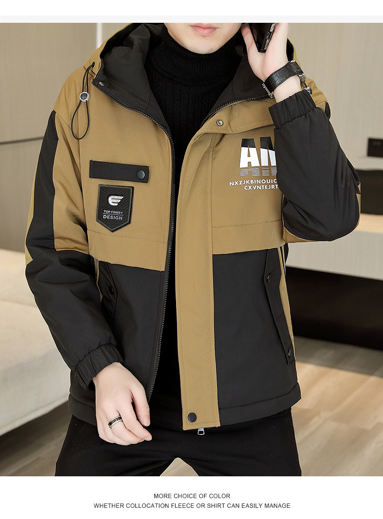 Fleece-Lined and Thickened Men's Jacket, Trendy and Versatile Workwear Jacket, Autumn and Winter Windproof, Waterproof, and Warm Men's Outdoor Jacket