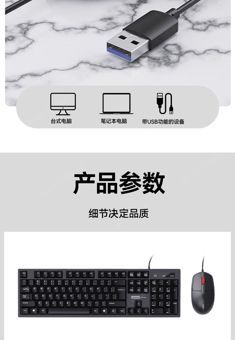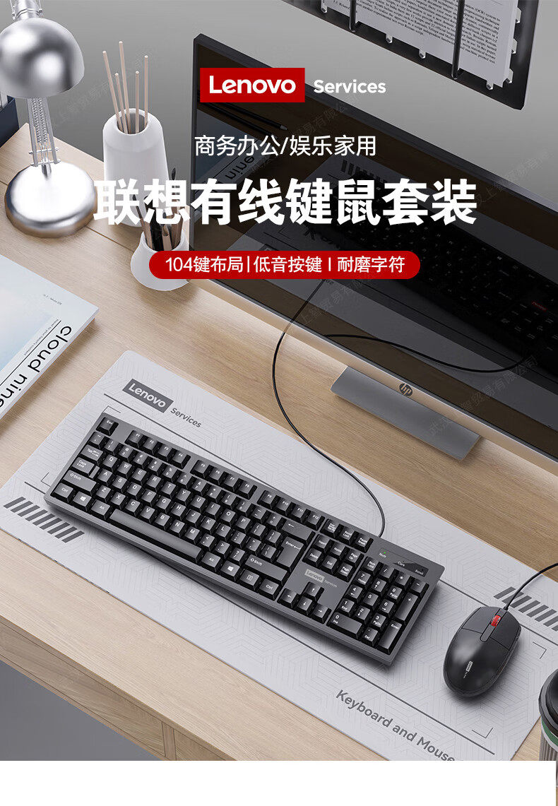 Lenovo/Lenovo Keyboard and Mouse Set Wired Office Desktop Laptop Universal Silent Typing