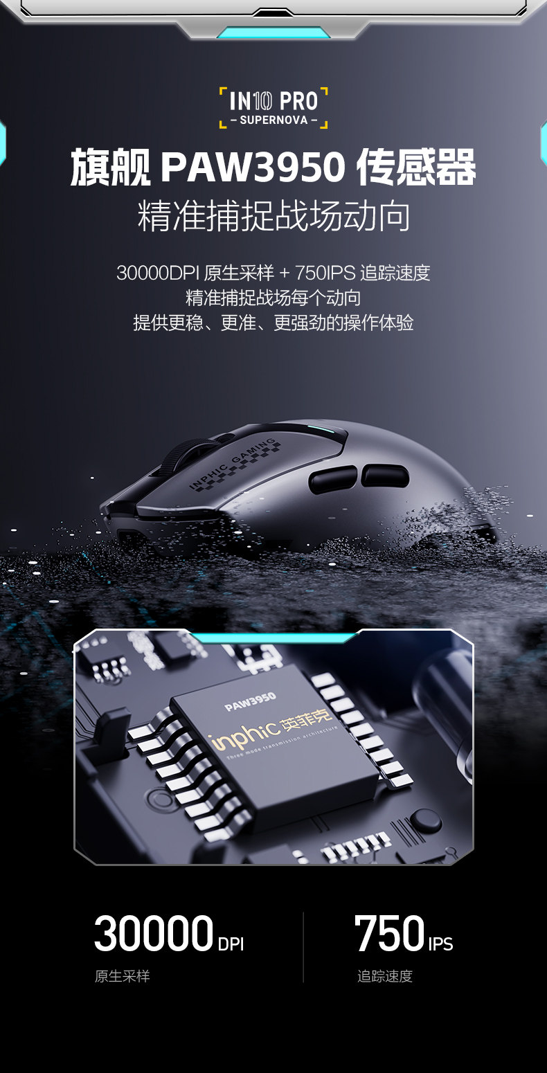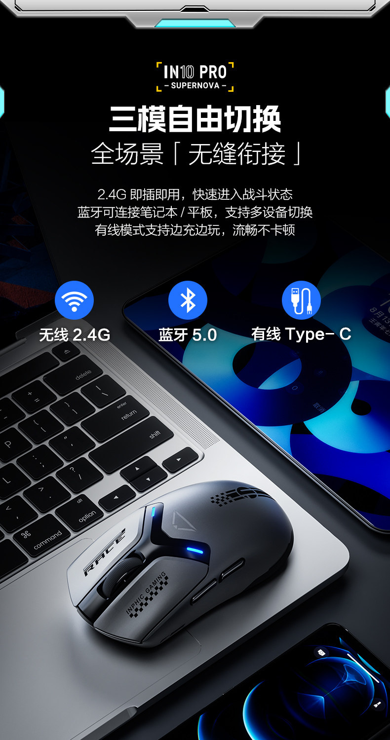 Inphic In10Pro Wireless Mouse Three-Mode Gaming E-Sports Macro 3950 Laptop Mechanical Wired