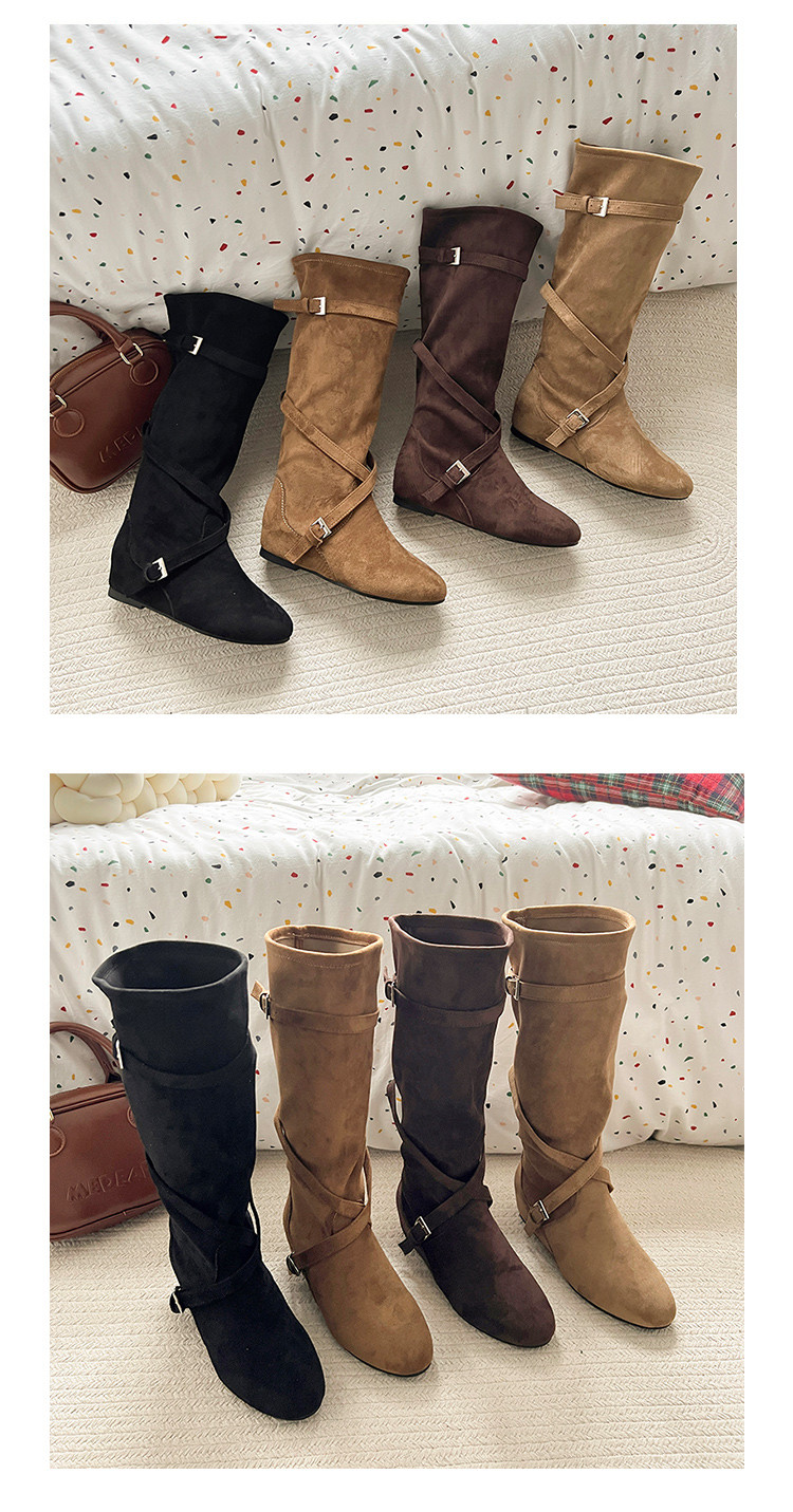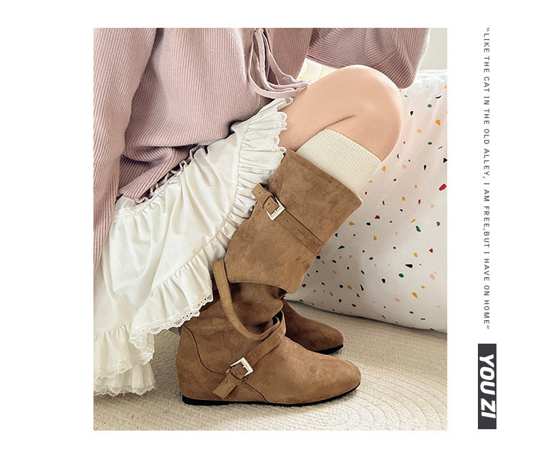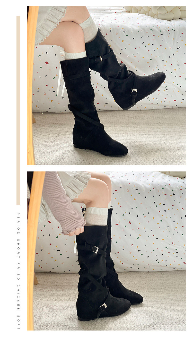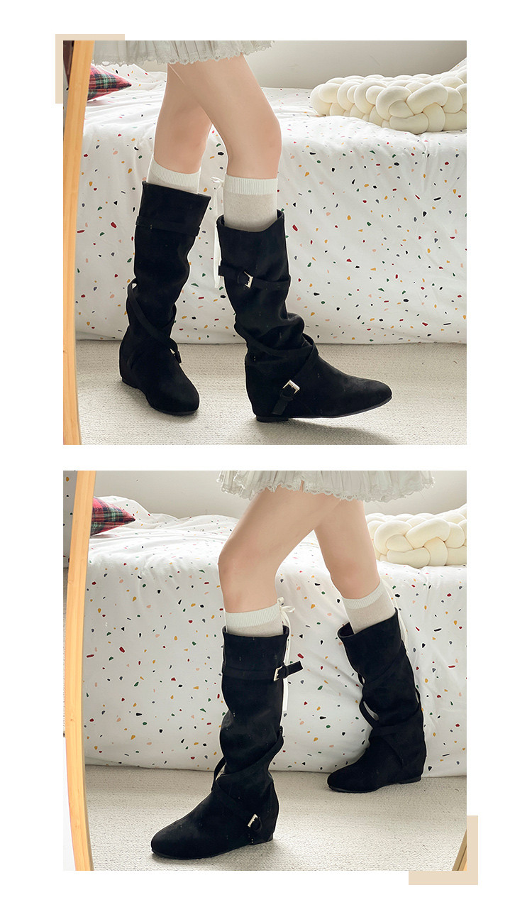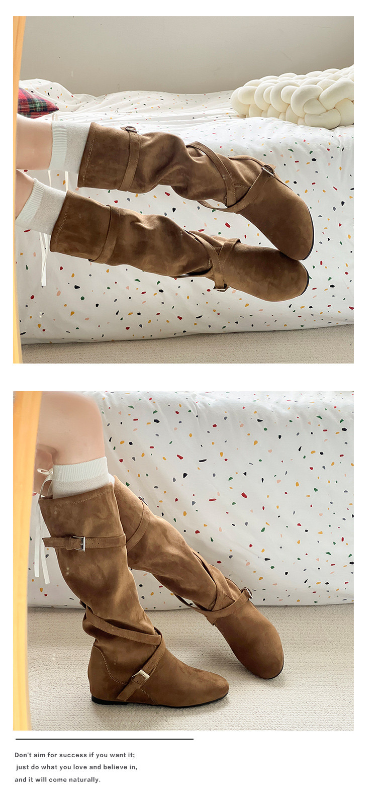 Women's Height-Increasing Long Boots 2025 New Autumn Vintage Versatile Stacked Boots with Belt Buckle Slimming High-Top Riding Boots