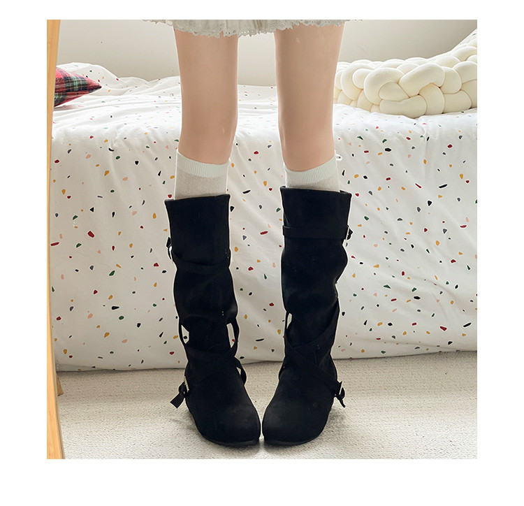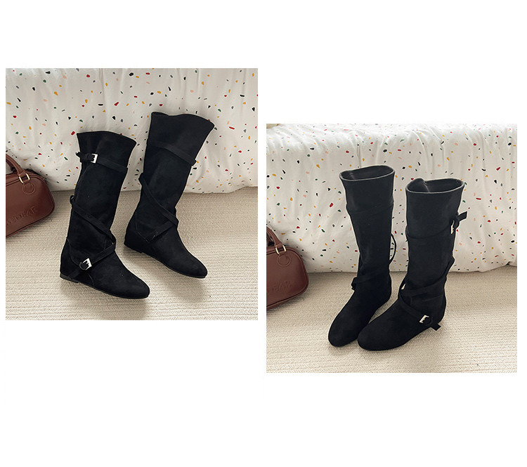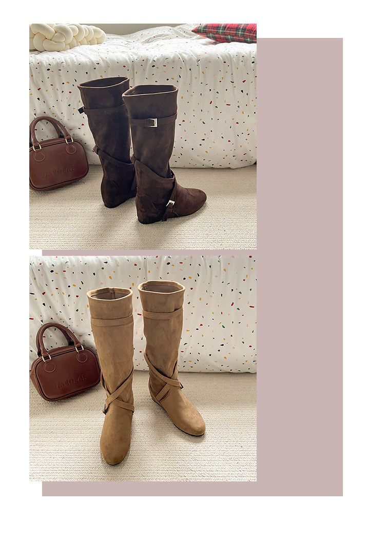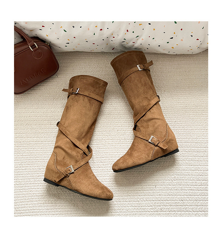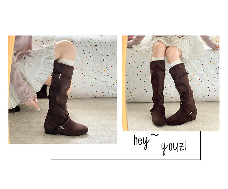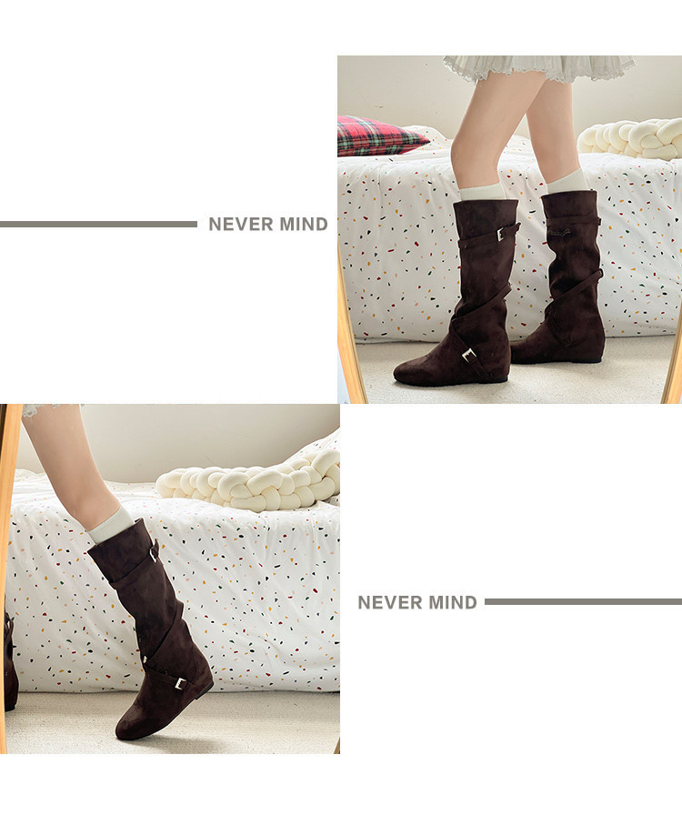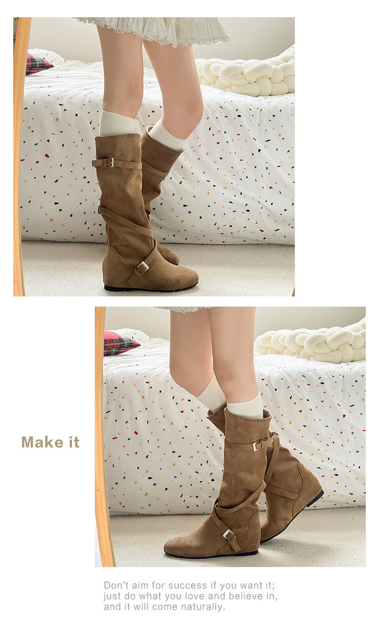 Women's Height-Increasing Long Boots 2025 New Autumn Vintage Versatile Stacked Boots with Belt Buckle Slimming High-Top Riding Boots