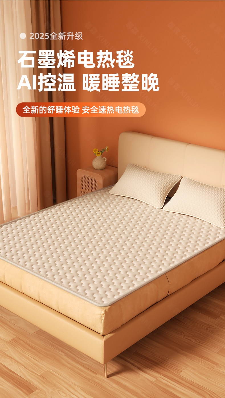 2025 New Graphene Electric Blanket Genuine Official Flagship Store Electric Mattress for Home Use Double Control Temperature Adjustment Single Person