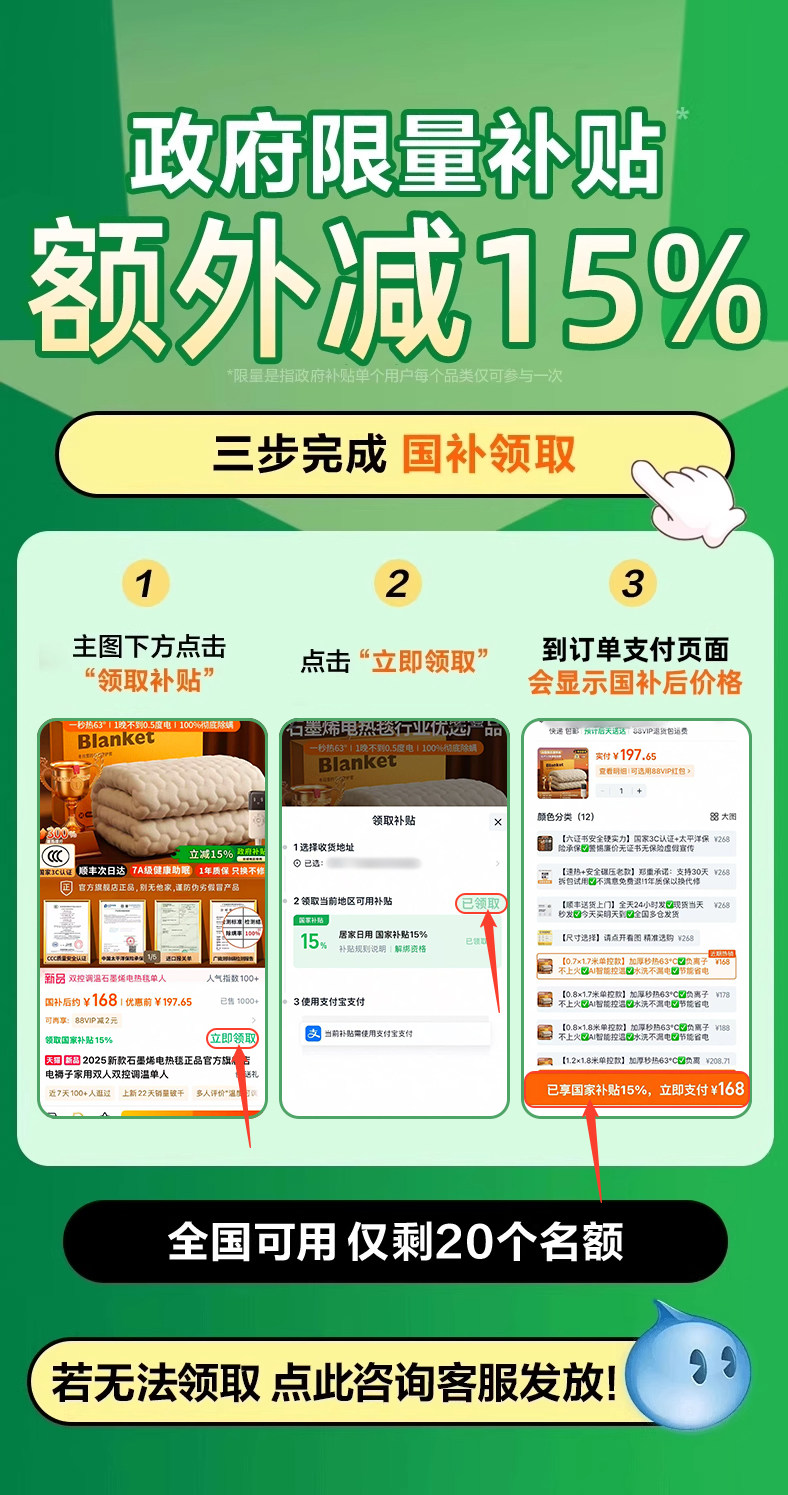 | Color Classification | 【Limited-Time Launch Price】First 200 Inquiries Get a New Product Subsidy!,【Eight Key Certifications: Solid Security】Nationally Certified 3C + Underwritten by Pacific Insurance✅Beware of Cheap, Unlicensed, Uninsured, and Falsely Advertised Products.,【Rapid Heating + Safety Far Superior to Old Models】Our Solemn Promise: 30-Day Unboxing and Trial Support.✅Free Returns if Not Satisfied! 1-Year Warranty with Replacement Instead of Repair,【 Door to Door Delivery】Delivery 24 Hours a Day✅Ready Stock Shipped in Seconds on the Same Day✅Buy Today, Arrive Tomorrow✅Nationwide Multi-Warehouse Delivery,[Size Selection] Please Click to View the Picture for Accurate Purchase,【0.7× 1.7m Single Control】Thickened Instant Heat 63℃✅Negative Ions Do Not Cause Heat✅Ai Intelligent Temperature Control✅Waterproof and Leak-Proof✅Energy Saving and Power Saving,【0.8 X 1.7m Single Control】Thickened Instant Heat 63℃✅Negative Ions Do Not Cause Heat✅Ai Intelligent Temperature Control✅Waterproof and Leak-Proof✅Energy Saving and Power Saving,【0.8 X 1.8m Single Control】Thickened Instant Heat 63℃✅Negative Ions Do Not Cause Heat✅Ai Intelligent Temperature Control✅Waterproof and Leak-Proof✅Energy Saving and Power Saving,【1.2 X 1.8m Single Control】Thickened Instant Heat 63 ℃ ✅ Negative Ions Do Not Cause Heat ✅ Ai Intelligent Temperature Control ✅ Waterproof and Leak-Proof ✅ Energy Saving and Power Saving,.1.2× 1.8m Single Control Model] Thickened Second Heat 63℃✅Negative Ions Do Not Cause Heat✅Ai Intelligent Temperature Control✅Waterproof and Leak-Proof✅Energy Saving and Power Saving,[1.5× 1.8m Dual Control Model] Thickened and Heated in Seconds 63℃✅Negative Ions Do Not Cause Heat✅Ai Intelligent Temperature Control✅Waterproof and Leak-Proof✅Energy Saving and Power Saving,.1.5× 1.8m Dual Control Model] Thickened Second Heat 63℃✅Negative Ions Do Not Cause Heat✅Ai Intelligent Temperature Control✅Waterproof and Leak-Proof✅Energy Saving and Power Saving,[1.8× 2.0m Dual Control Model] Thickened and Heated in Seconds 63℃✅Negative Ions Do Not Cause Heat✅Ai Intelligent Temperature Control✅Waterproof and Leak-Proof✅Energy Saving and Power Saving,.1.8× 2.0m Dual Control Model] Thickened Second Heat 63℃✅Negative Ions Do Not Cause Heat✅Ai Intelligent Temperature Control✅Waterproof and Leak-Proof✅Energy Saving and Power Saving,【Look for Products】15% Off ✅ Limited Spots Available. ✅ National Subsidy Certification Is More Secure.,[1.8× 2.0m Dual Control Model] Thickened and Heated in Seconds 63℃✅Negative Ions Do Not Cause Heat✅Ai Intelligent Temperature Control✅Waterproof and Leak-Proof✅Energy Saving.,Do Not Purchase This Item if You Are Not Instructed to Do So. This Is Specifically for Covering Shipping Cost Differences |