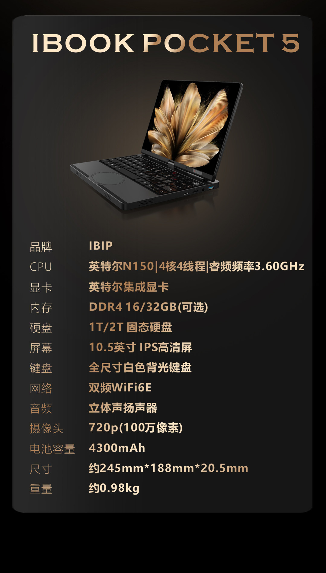 [Official Brand New Genuine] Ibook Pocket5 Mini Portable Handheld 2-in-1 Tablet Laptop Intel Office Touchscreen High-Performance Business Student Pocket Travel