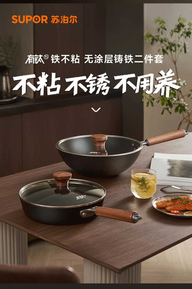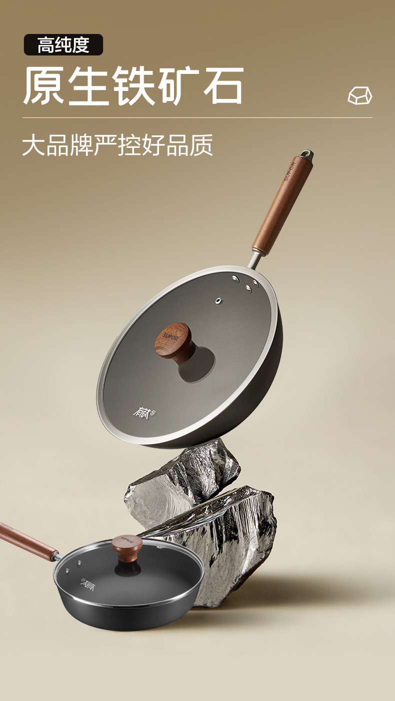 Supor Has a Two-Piece Titanium Iron Pot Set, a Complete Set of Household Cast Iron Frying Pans, Non-Stick Frying Pans, Cooking Pans, and Skillet Pans