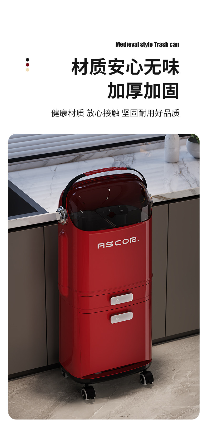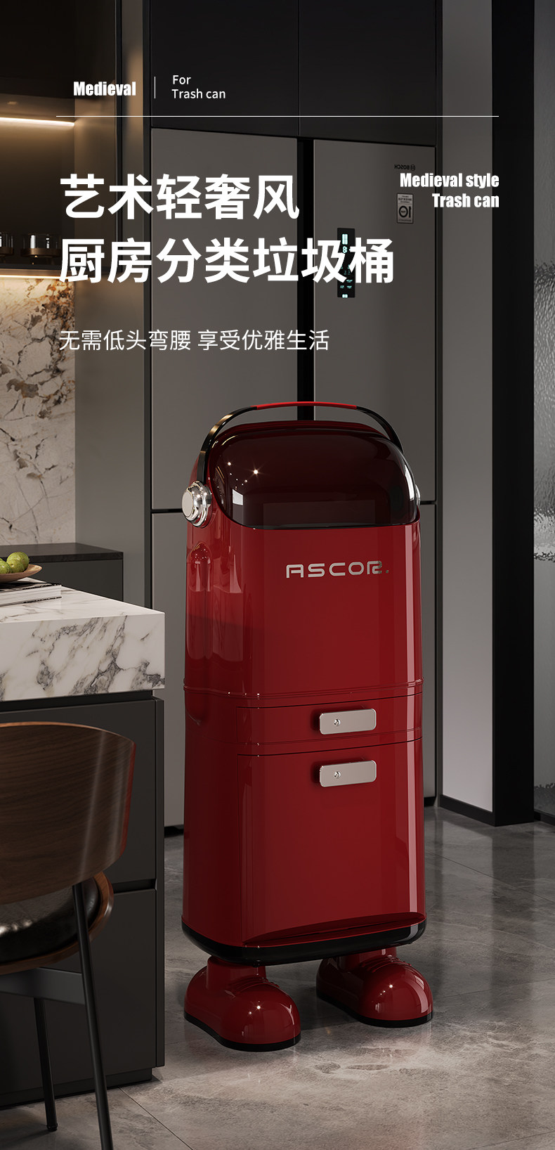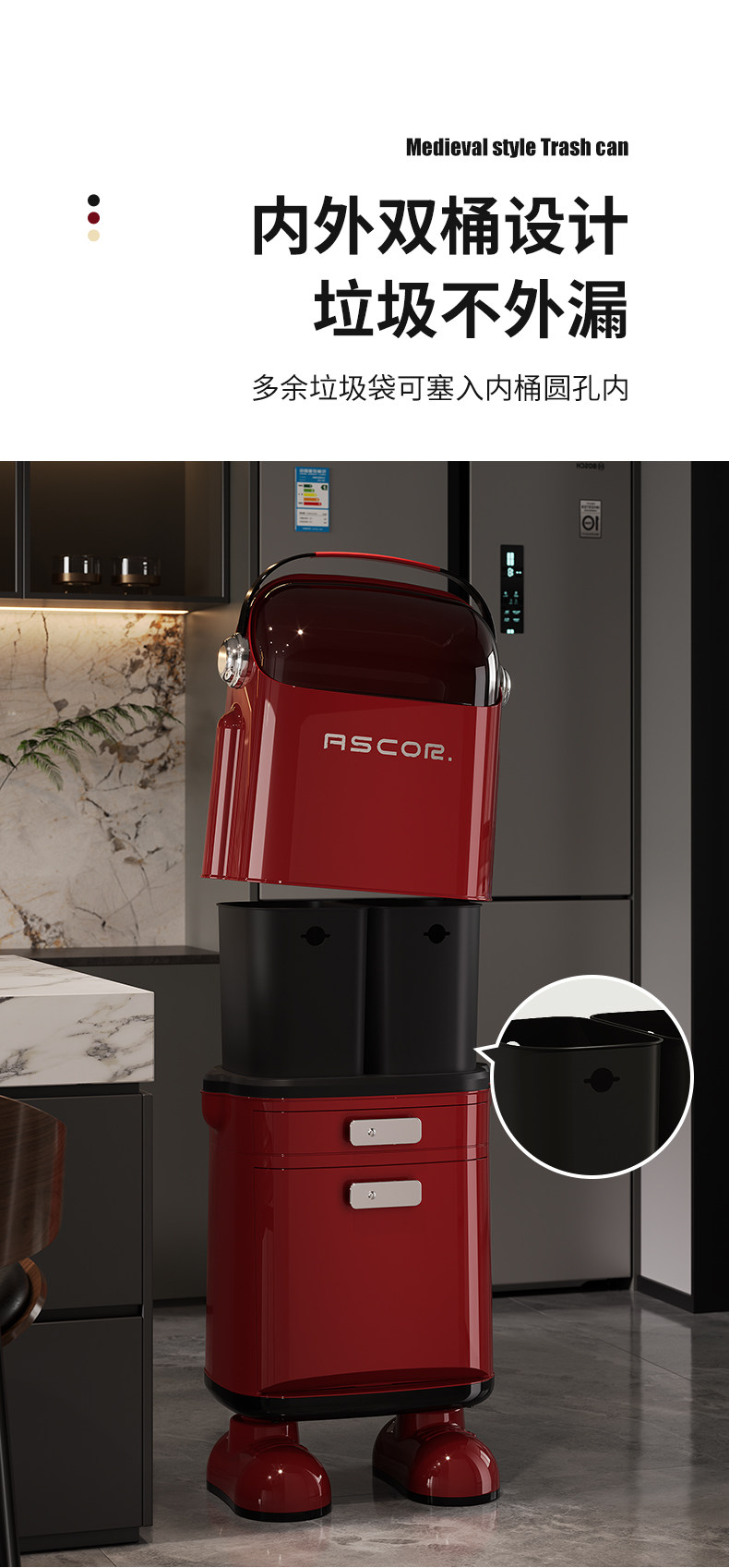 Luxury Kitchen Trash Can for Home Use, with Lid, Large Capacity, Tall Design, Double-Layer Dry and Wet Separation, Large Size