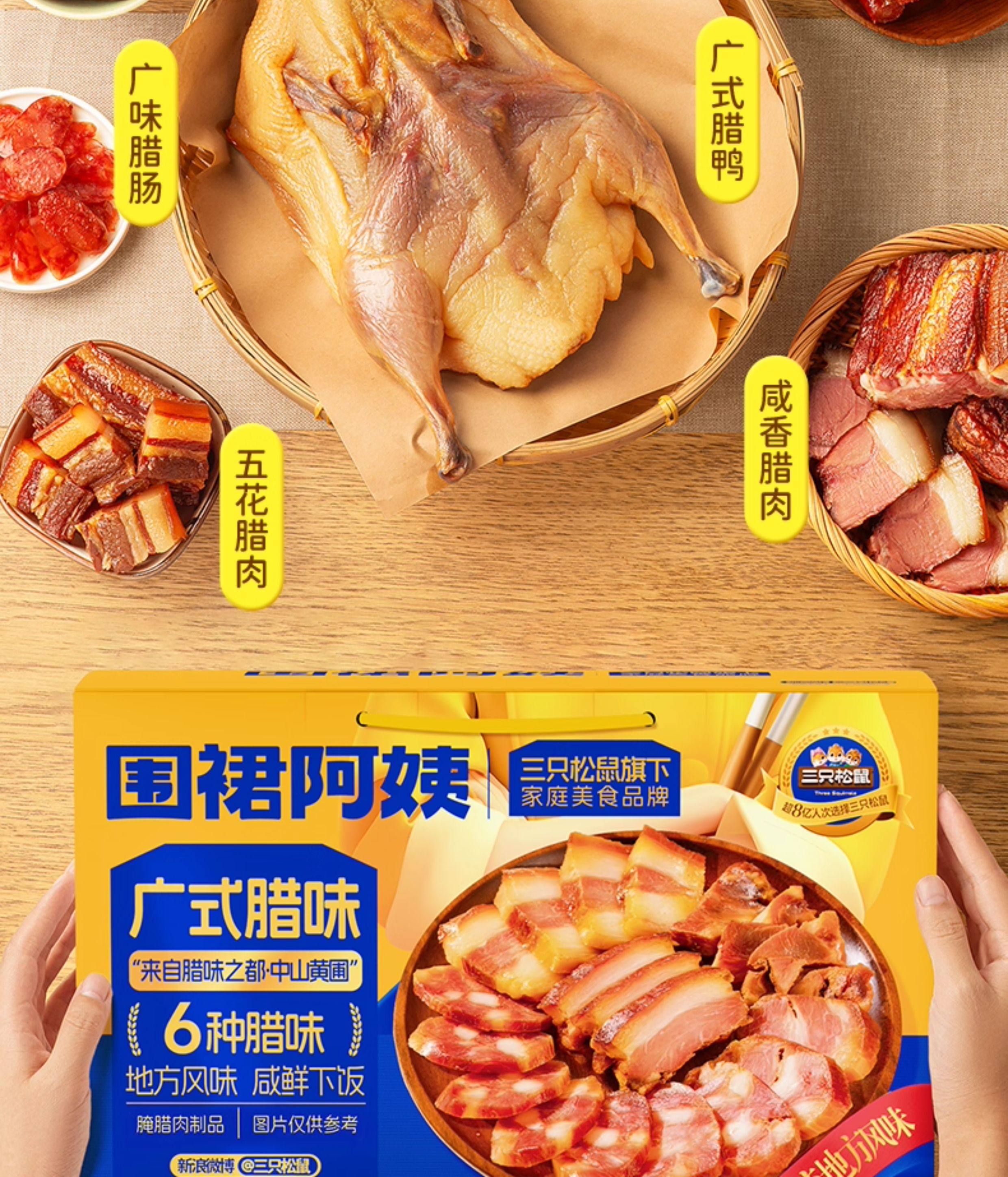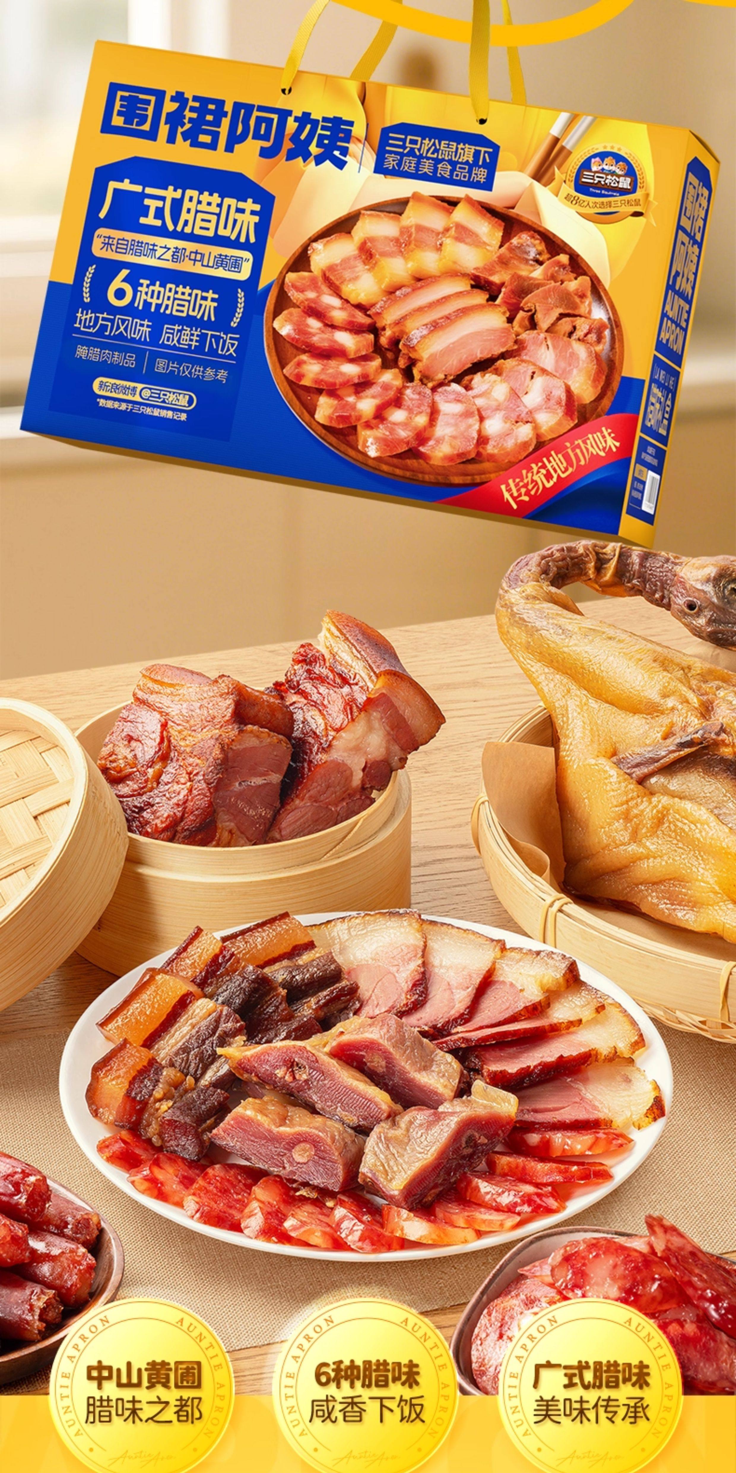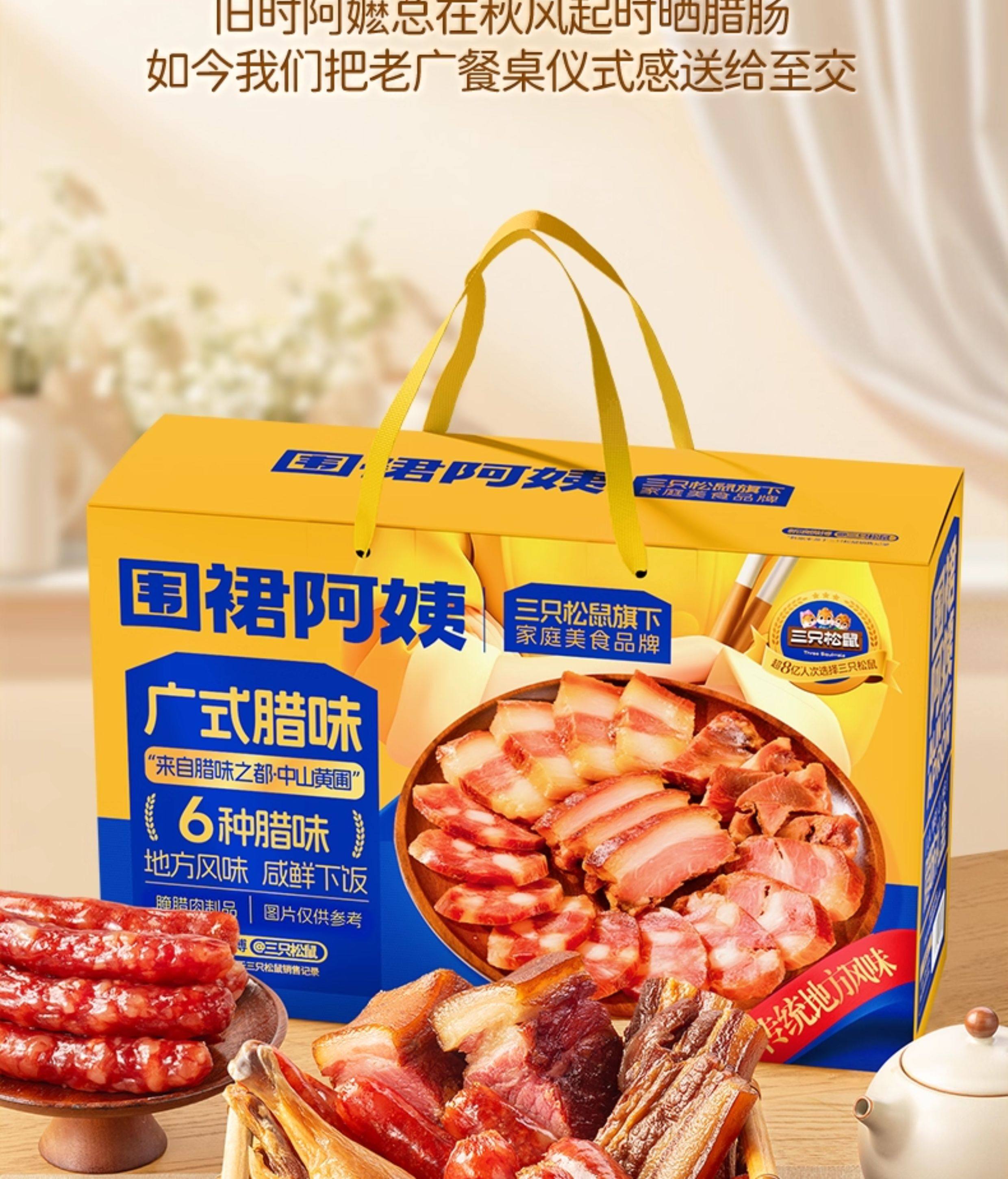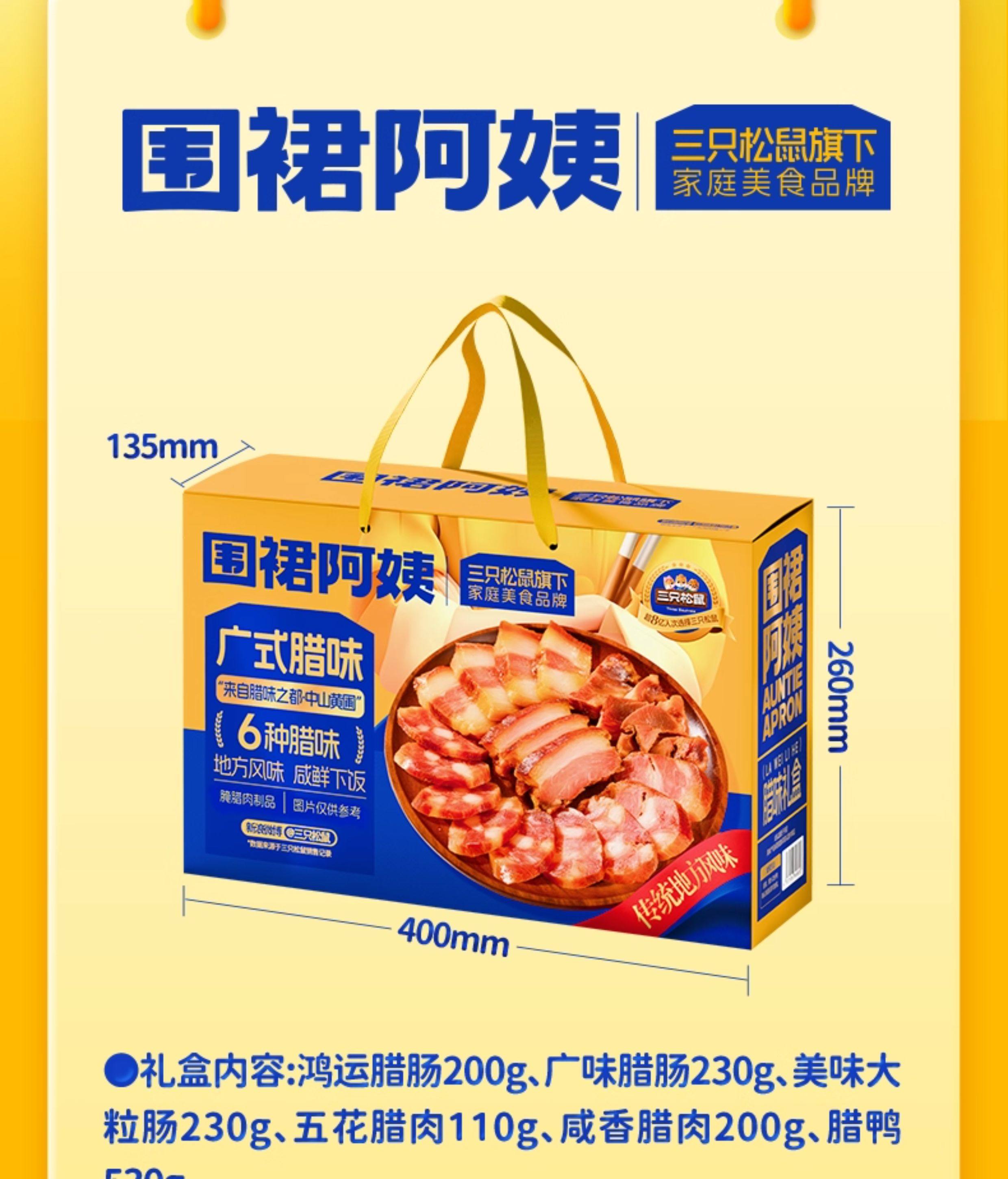 Auntie's Apron_Cantonese-Style Cured Meats, Cured Duck, Sausage, Savory Flavor Gift Box, Specialty New Year Goods, Gift-Giving, Three Squirrels