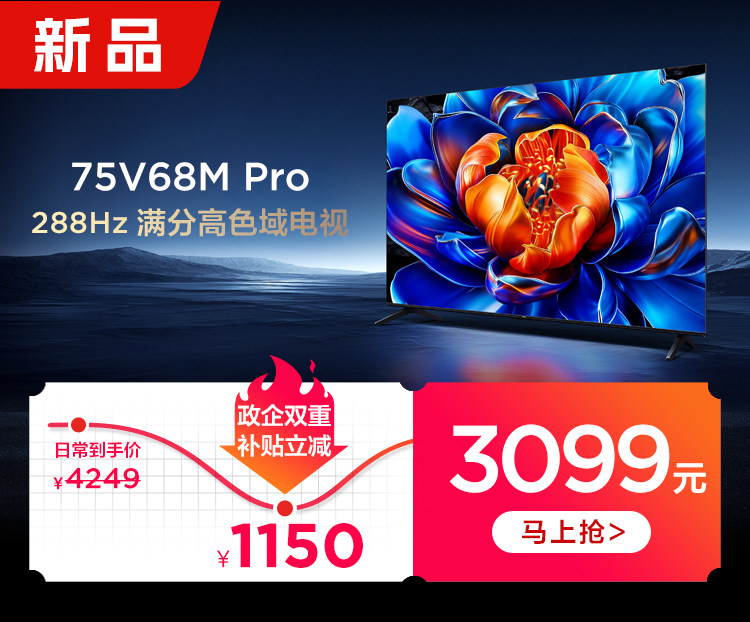 Tcl Tv 75V68M Pro 75inch 288Hz High Refresh Rate High Color Gamut Network Flat-Panel Tv