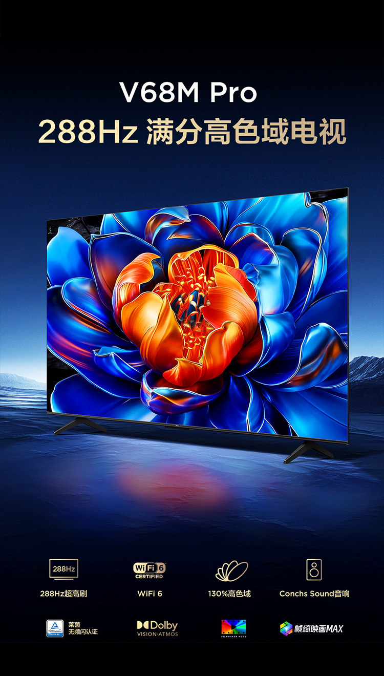 Tcl Tv 65V68M Pro 65inch 288Hz High Refresh Rate High Color Gamut Network Flat-Panel Tv