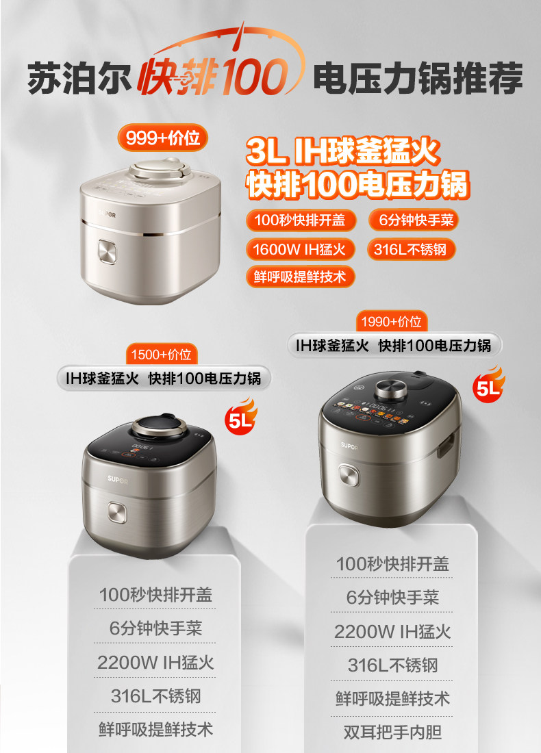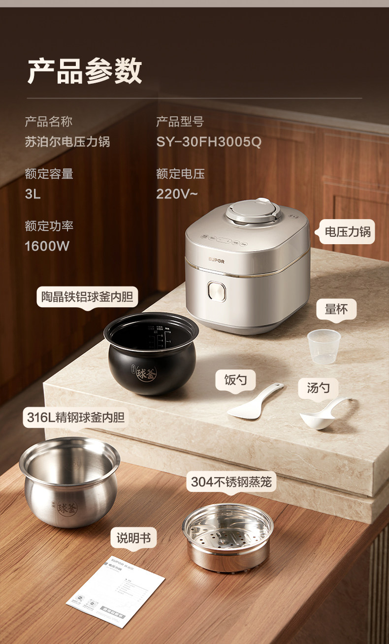 Supor Quick Release 100 Electric Pressure Cooker for Home Use, 3L Multifunctional Smart Rice Cooker, Double Ball Pot, Large Capacity High-Pressure Cooker
