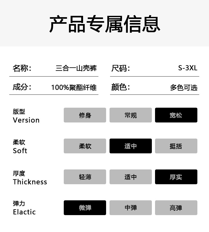 | Pants Placket | Elastic |