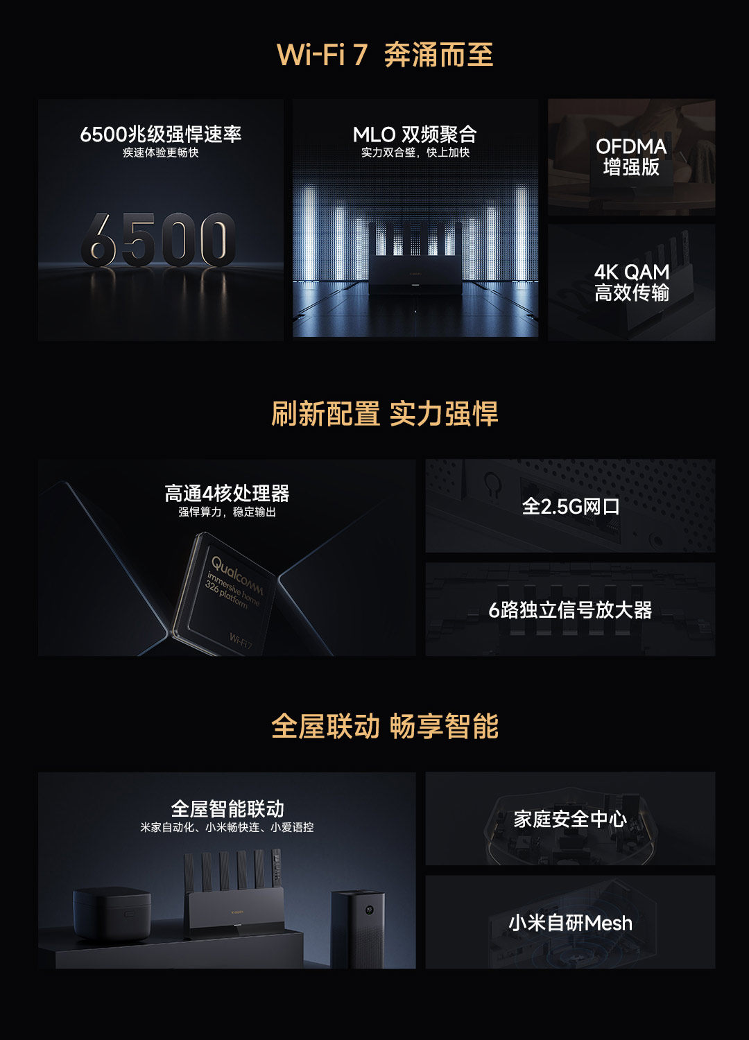 Xiaomi Router Be6500 Gigabit Port 5g Dual-Band Wireless Large Home Coverage through Walls and Throughout the House Wifi7